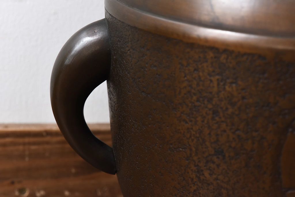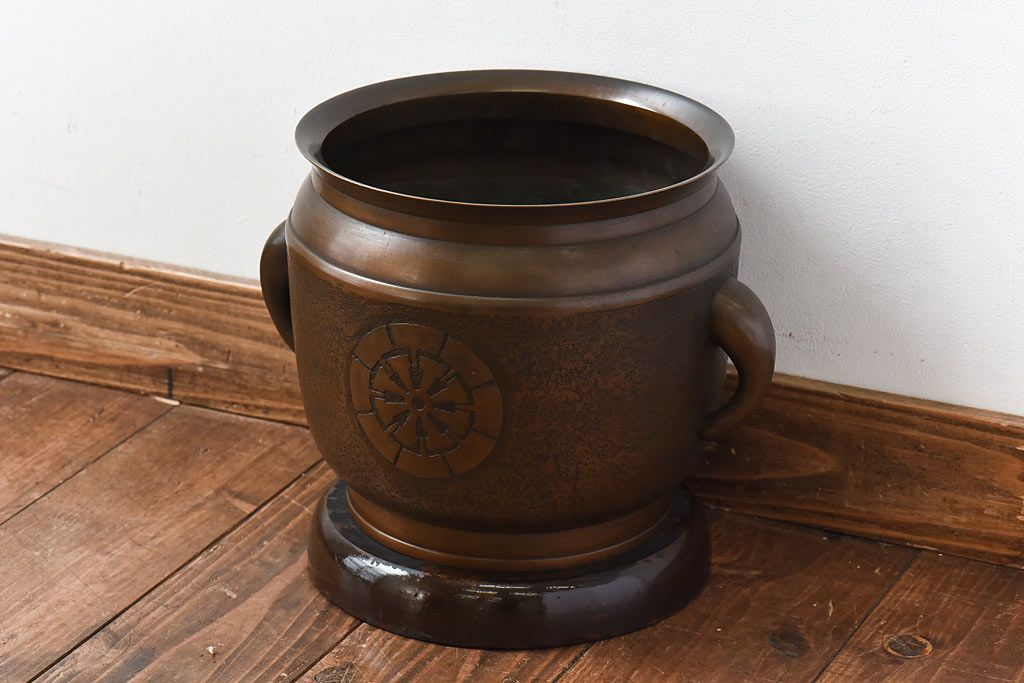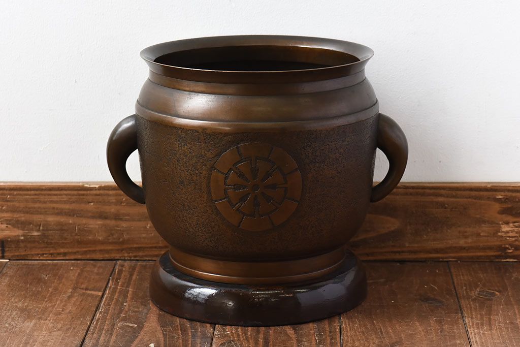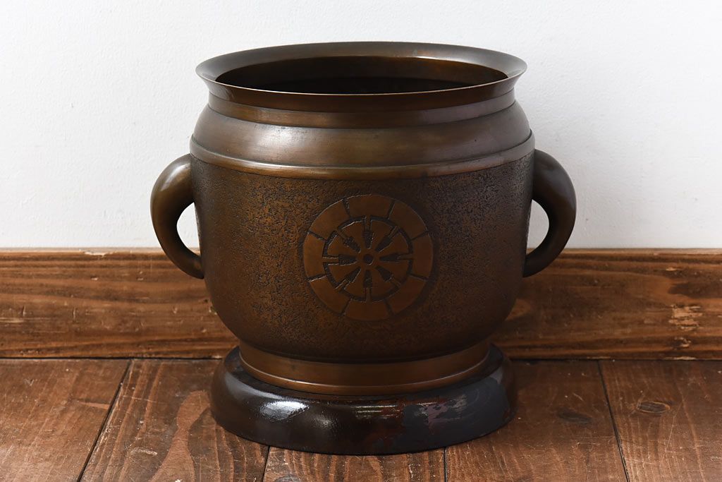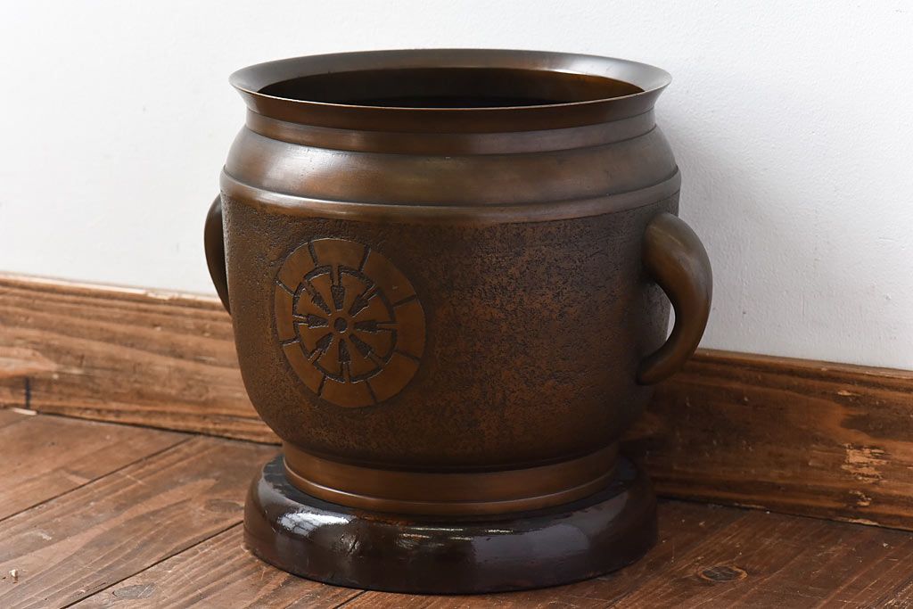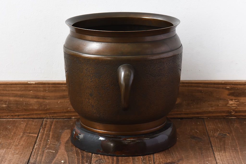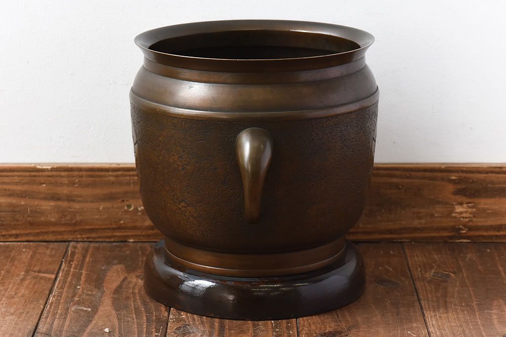 アンティーク雑貨 骨董・古民具 明治大正期 上手物 源氏車紋様の耳付銅火鉢(鉢カバー、ディスプレイ)(R-028638)(3)です。