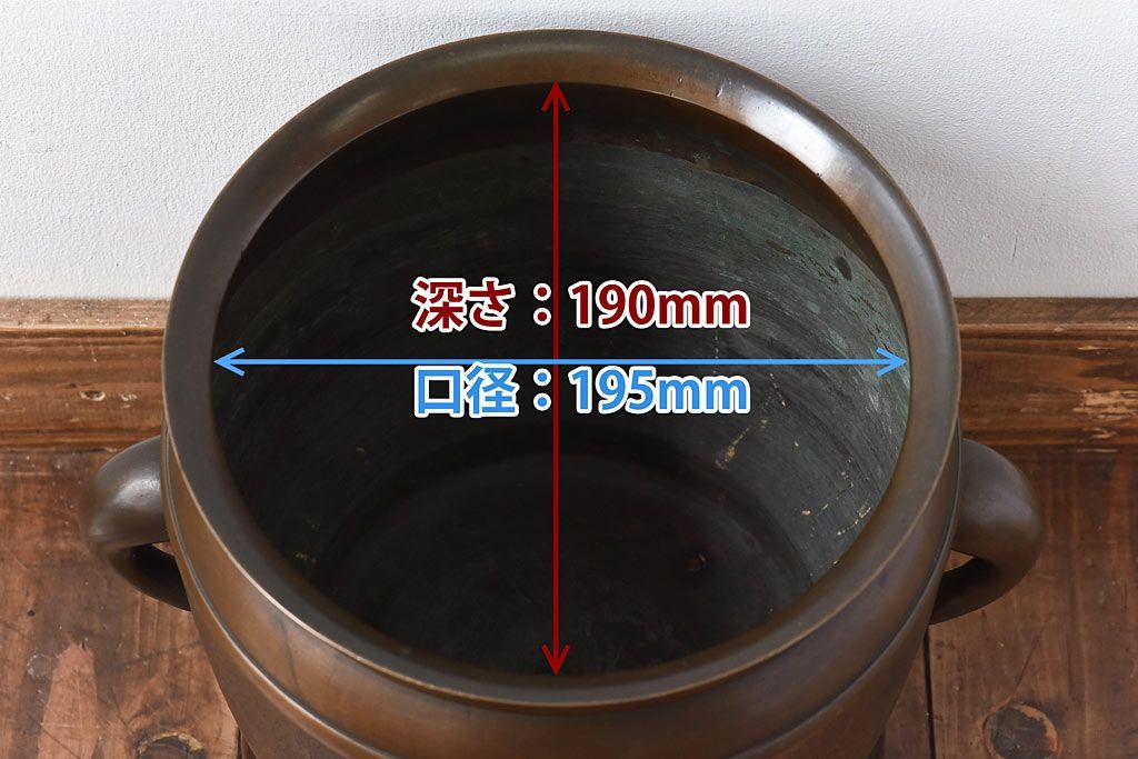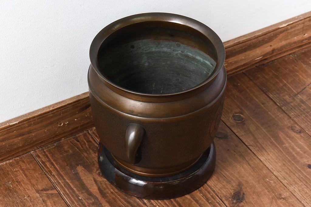 骨董・美術品 > アンティーク雑貨 骨董・古民具 明治大正期 上手物 源氏車紋様の耳付銅火鉢(鉢カバー、ディスプレイ)(R-028638)(3)
