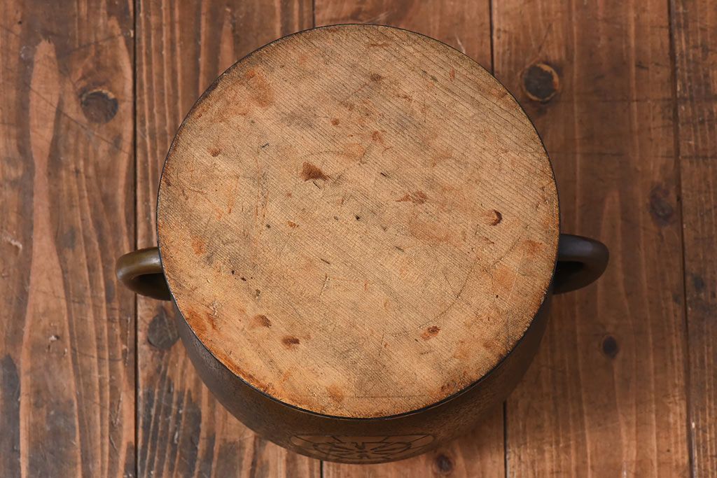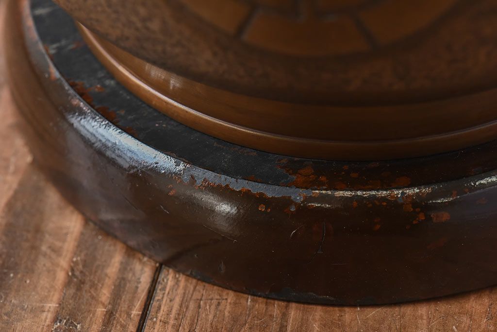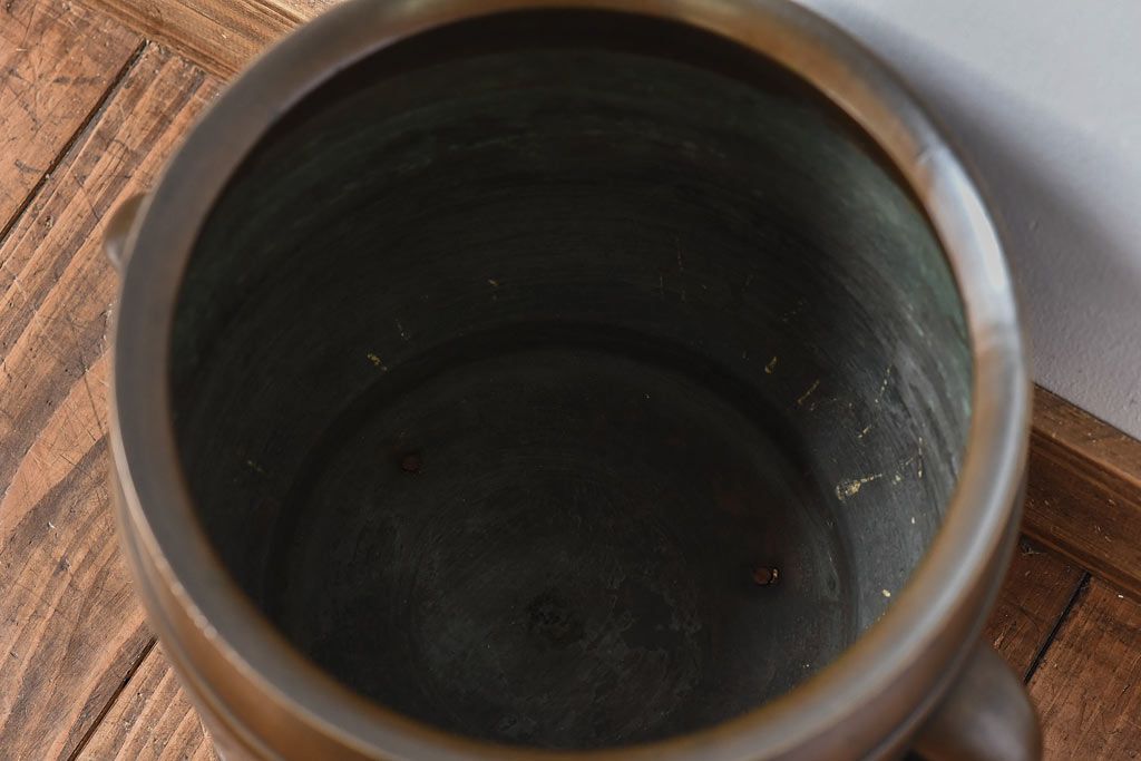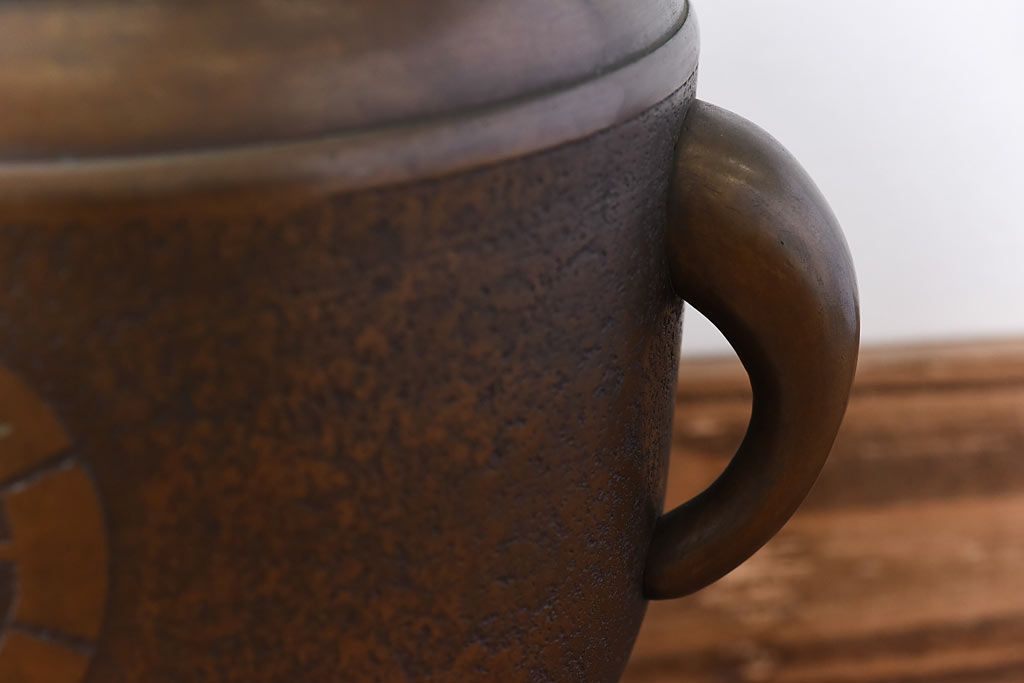 アンティーク雑貨 骨董・古民具 明治大正期 上手物 源氏車紋様の耳付銅火鉢(鉢カバー、ディスプレイ)(R-028638)(3)