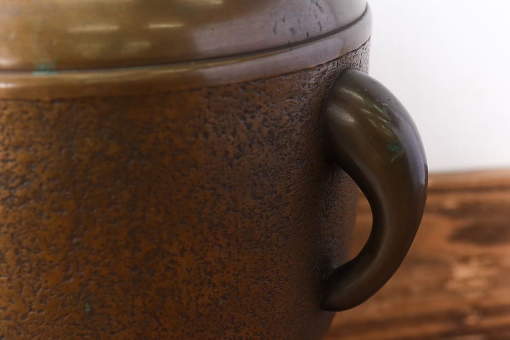 アンティーク雑貨 和製アンティーク 上手物 紋入りで風格のある耳付銅火鉢(鉢カバー)(1)