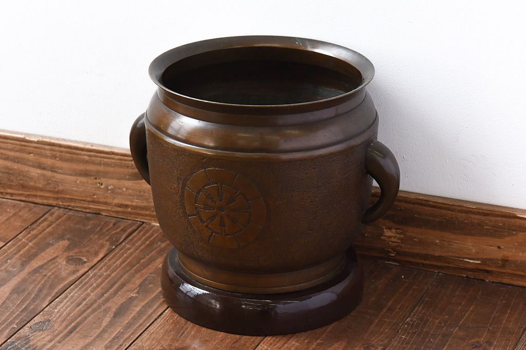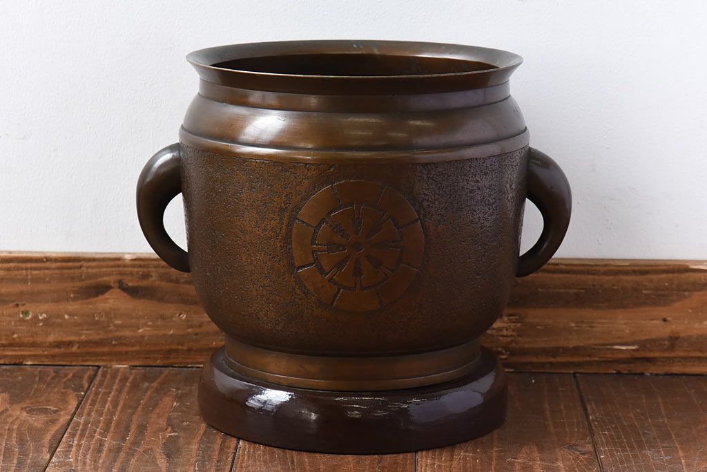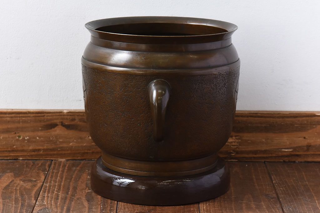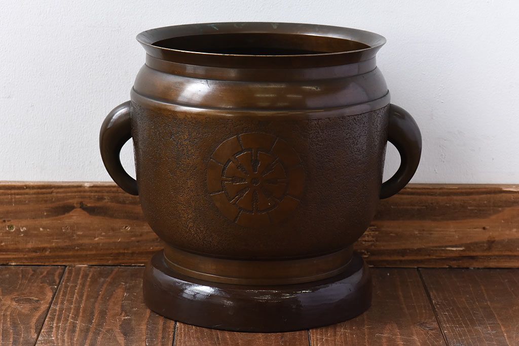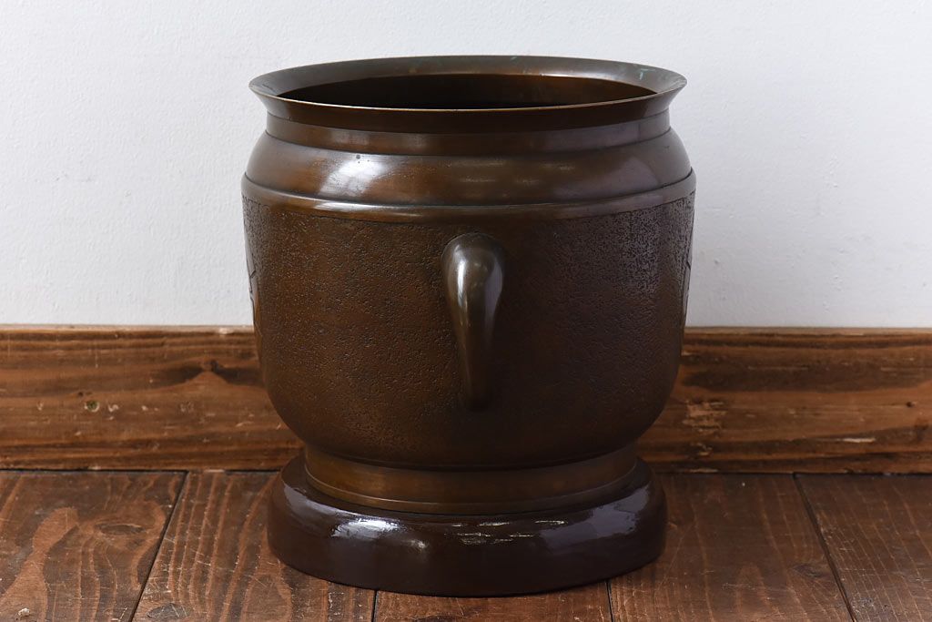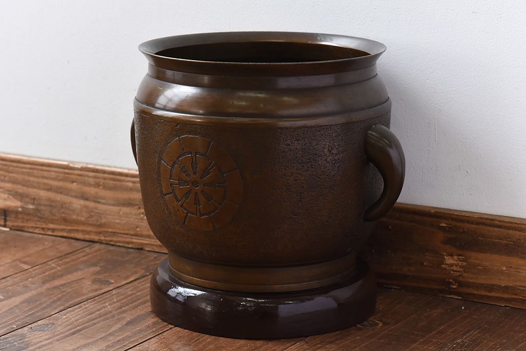 アンティーク雑貨 骨董・古民具 明治大正期 上手物 渋い和の趣きがある御所車紋様の耳付銅火鉢(鉢カバー)(1)