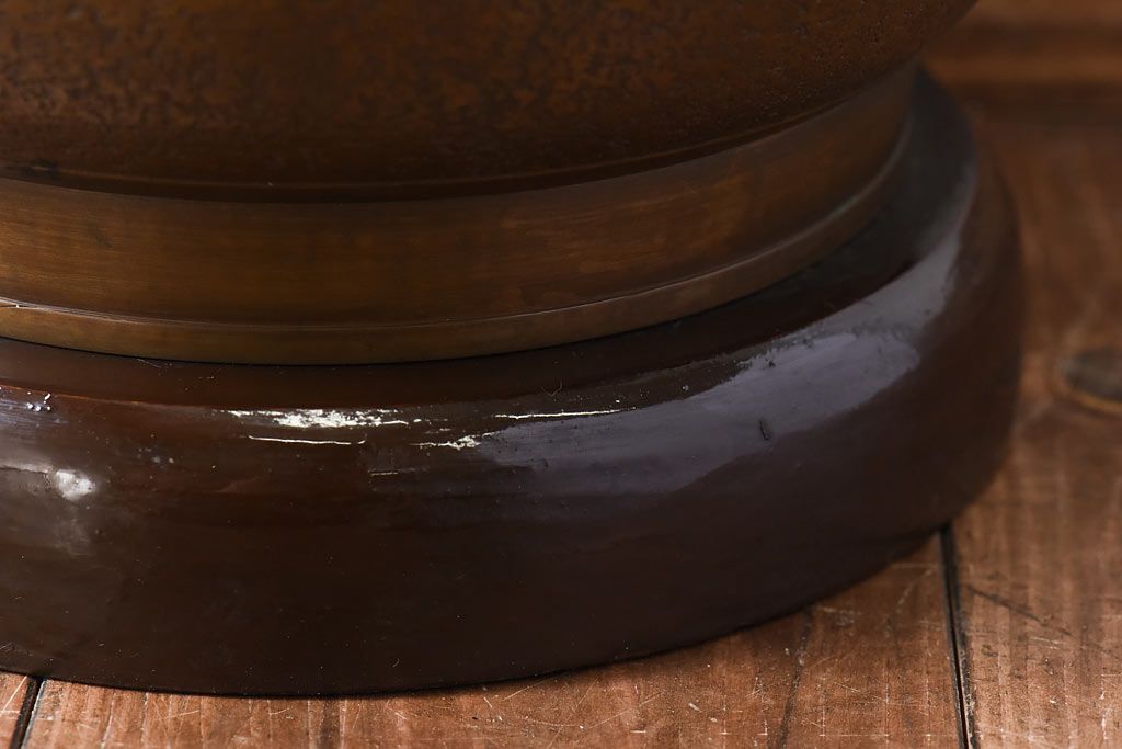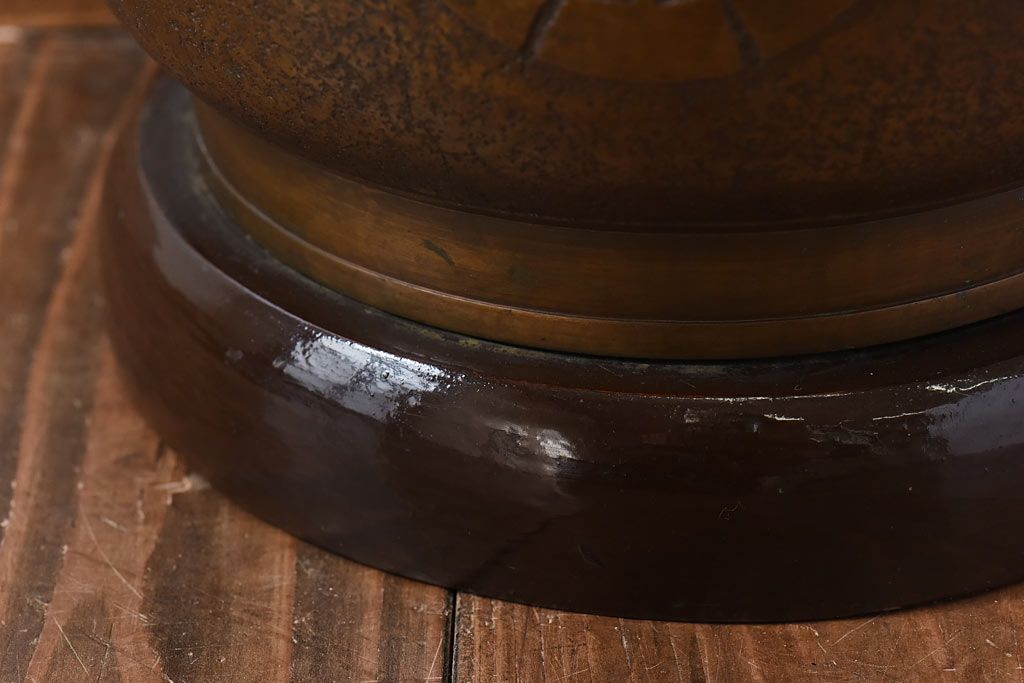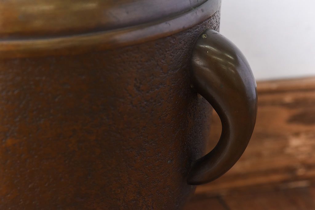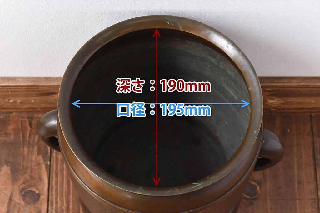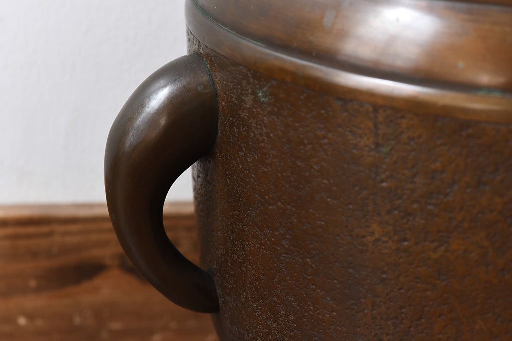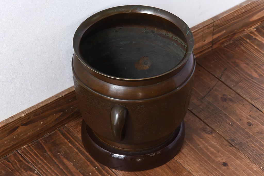 アンティーク雑貨 骨董・古民具 明治大正期 上手物 渋い和の趣きがある御所車紋様の耳付銅火鉢(鉢カバー)(1)