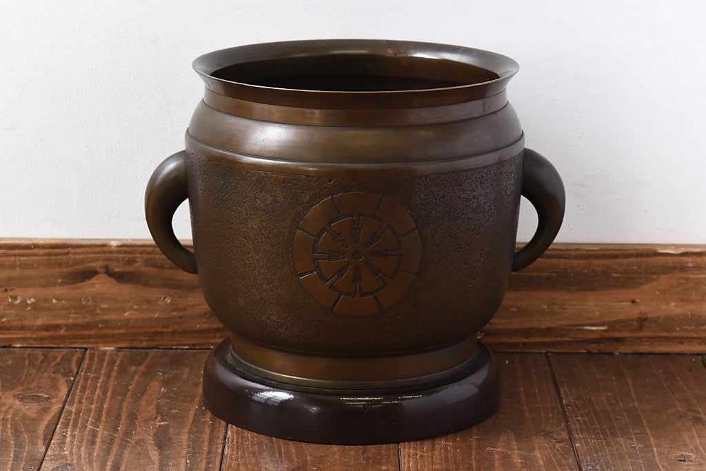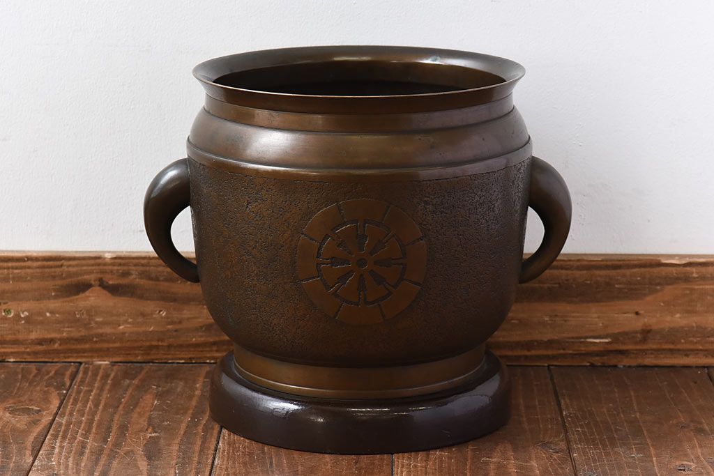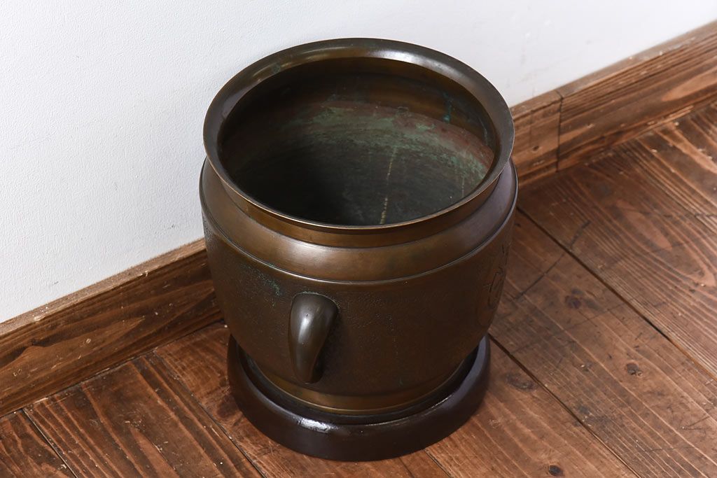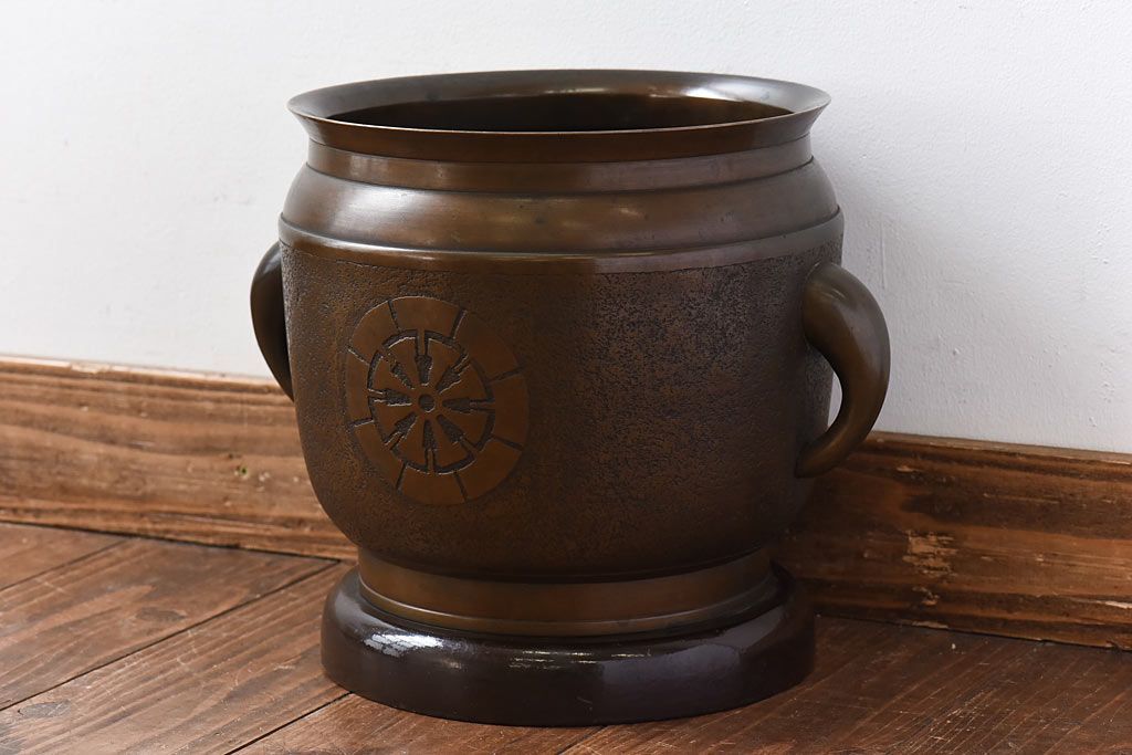 アンティーク雑貨 骨董・古民具 明治大正期 上手物 渋い和の趣きがある御所車紋様の耳付銅火鉢(鉢カバー)(2)