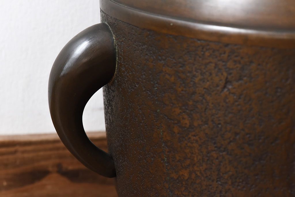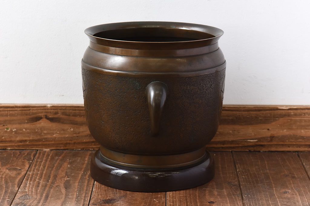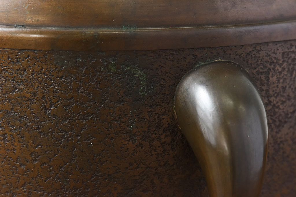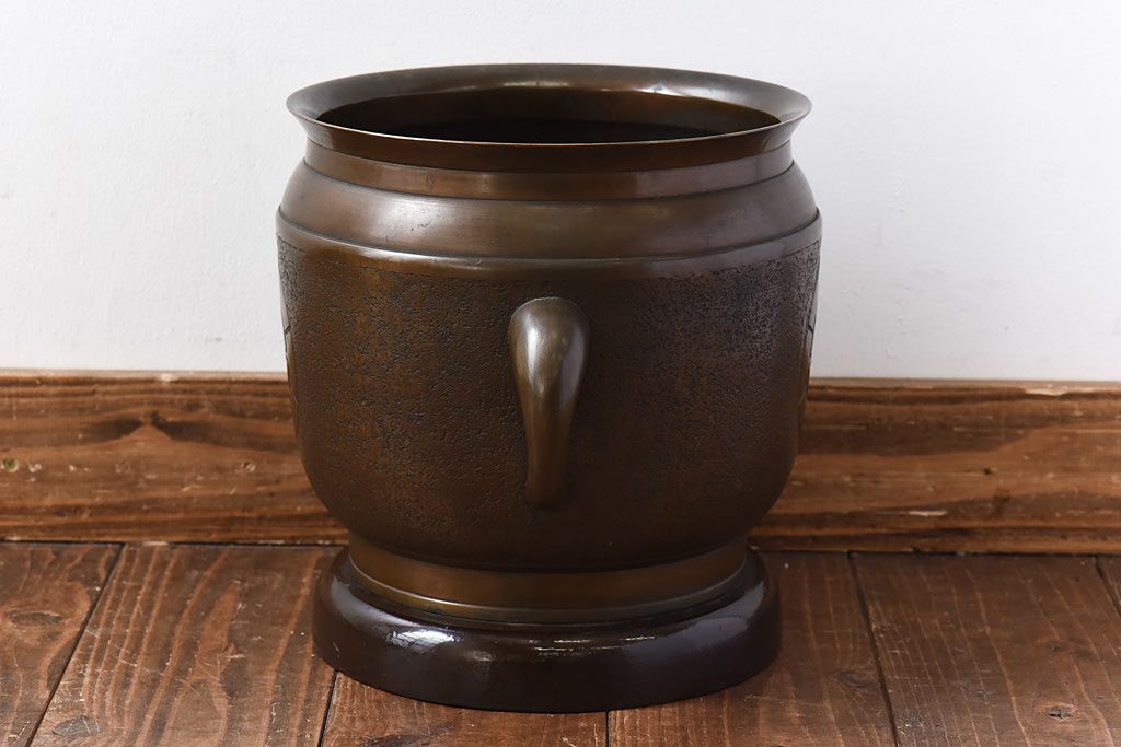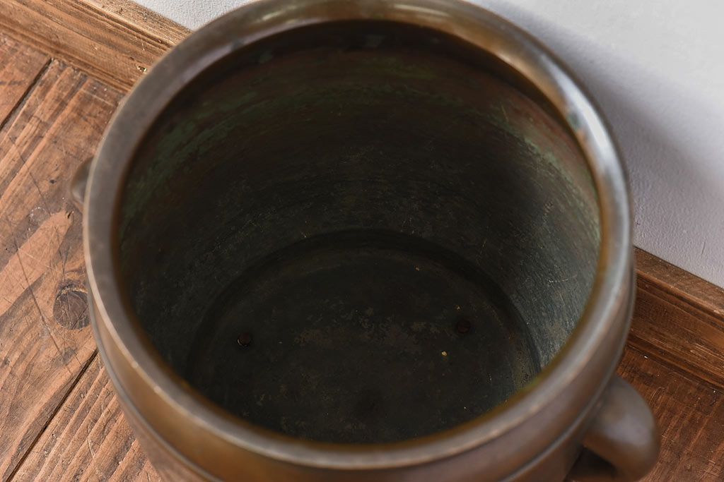 アンティーク雑貨 骨董・古民具 明治大正期 上手物 渋い和の趣きがある御所車紋様の耳付銅火鉢(鉢カバー)(2)