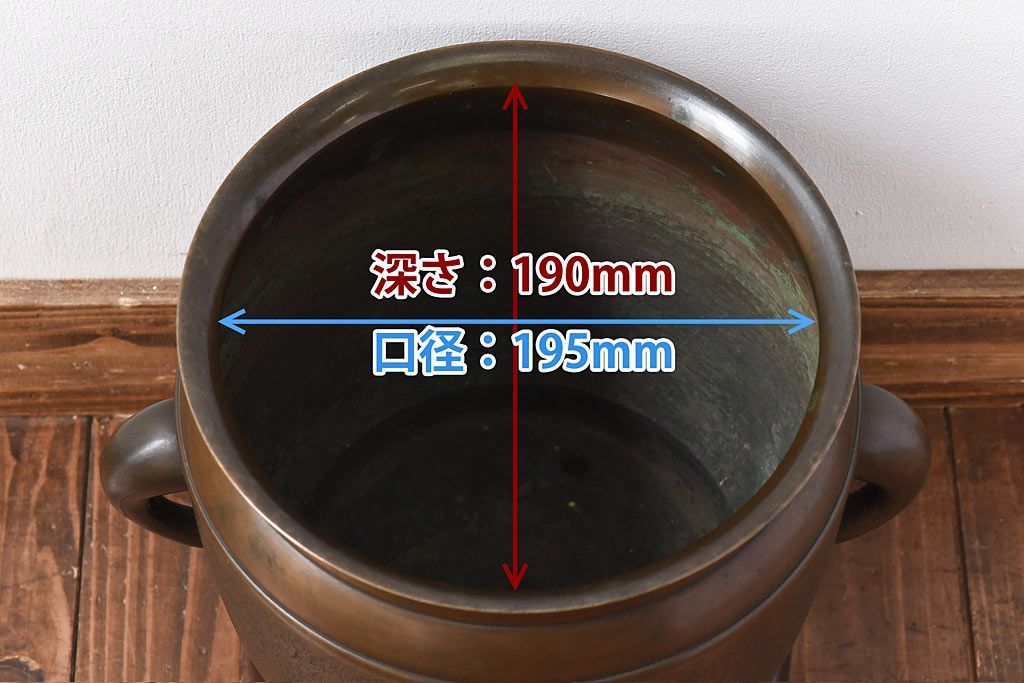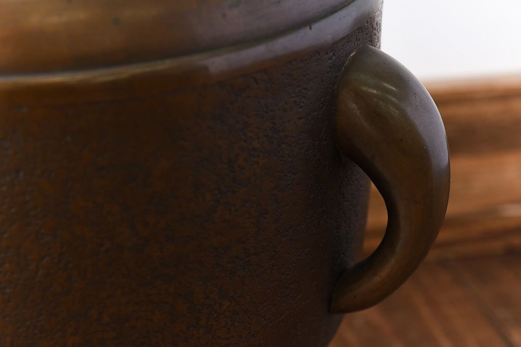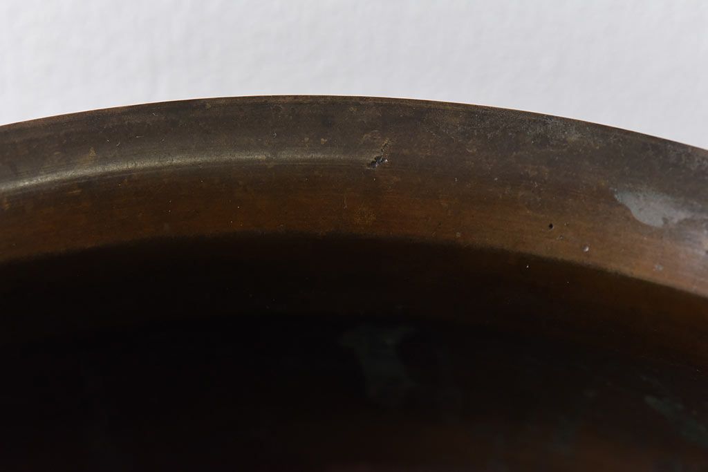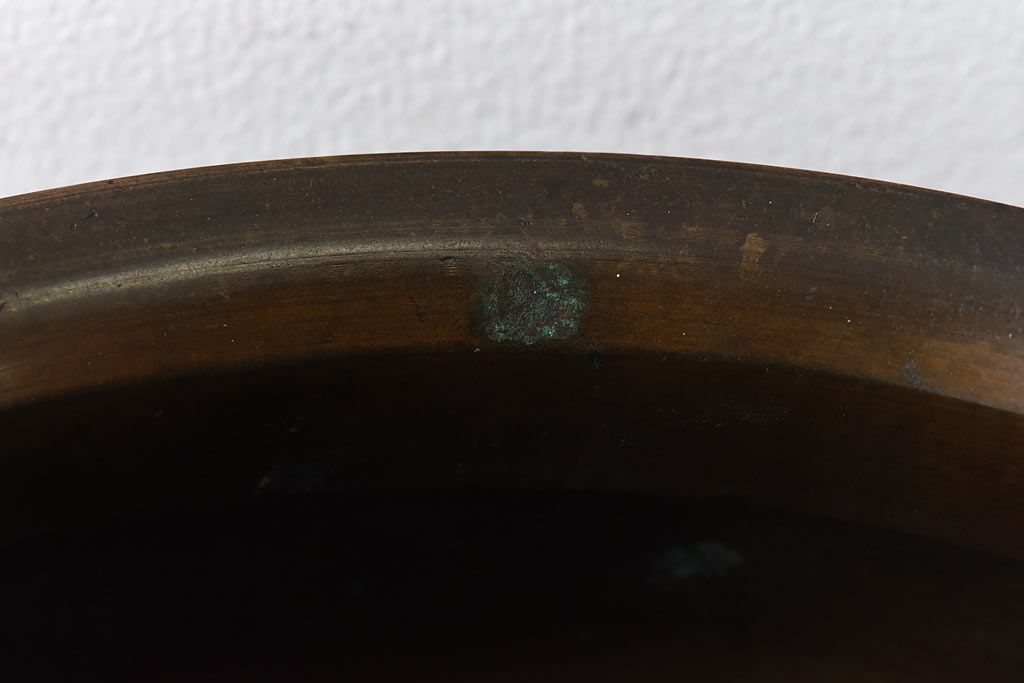 骨董・美術品 > アンティーク雑貨 骨董・古民具 明治大正期 上手物 渋い和の趣きがある御所車紋様の耳付銅火鉢(鉢カバー)(2)