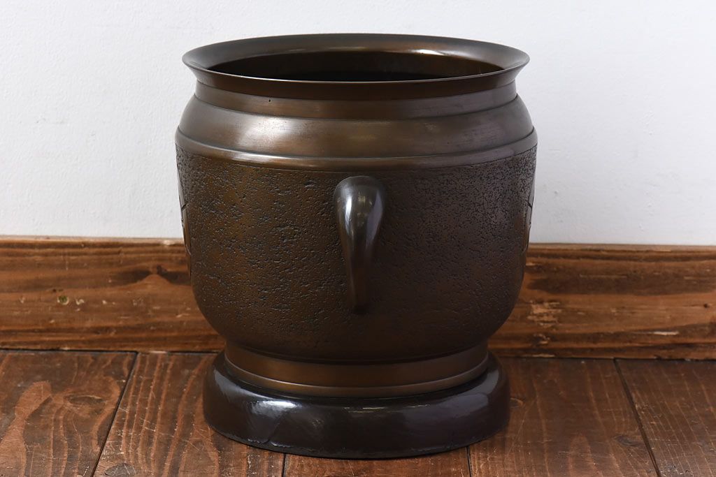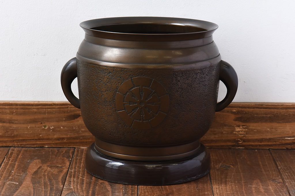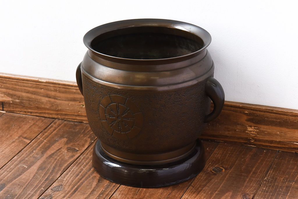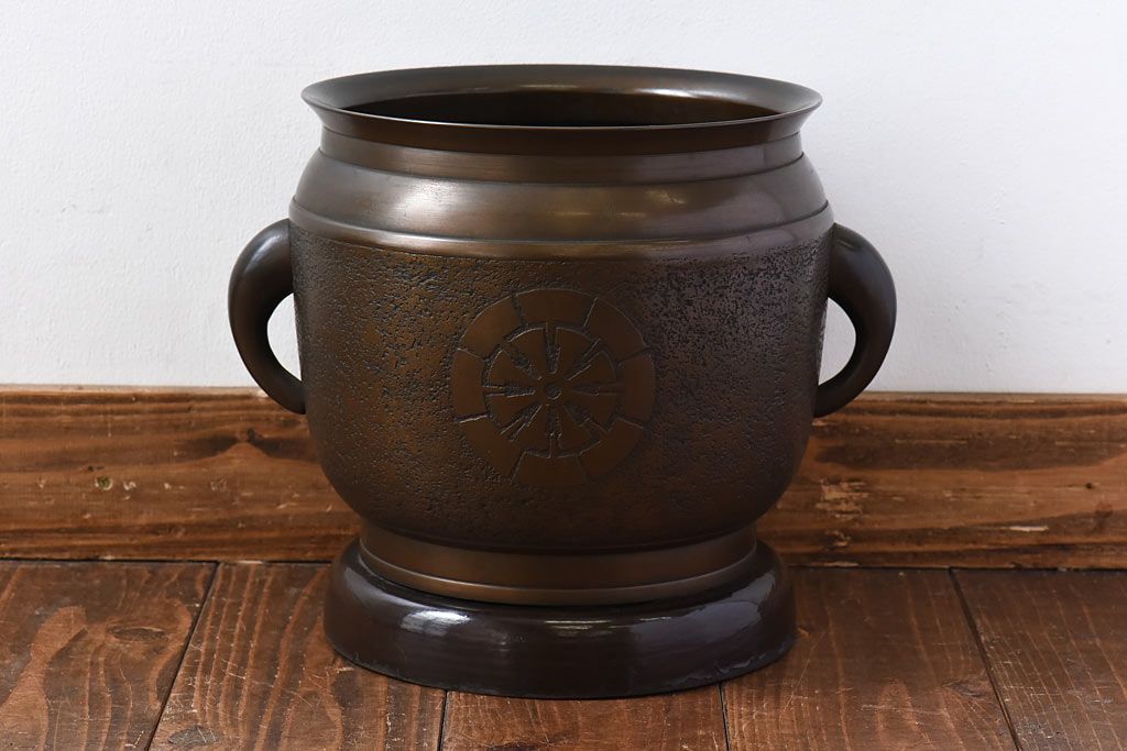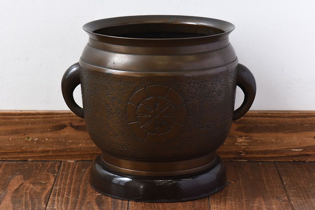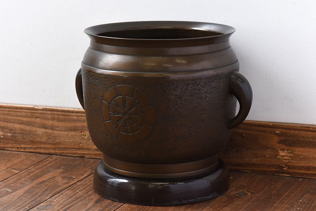 和製アンティーク 上手物 紋入りで風格のある耳付銅火鉢(鉢カバー)(2)です。