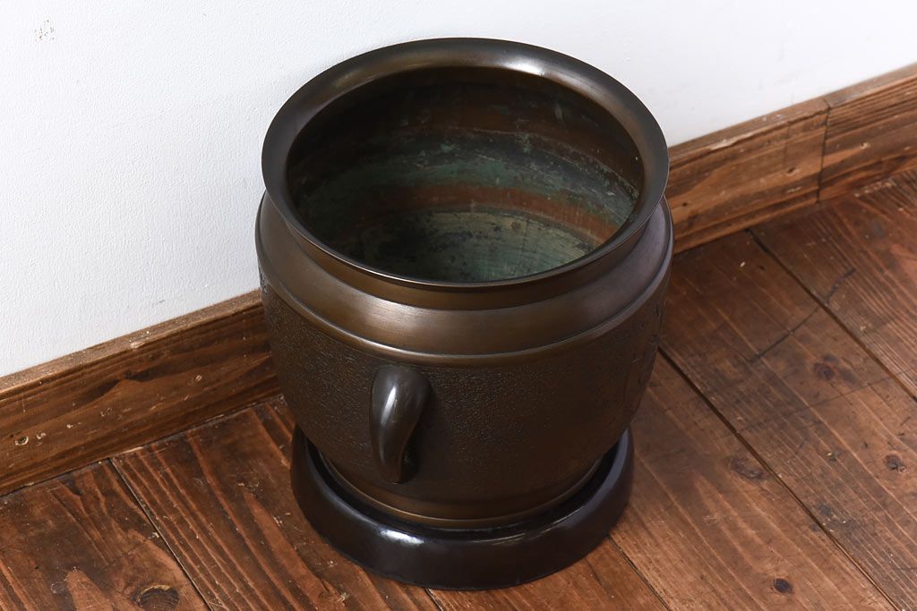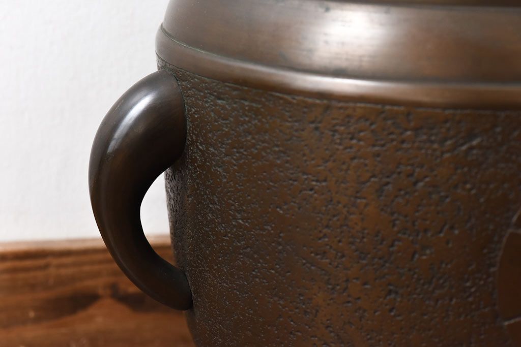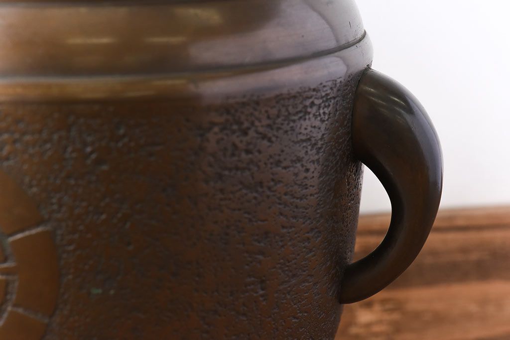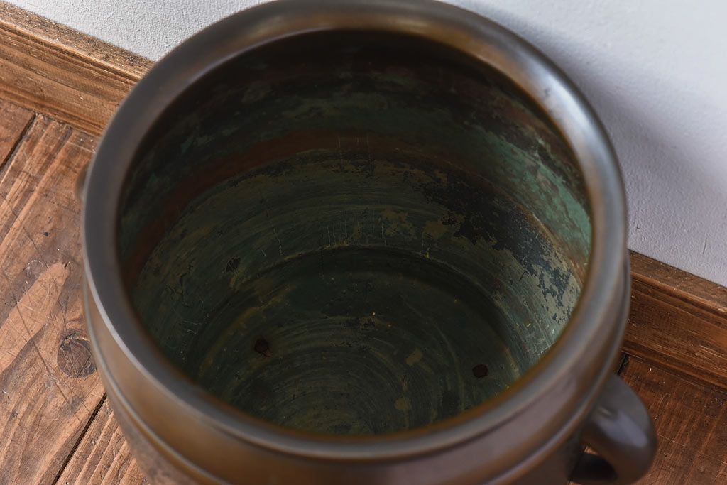 アンティーク雑貨 和製アンティーク 上手物 紋入りで風格のある耳付銅火鉢(鉢カバー)(2)