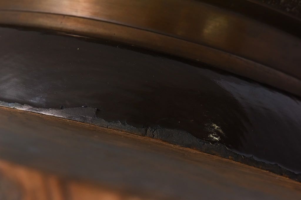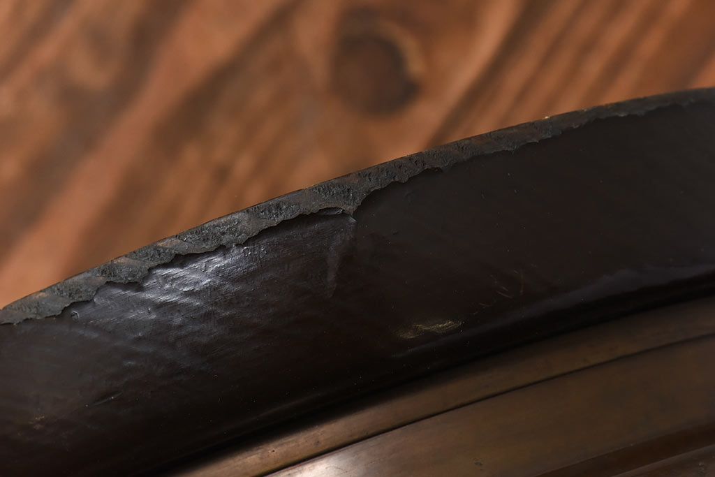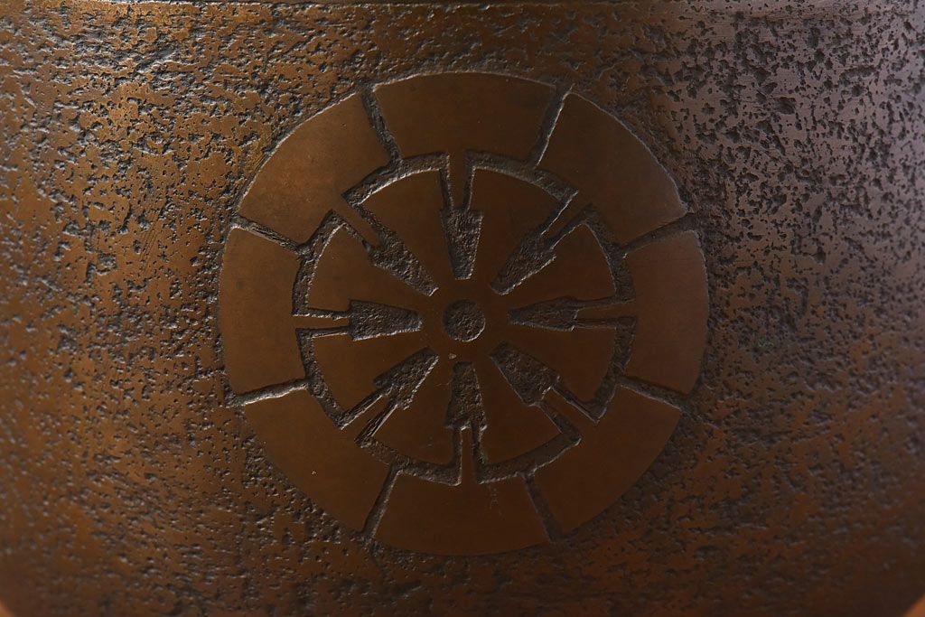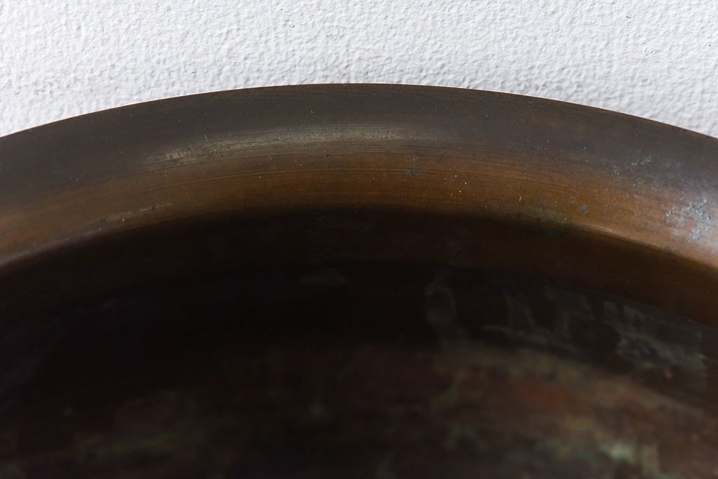 火鉢> 金属火鉢 > アンティーク雑貨 和製アンティーク 上手物 紋入りで風格のある耳付銅火鉢(鉢カバー)(2)