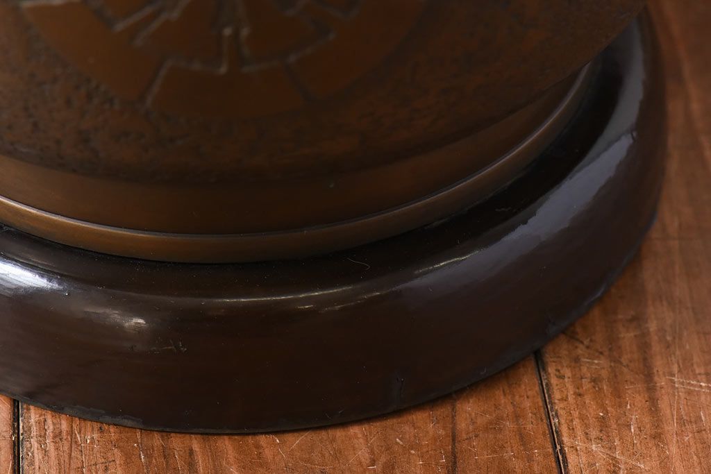 画像にありますように内部に緑青、台座(木部)の裏底に塗装の剥がれがありますので、ご理解の上お願いします。