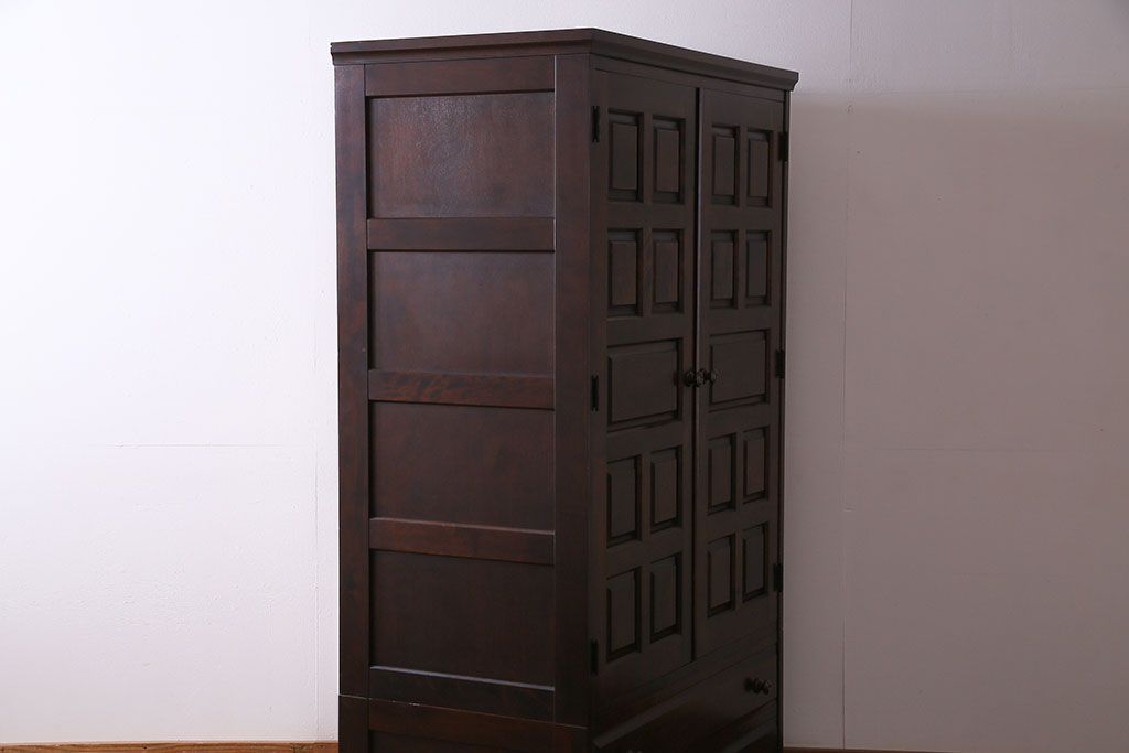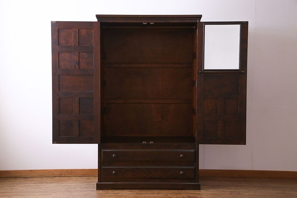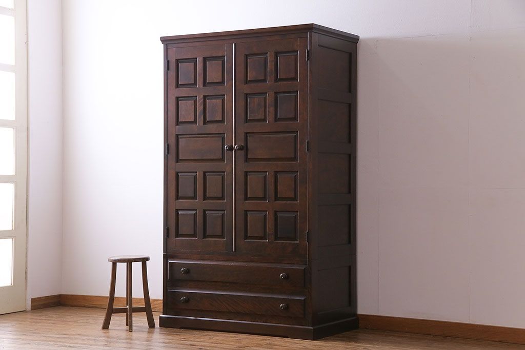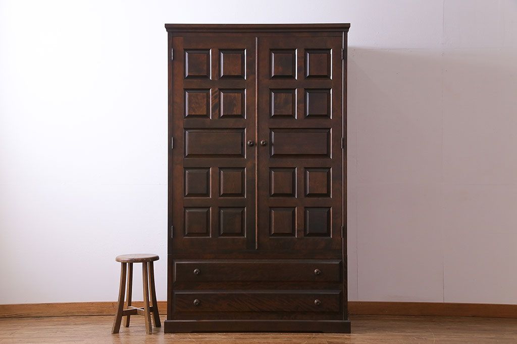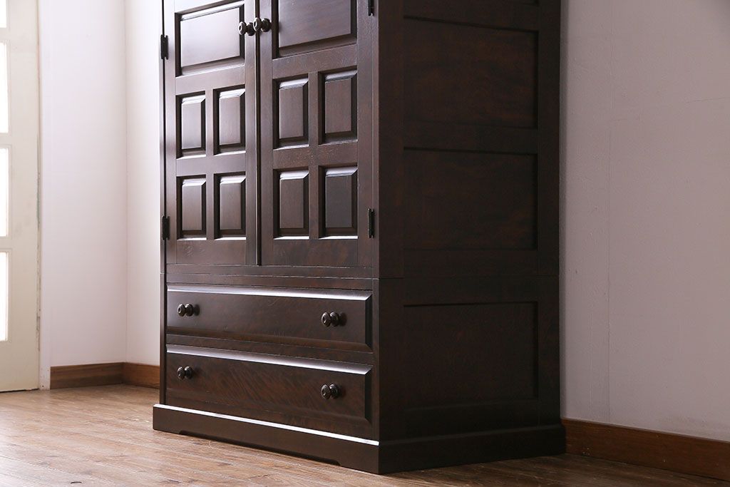 ラフジュ工房> 民芸家具 > 中古 北海道民芸家具 シックな色合いの2段重ねワードローブ(洋服タンス、洋服箪笥)(定価約80万円)