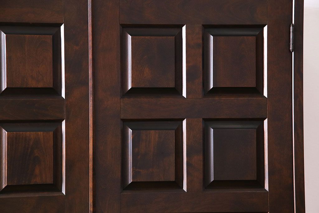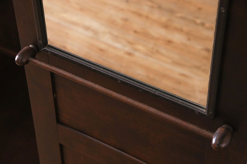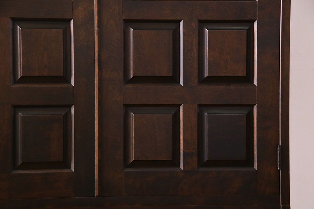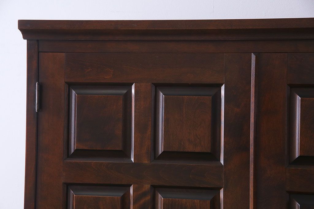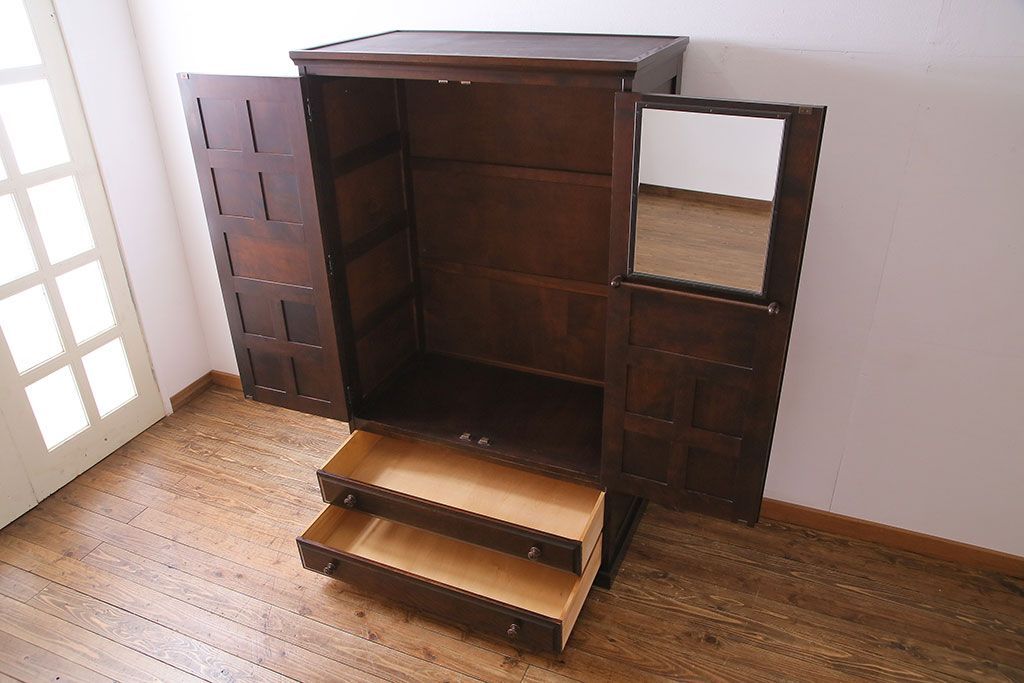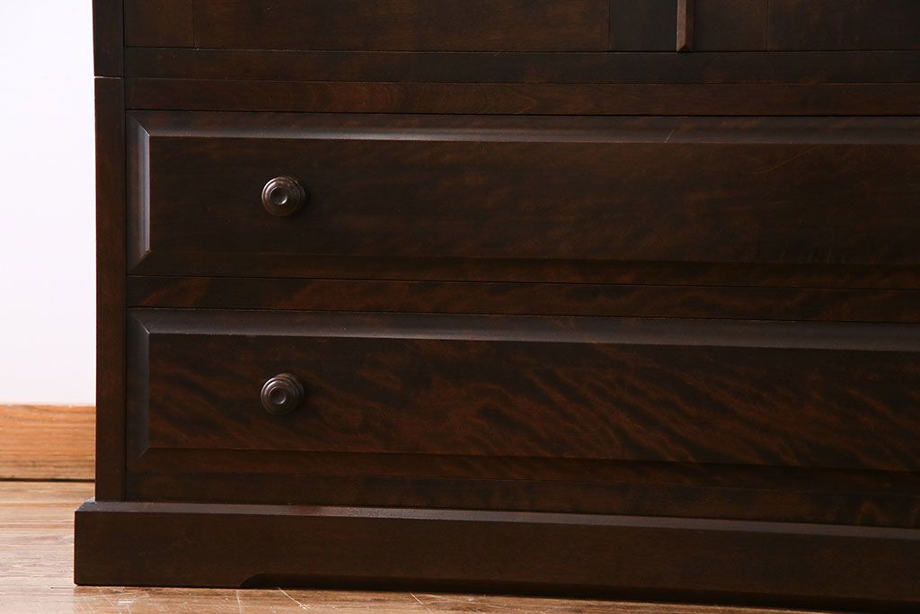 ラフジュ工房> 民芸家具 > 中古 北海道民芸家具 シックな色合いの2段重ねワードローブ(洋服タンス、洋服箪笥)(定価約80万円)