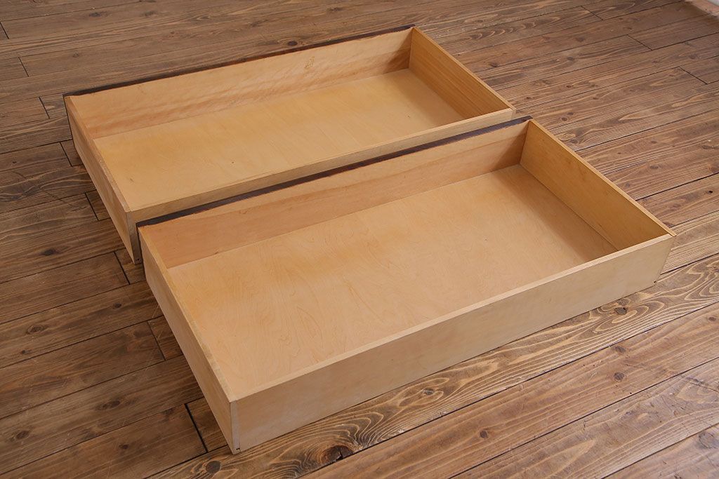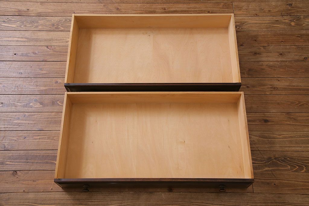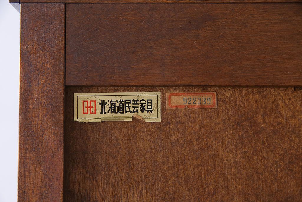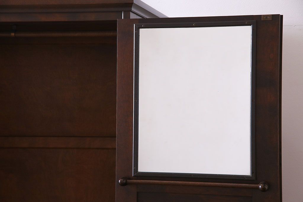 中古 北海道民芸家具 シックな色合いの2段重ねワードローブ(洋服タンス、洋服箪笥)(定価約80万円)