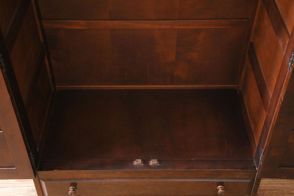 ラフジュ工房> ワードローブ・ロッカー> ワードローブ > 中古 北海道民芸家具 シックな色合いの2段重ねワードローブ(洋服タンス、洋服箪笥)(定価約80万円)