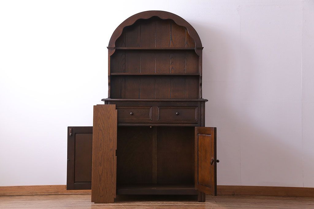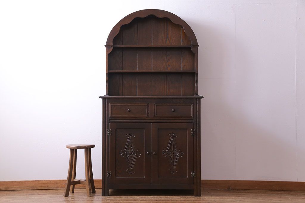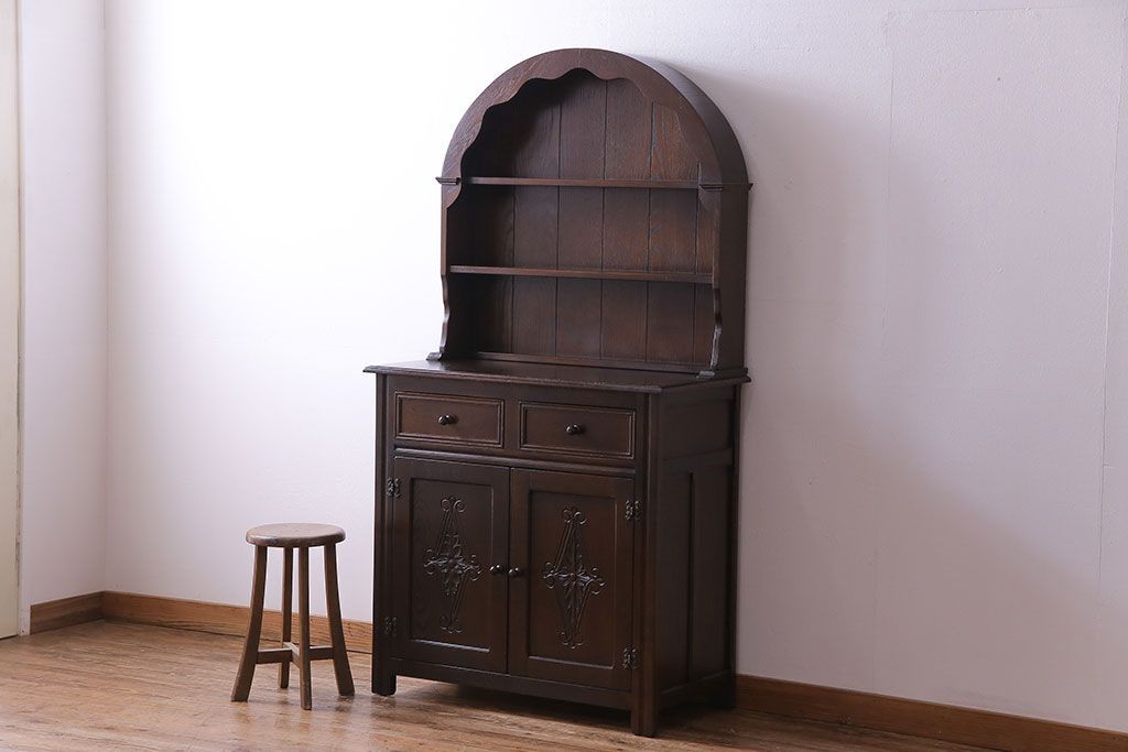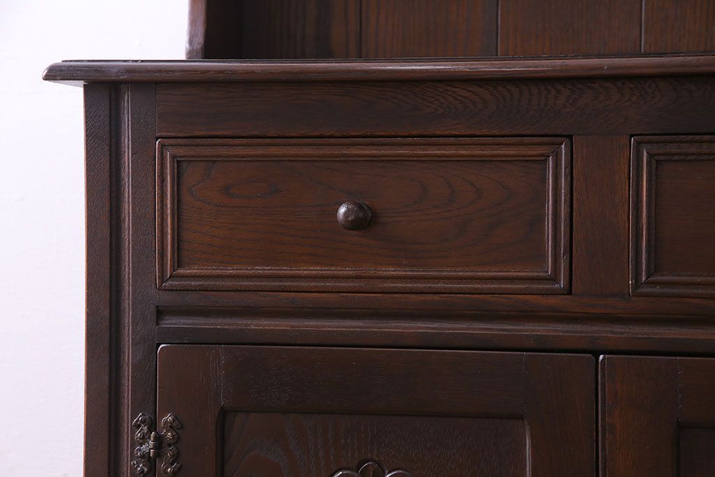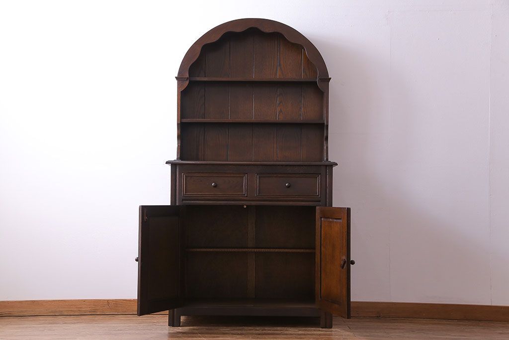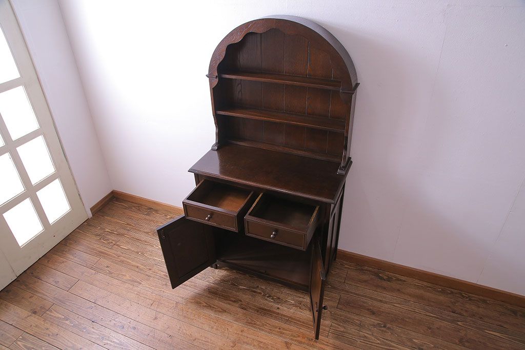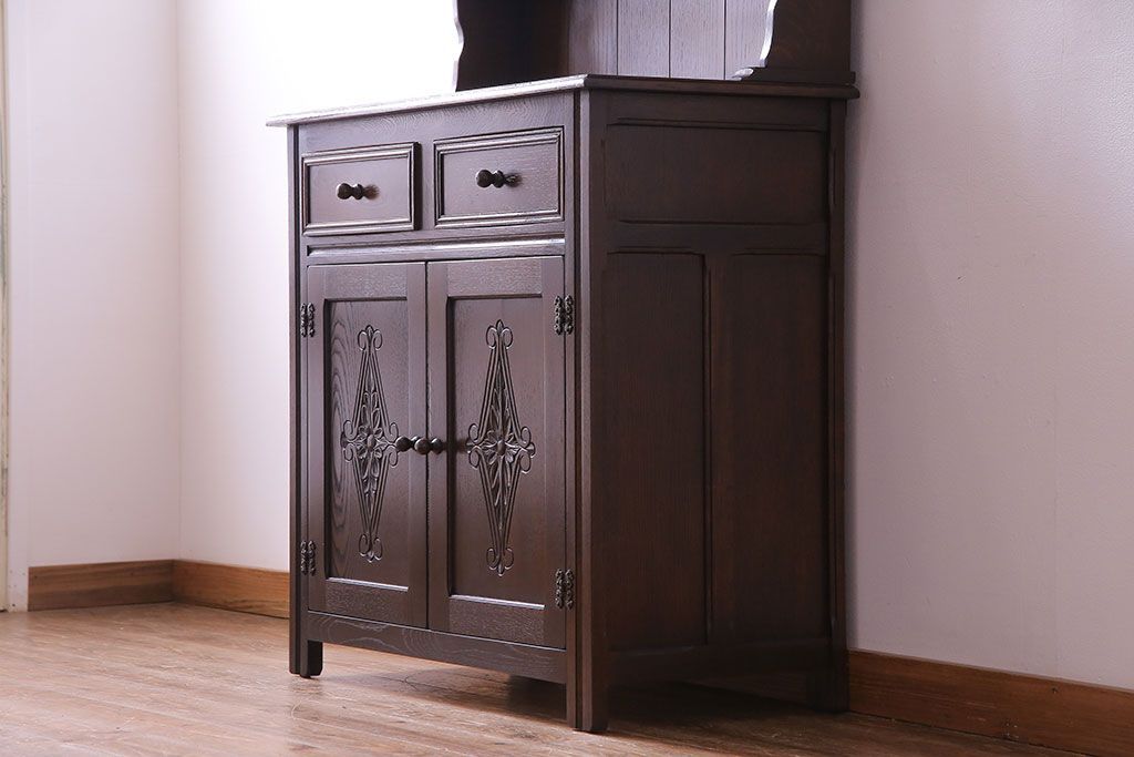 ヴィンテージ家具 イギリスビンテージ オーク材 素朴な雰囲気漂うカップボード(食器棚、収納棚)(1)