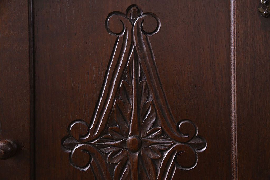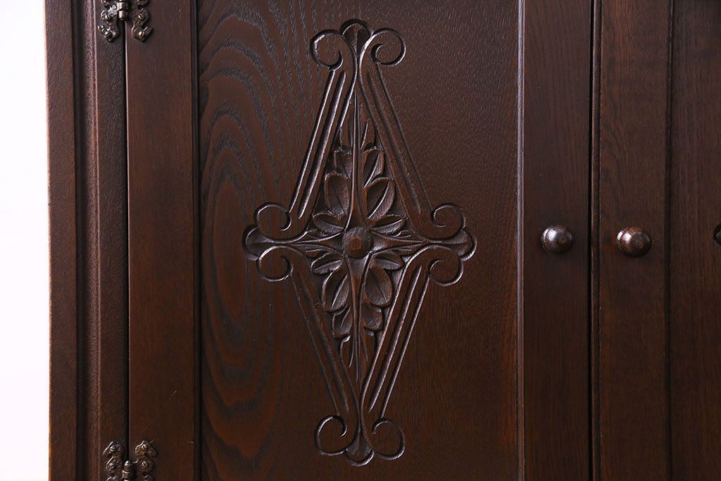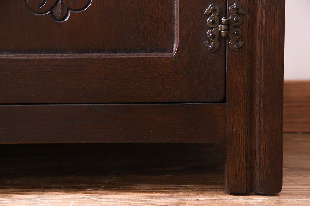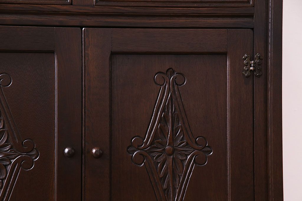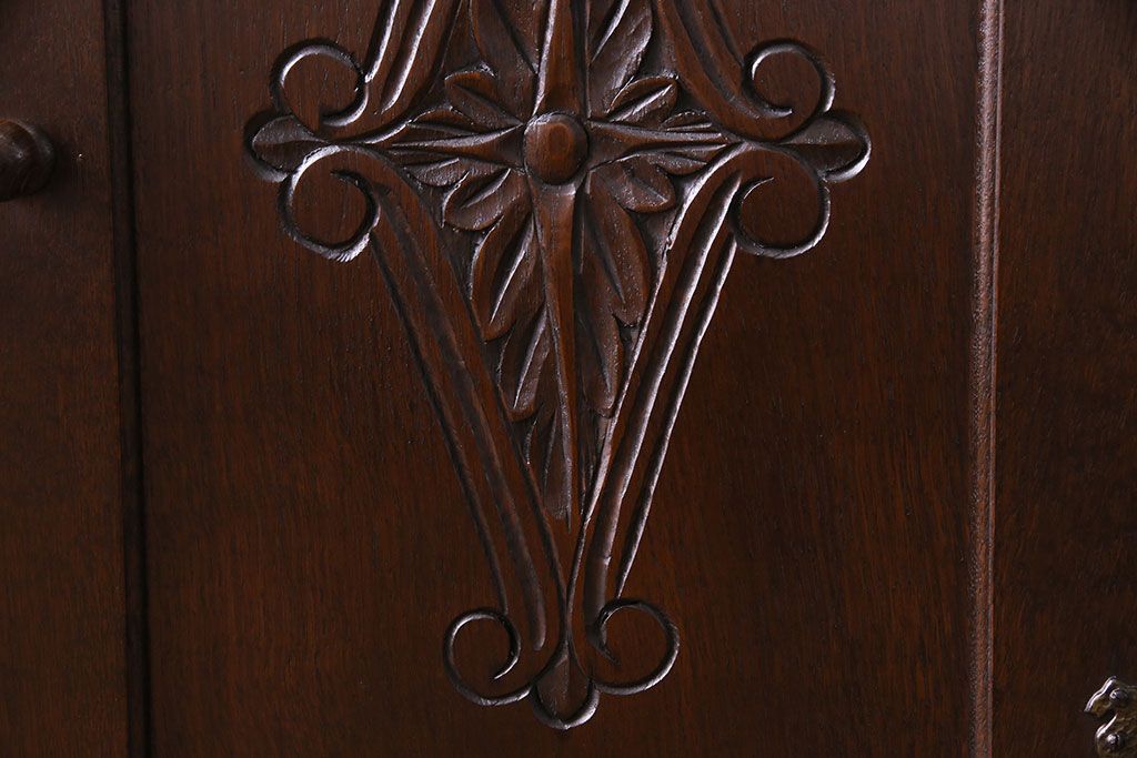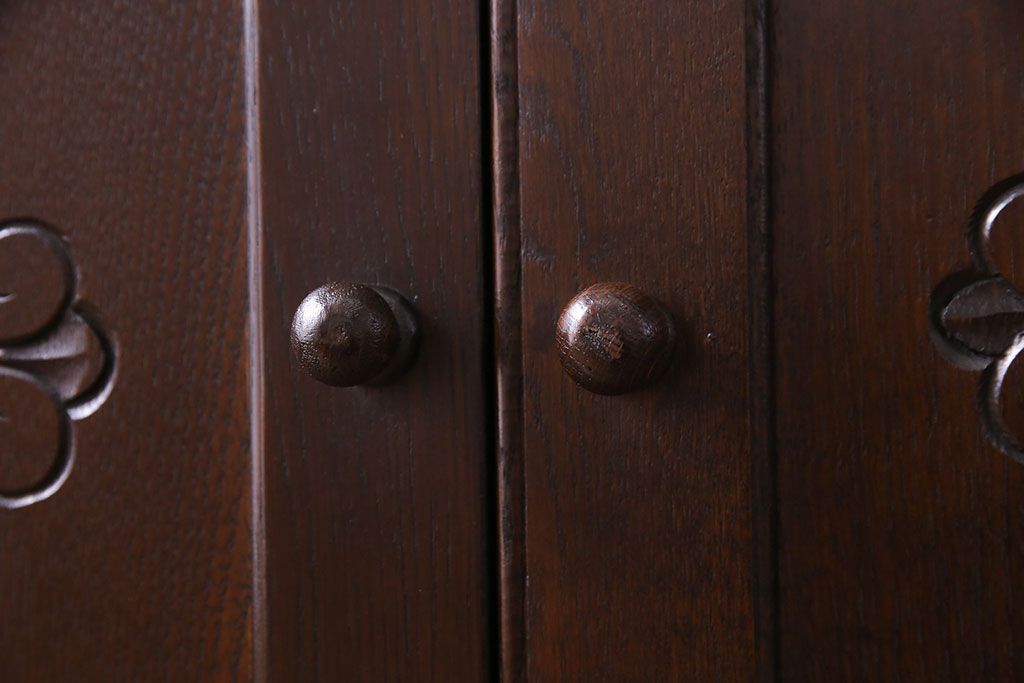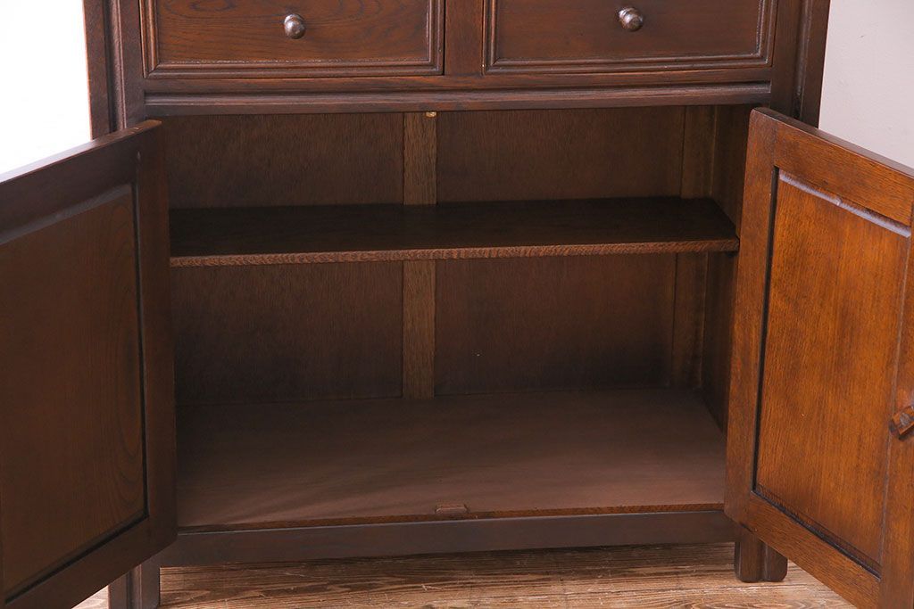 ヴィンテージ家具 イギリスビンテージ オーク材 素朴な雰囲気漂うカップボード(食器棚、収納棚)(1)