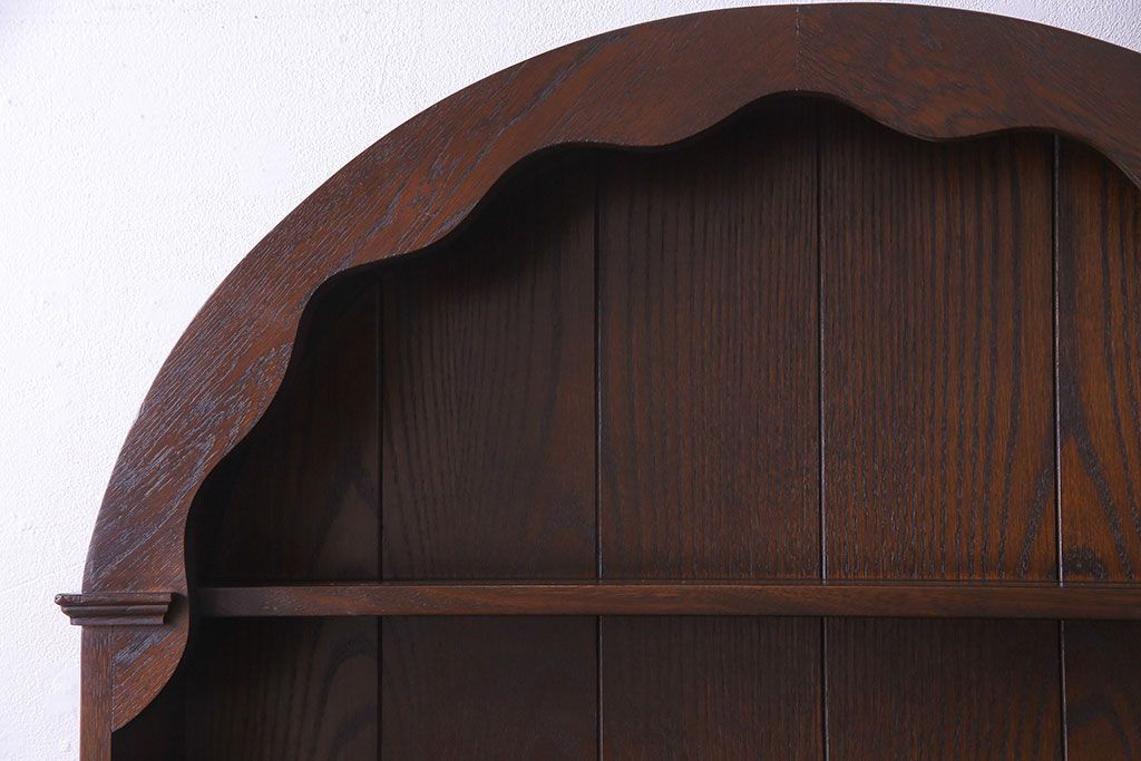 ラフジュ工房> オープンラック・シェルフ> ディスプレイラック > ヴィンテージ家具 イギリスビンテージ オーク材 素朴な雰囲気漂うカップボード(食器棚、収納棚)(1)