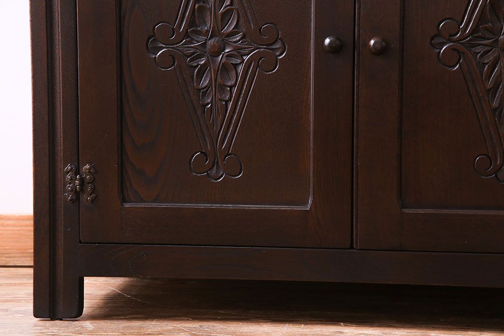 ラフジュ工房> キャビネット・戸棚> 食器棚・カップボード > ヴィンテージ家具 イギリスビンテージ オーク材 素朴な雰囲気漂うカップボード(食器棚、収納棚)(1)