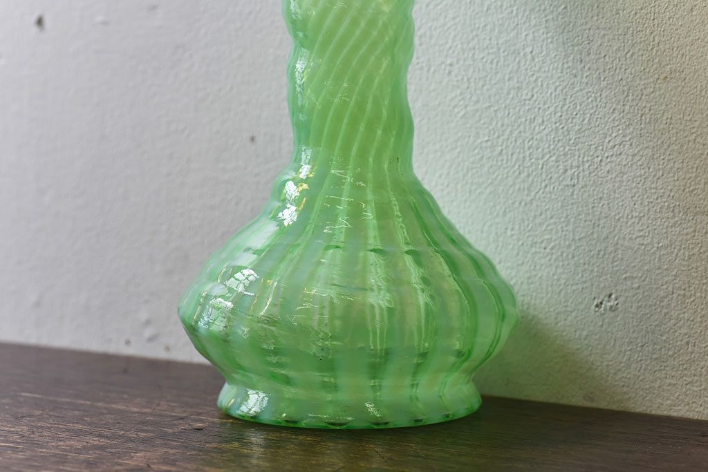 ラフジュ工房> 雑貨> ガラス瓶・花瓶 > アンティーク雑貨 アメリカ製 ワセリンガラス 口元のフリルがおしゃれなフラワーベース(花瓶、ウランガラス)