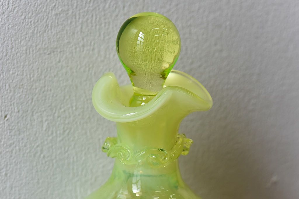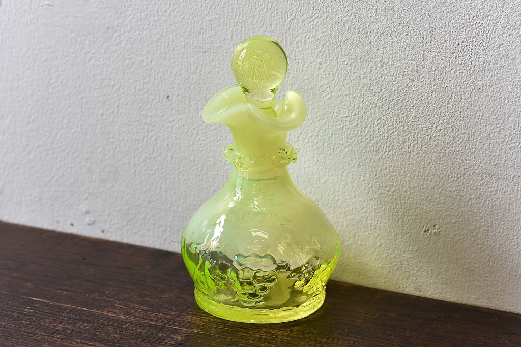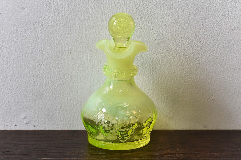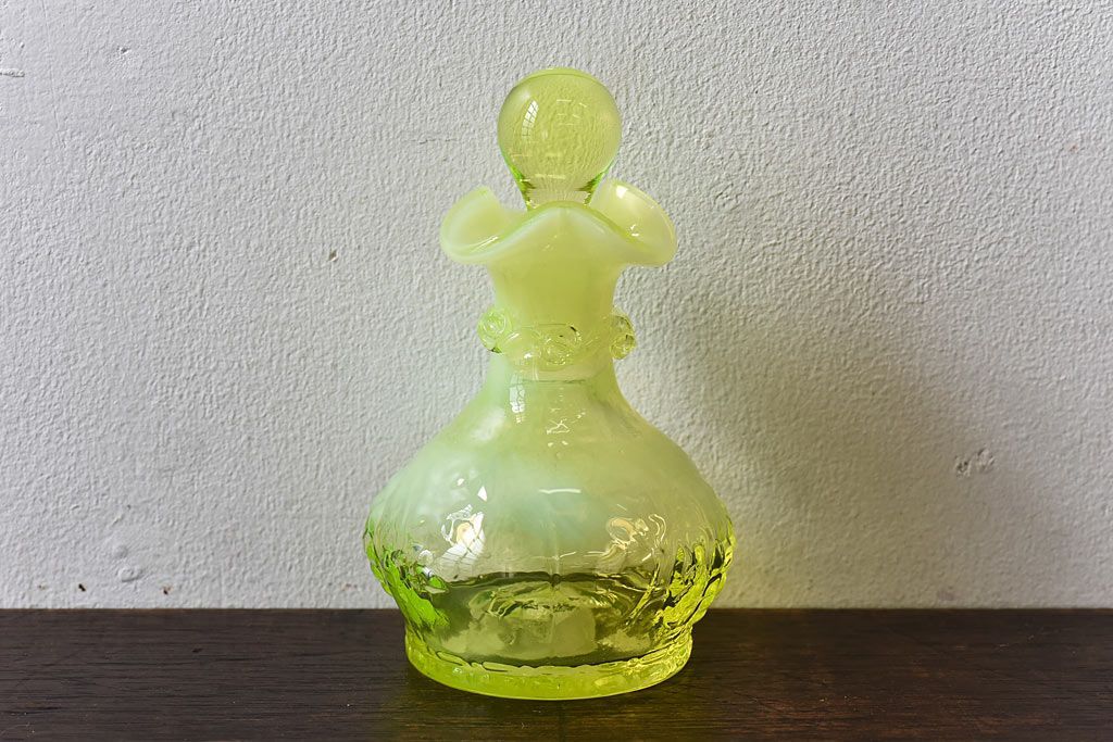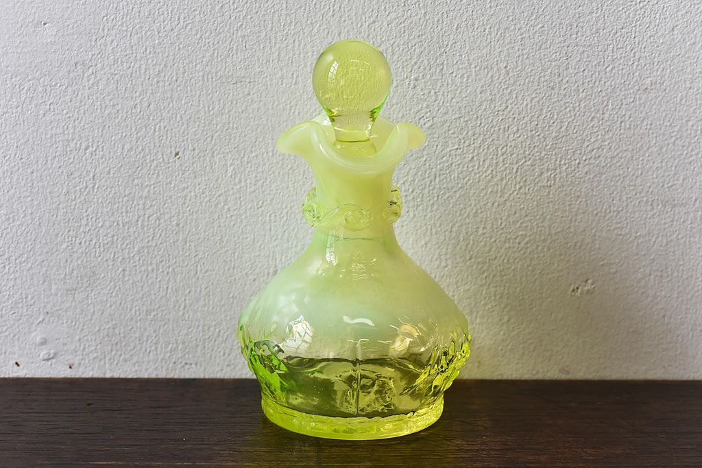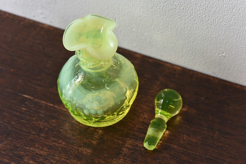 アンティーク雑貨 アメリカビンテージ ワセリンガラス(ウランガラス) 優雅な雰囲気漂うパフュームボトル(香水瓶)