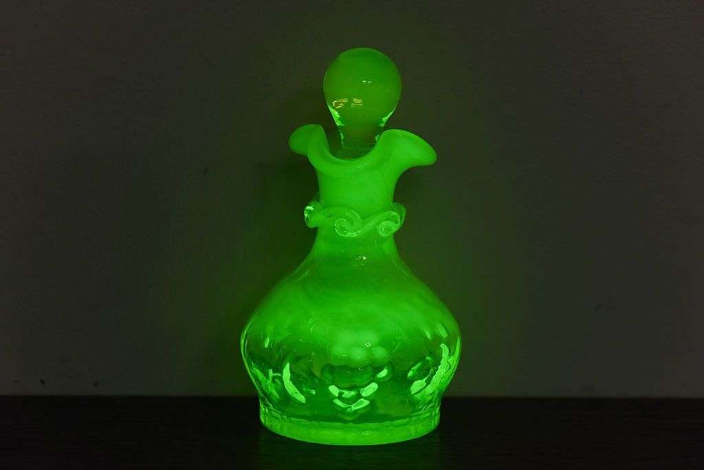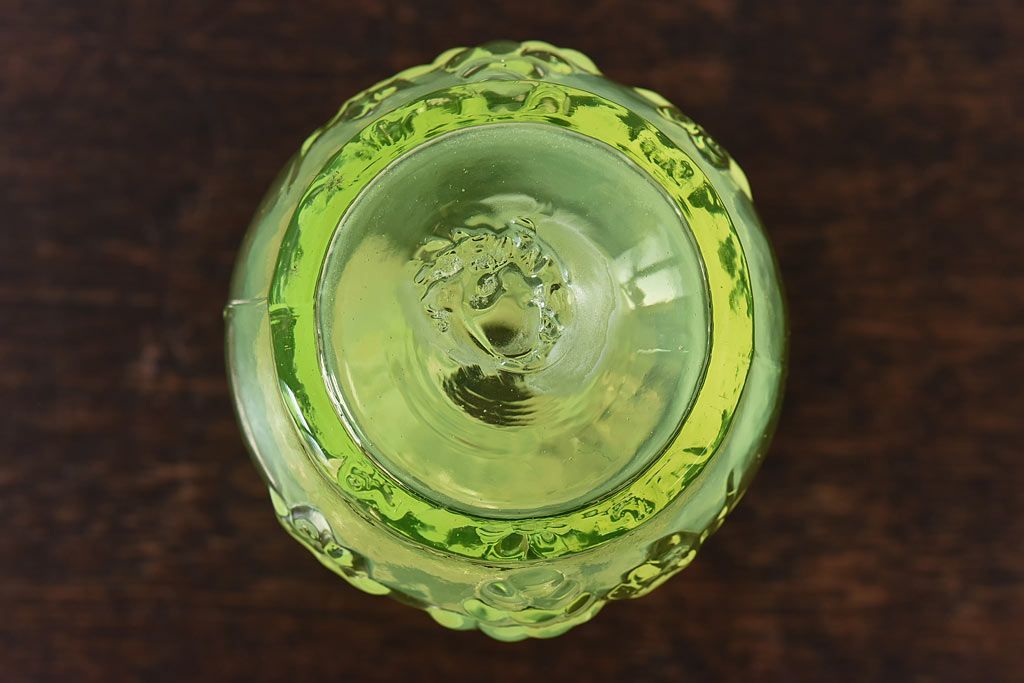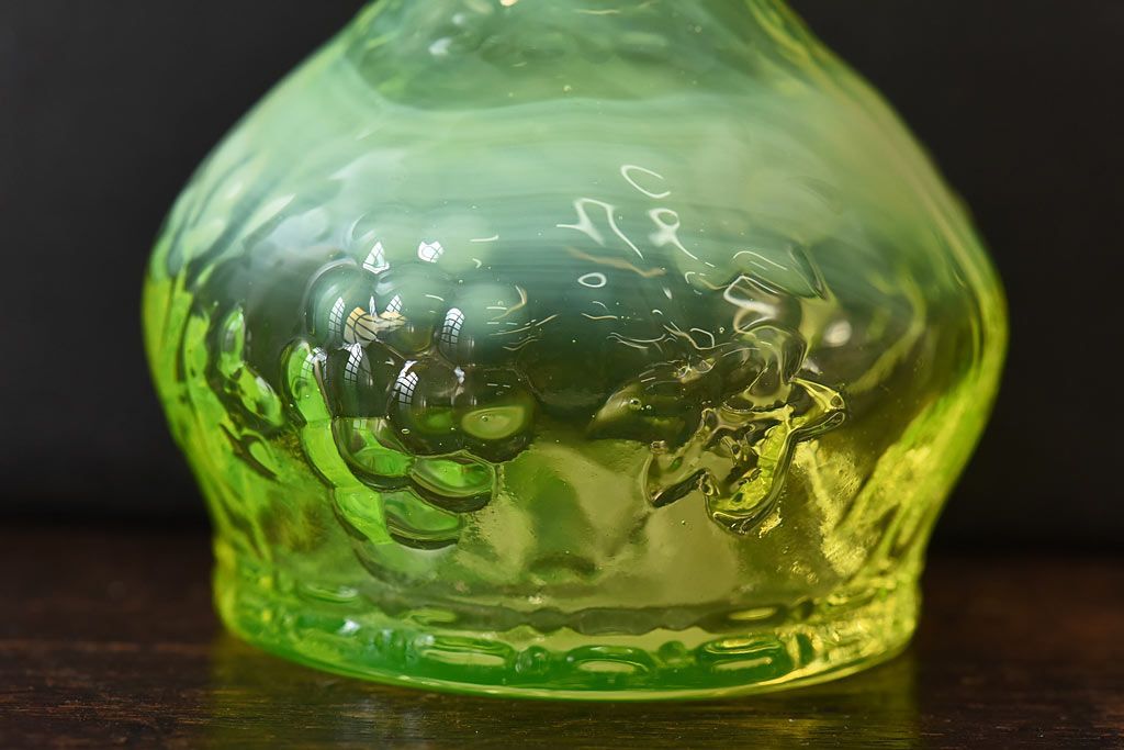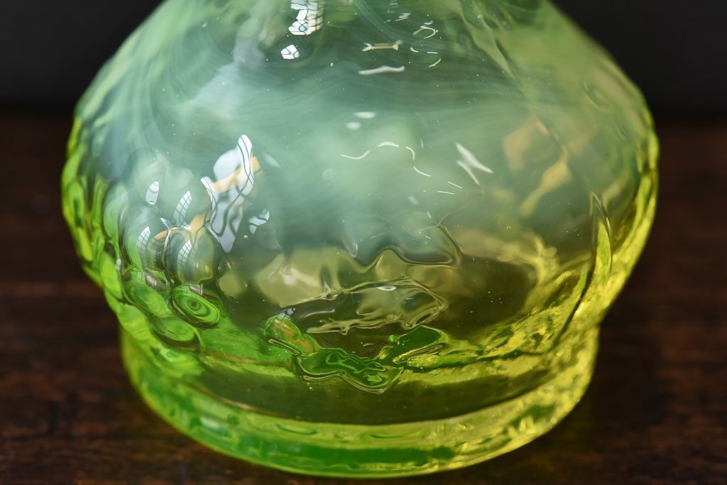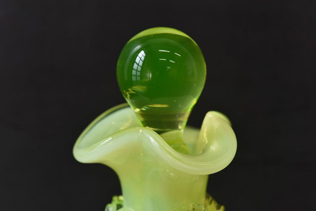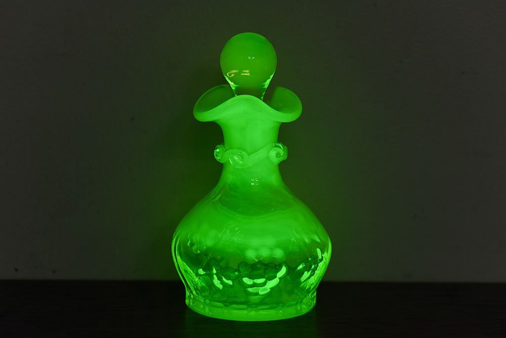 アンティーク雑貨 アメリカビンテージ ワセリンガラス(ウランガラス) 優雅な雰囲気漂うパフュームボトル(香水瓶)