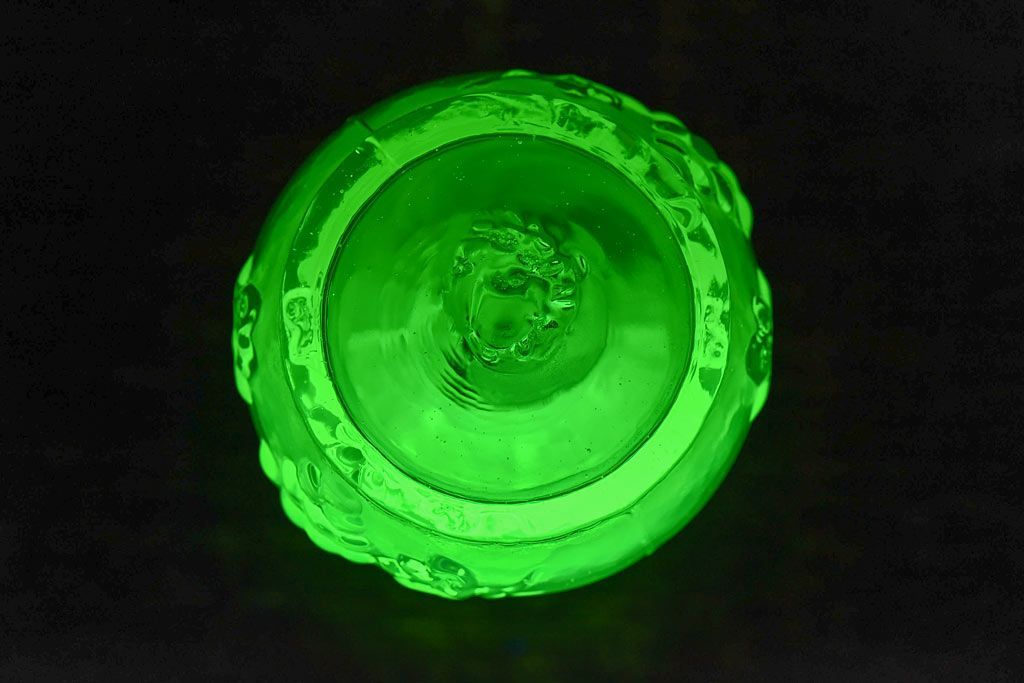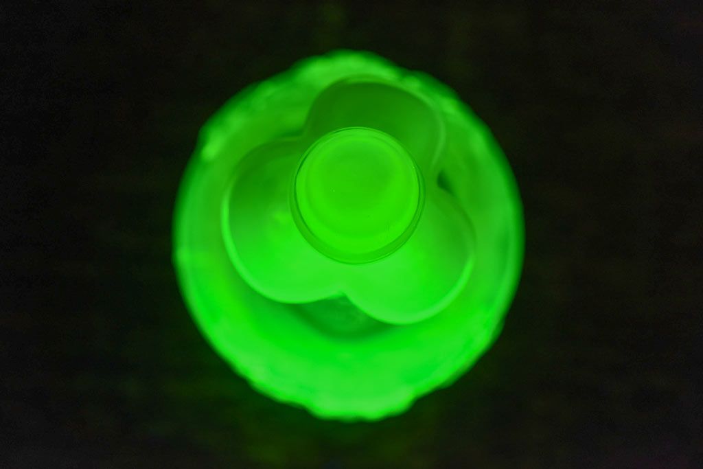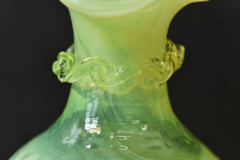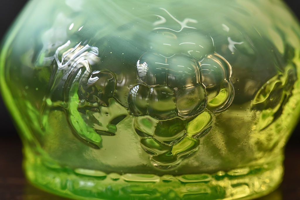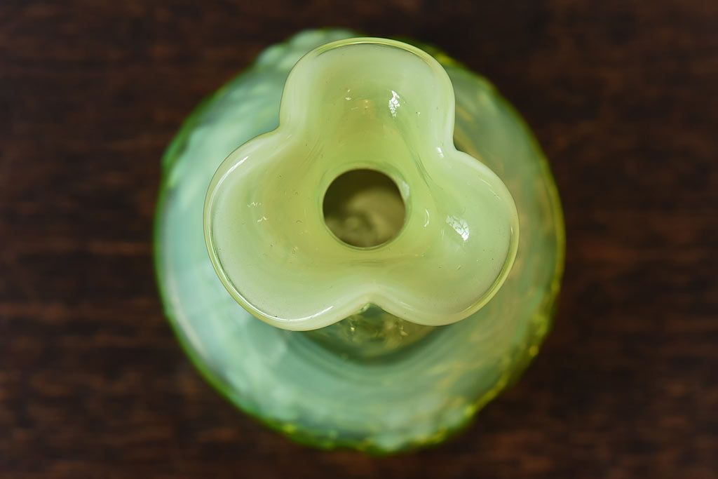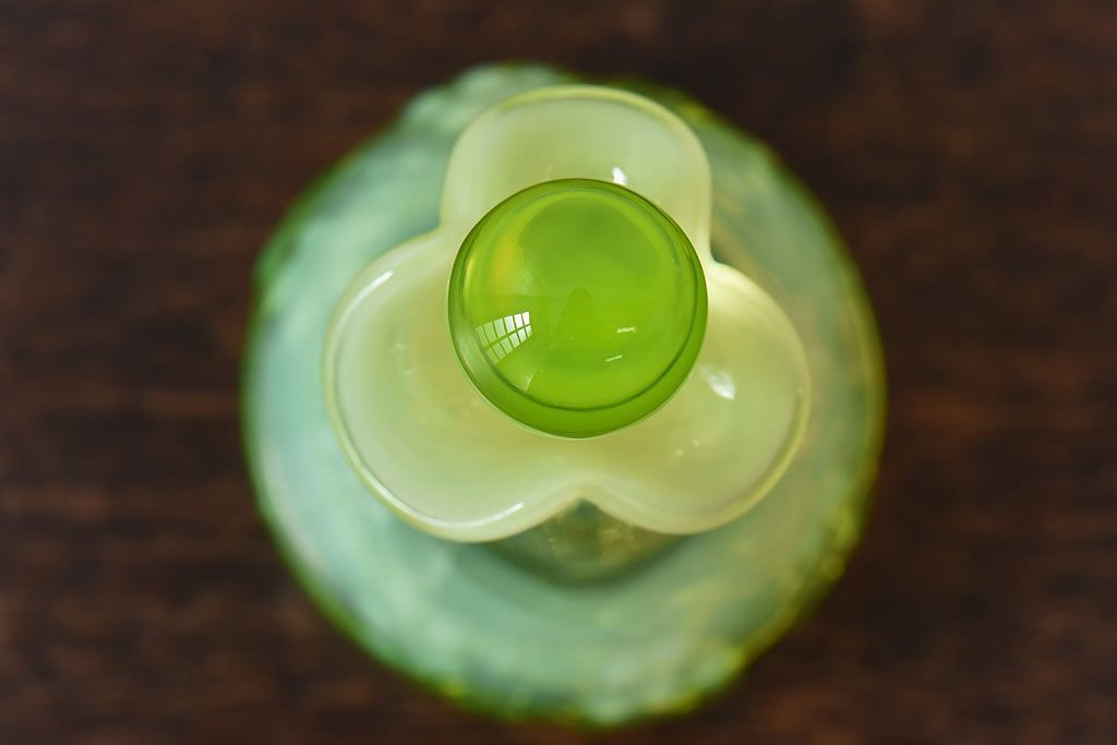 アンティーク雑貨 アメリカビンテージ ワセリンガラス(ウランガラス) 優雅な雰囲気漂うパフュームボトル(香水瓶)