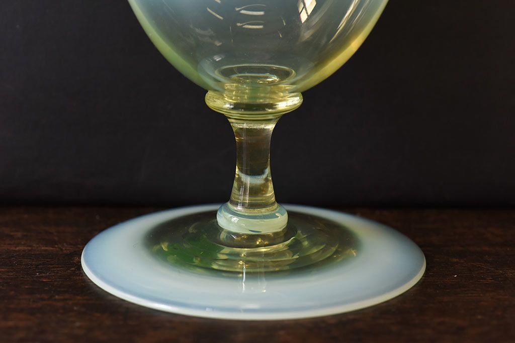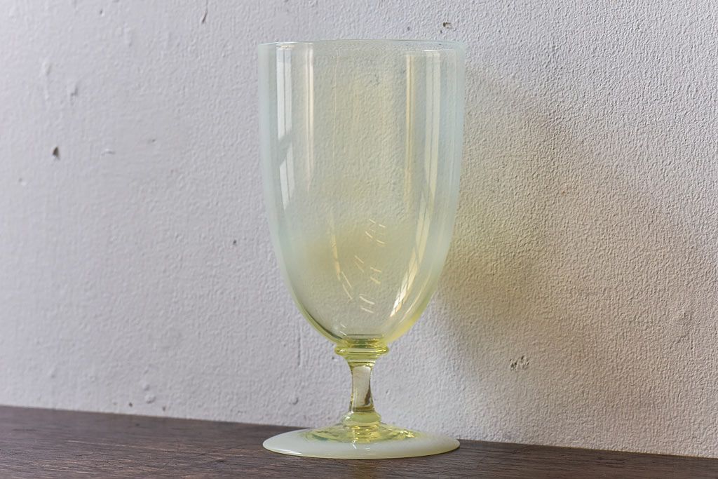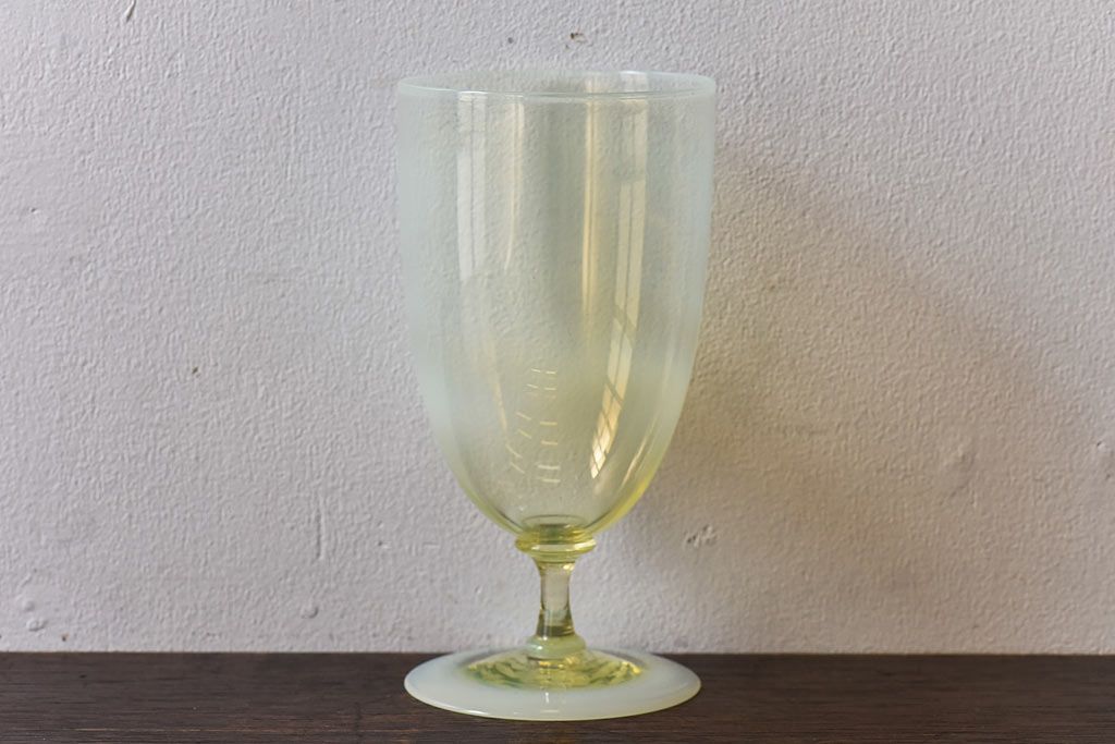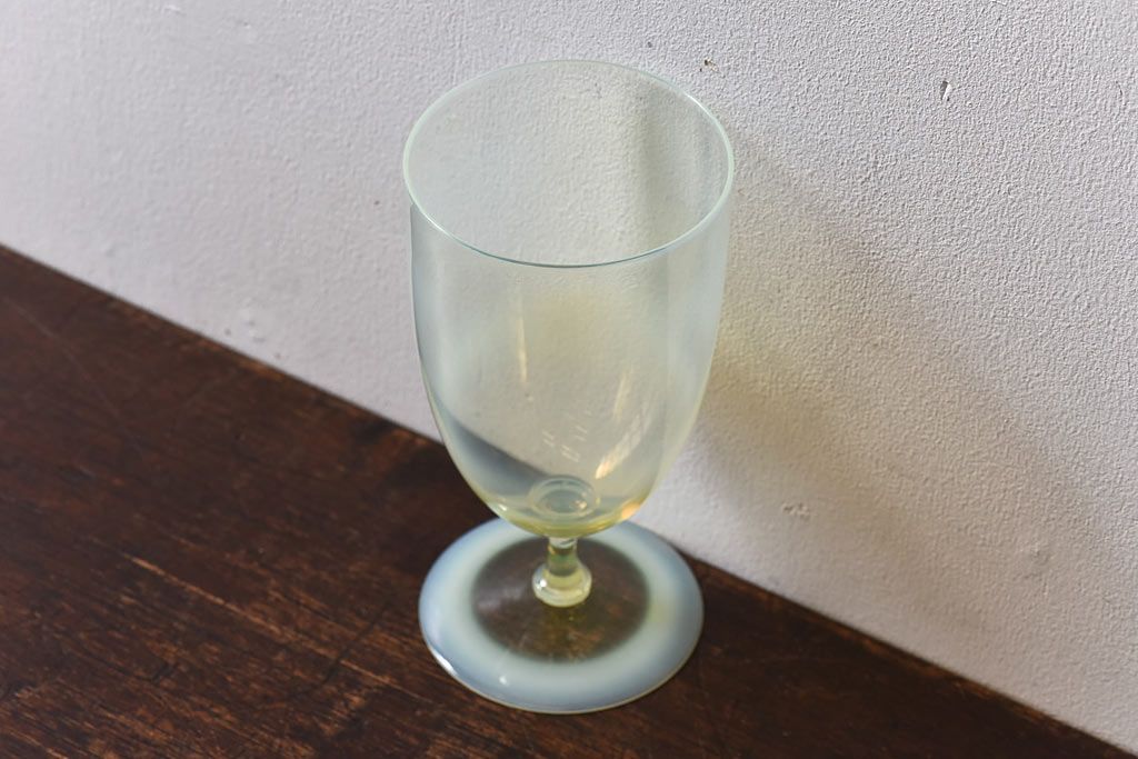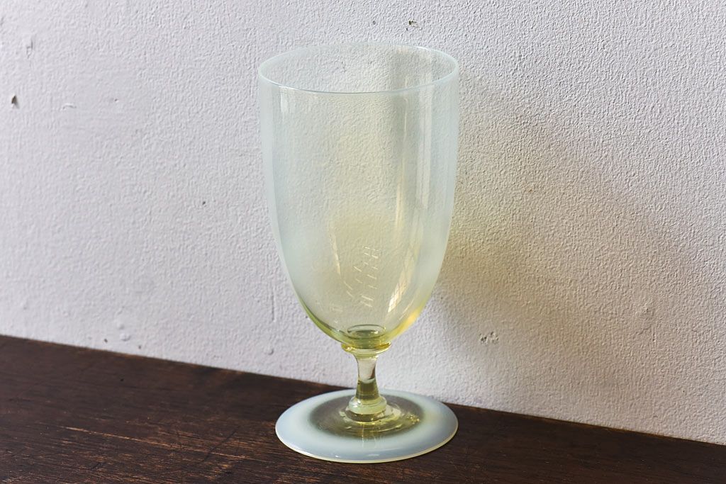 アンティーク雑貨 ワセリンガラス(ウランガラス) 幻想的な雰囲気漂うサワーグラス(ワイングラス、酒器)(1)