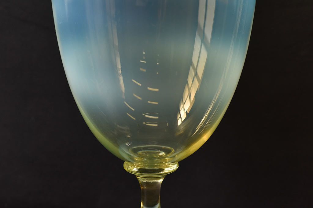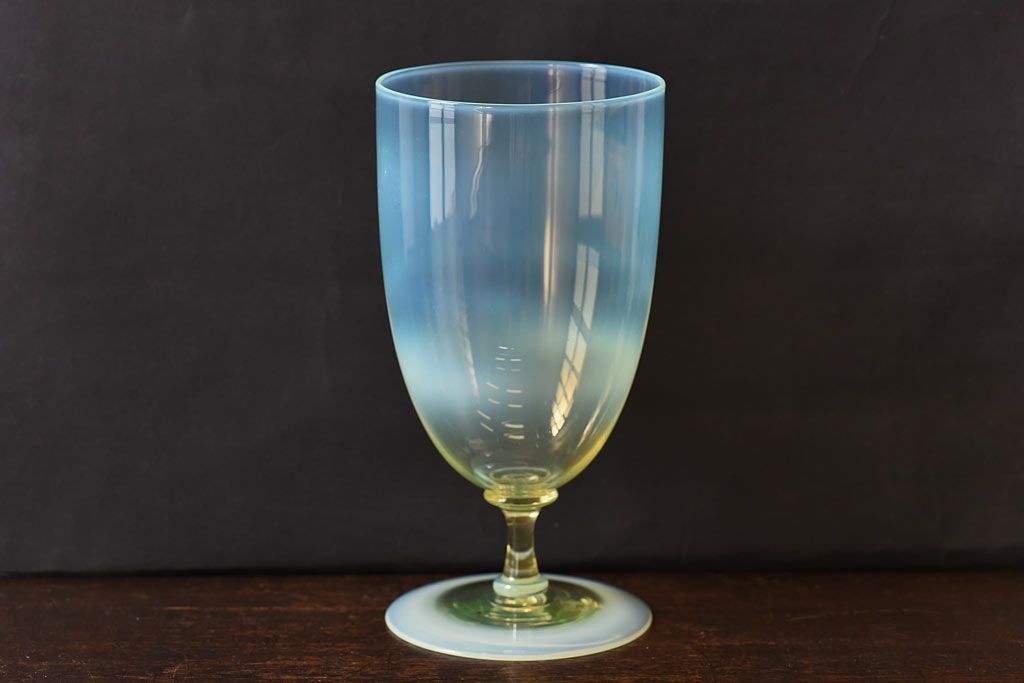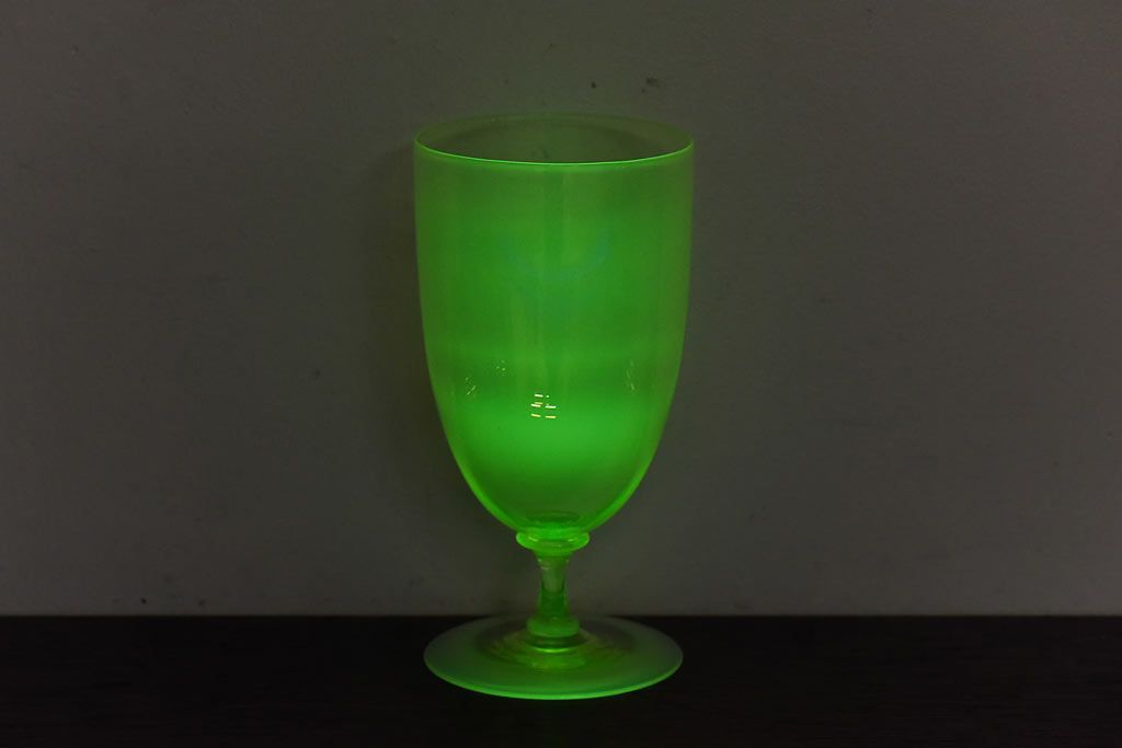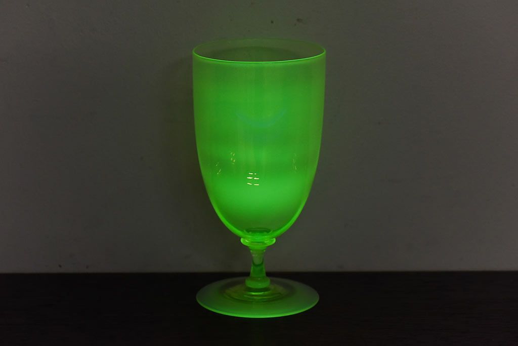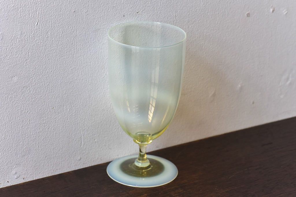 アンティーク雑貨 ワセリンガラス(ウランガラス) 幻想的な雰囲気漂うサワーグラス(ワイングラス、酒器)(1)