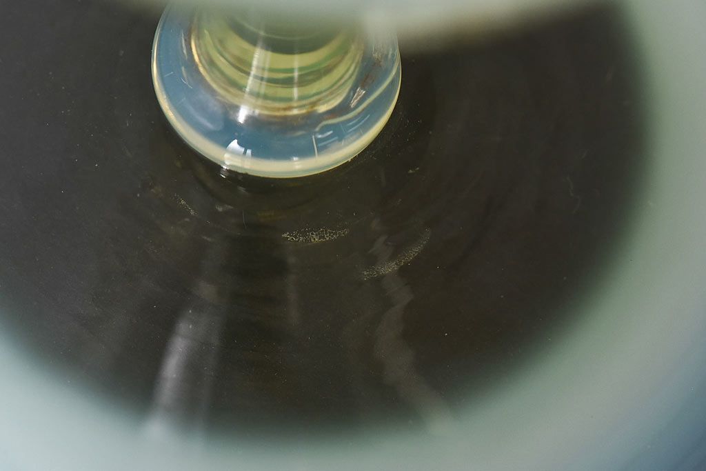 ラフジュ工房> 骨董・美術品> 骨董-ガラス食器 > アンティーク雑貨 ワセリンガラス(ウランガラス) 幻想的な雰囲気漂うサワーグラス(ワイングラス、酒器)(1)