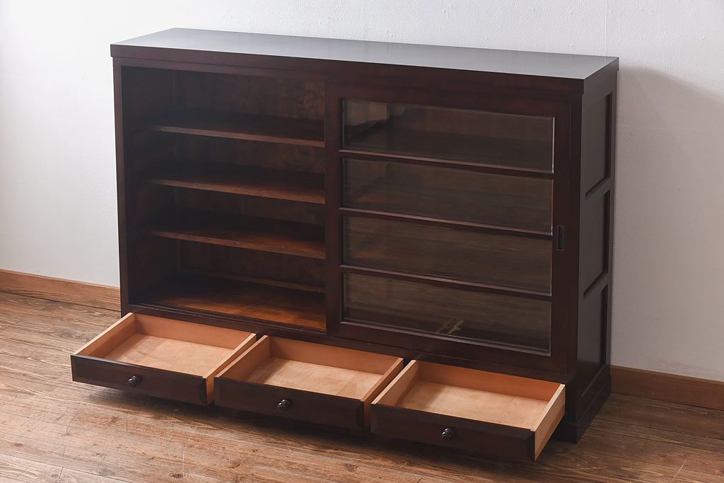 ラフジュ工房> キャビネット・戸棚> 本箱 > 中古 松本民芸家具 特注品 引き出し付 大人の空間づくりにおすすめな本箱(サイドボード、ブックケース)