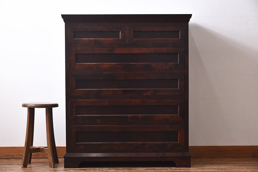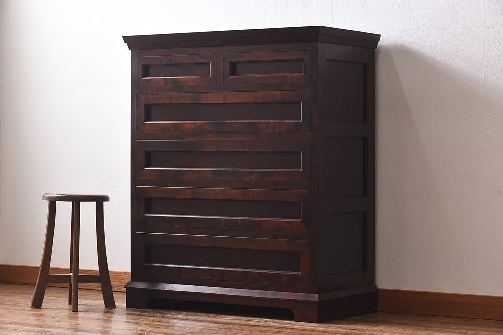 中古 松本民芸家具 503型 直線のデザインが目を引く整理箪笥(引き出し、衣装箪笥、チェスト)(定価約28万円)(2)
