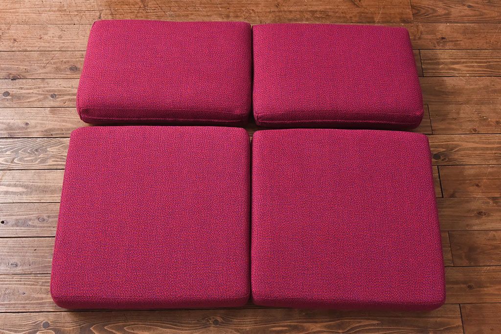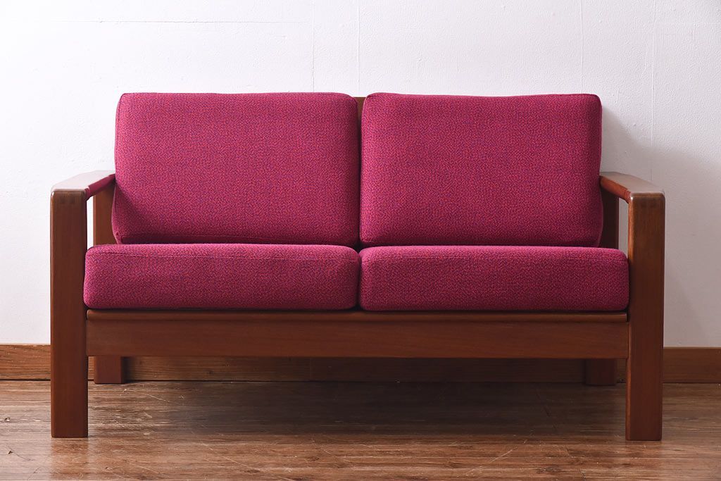ラフジュ工房> ソファ> 2人掛けソファ > ヴィンテージ家具 北欧ビンテージ チーク材 ファブリックが差し色になる二人掛けソファ(ラブソファ、ダイニングソファ)