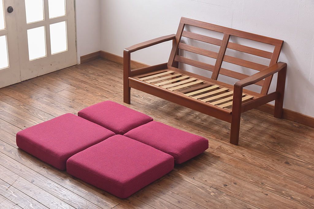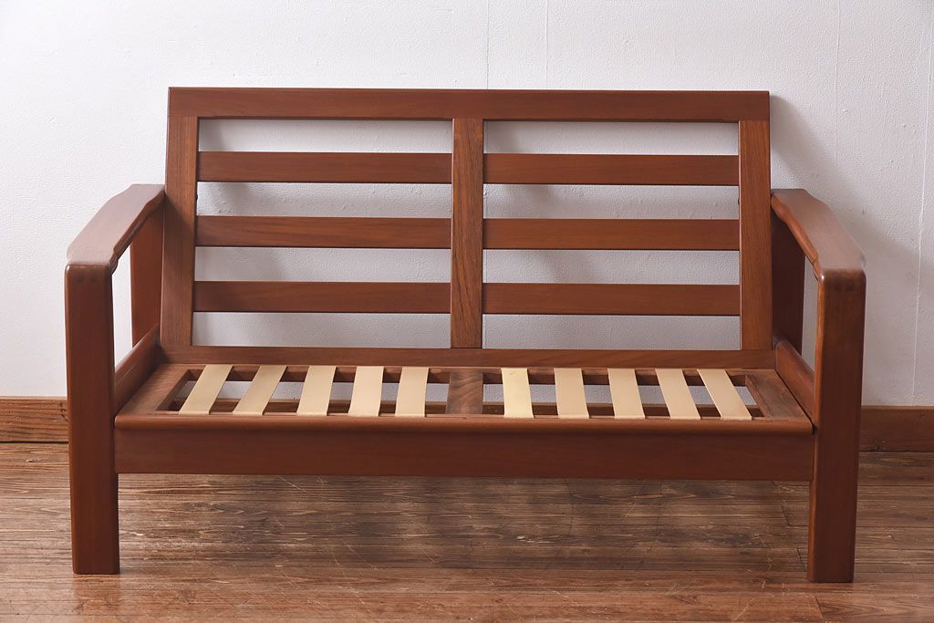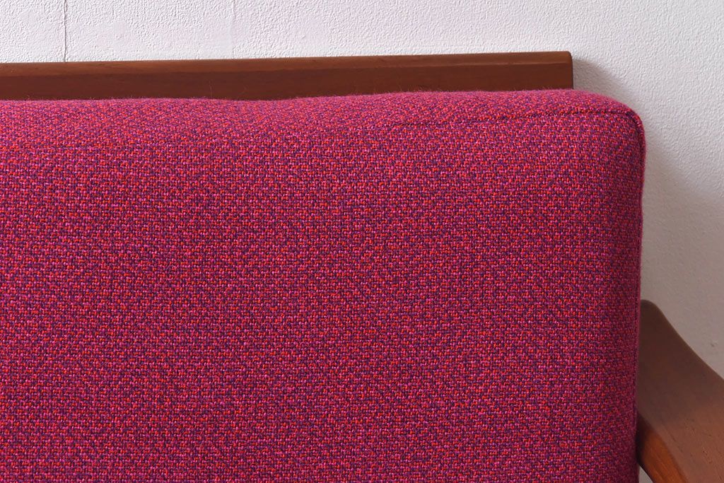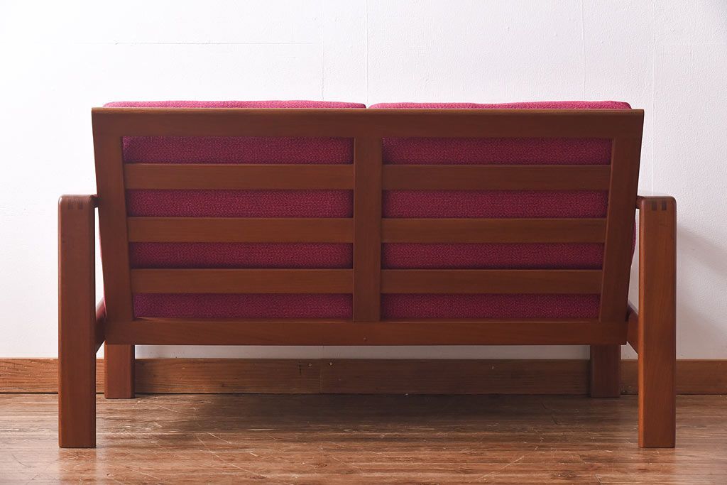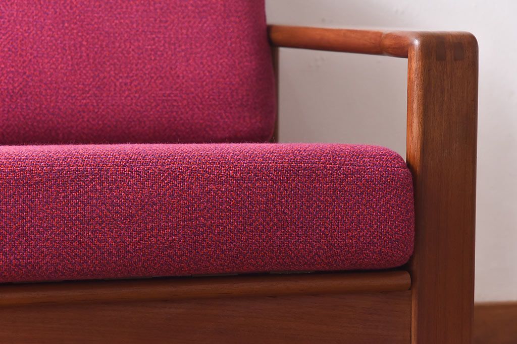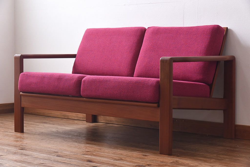 ラフジュ工房> ソファ> ダイニングソファ > ヴィンテージ家具 北欧ビンテージ チーク材 ファブリックが差し色になる二人掛けソファ(ラブソファ、ダイニングソファ)