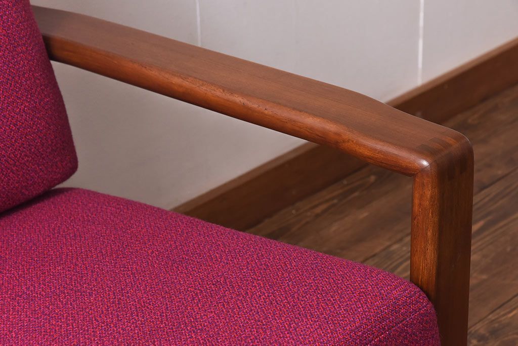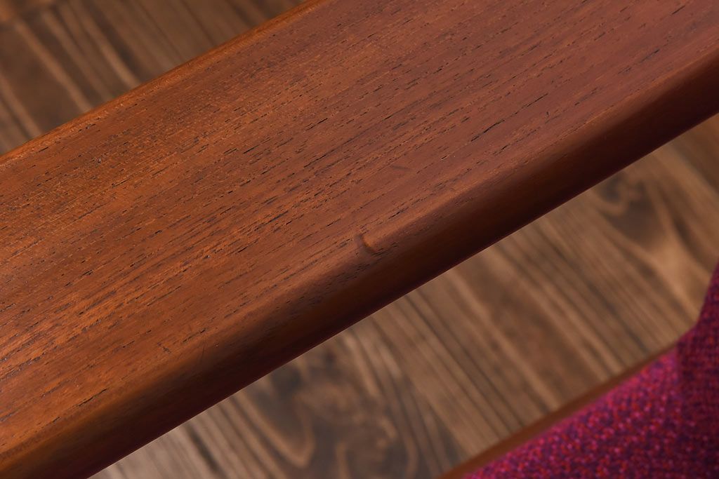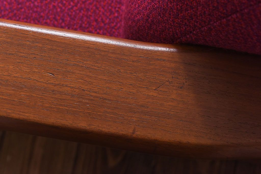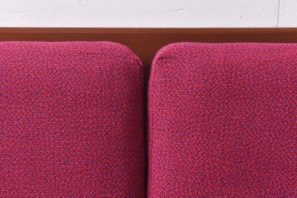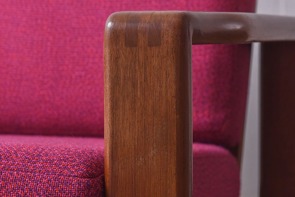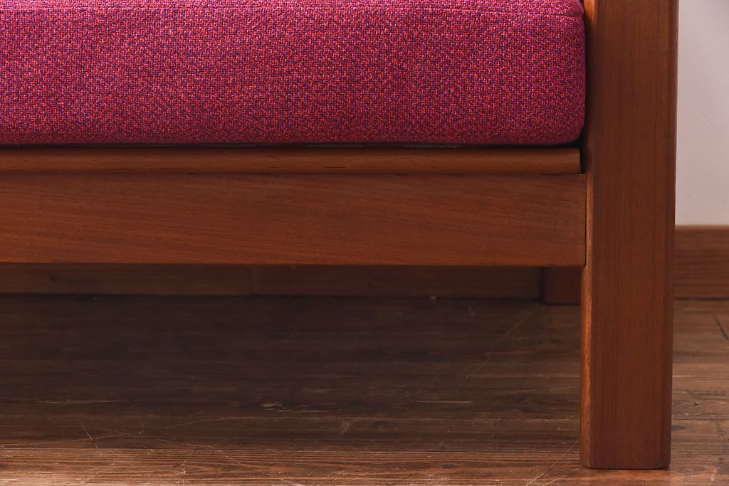 ラフジュ工房> ソファ> ダイニングソファ > ヴィンテージ家具 北欧ビンテージ チーク材 ファブリックが差し色になる二人掛けソファ(ラブソファ、ダイニングソファ)