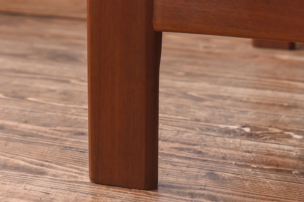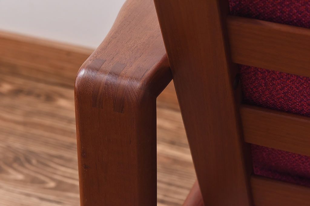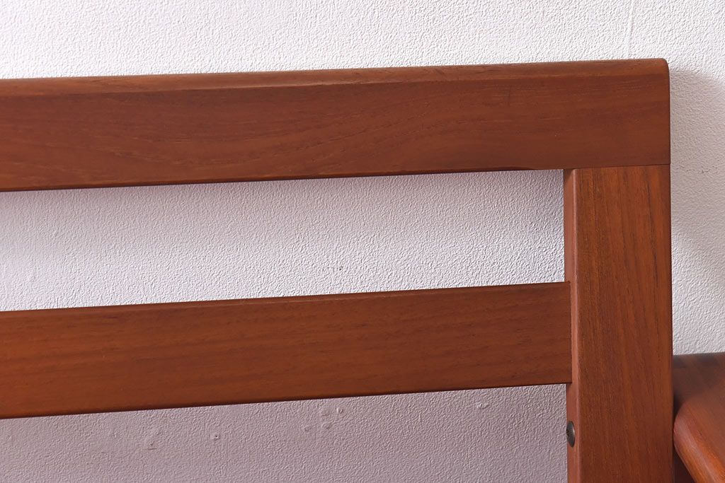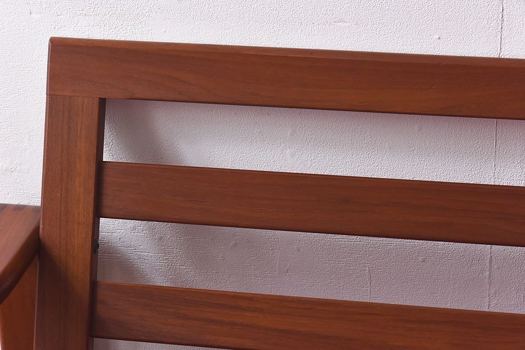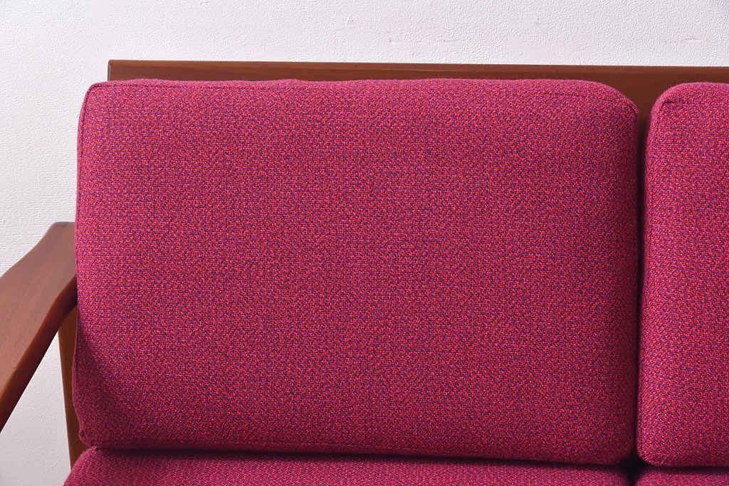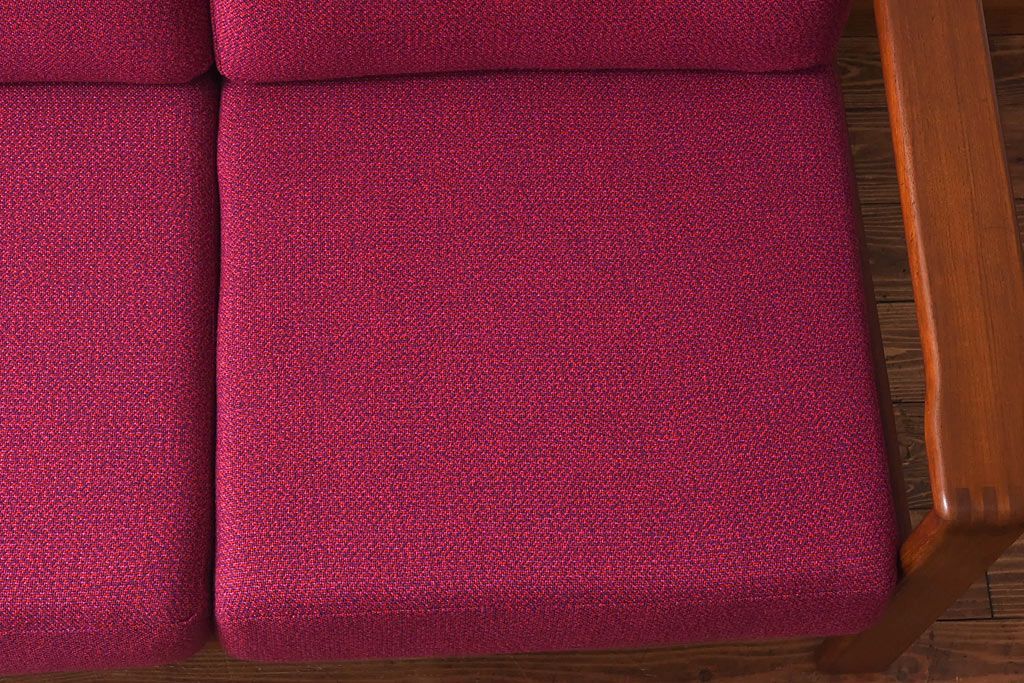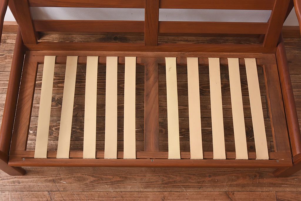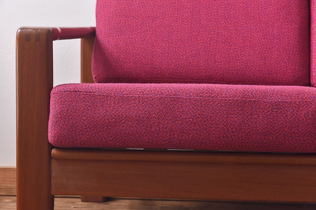 ヴィンテージ家具 北欧ビンテージ チーク材 ファブリックが差し色になる二人掛けソファ(ラブソファ、ダイニングソファ)