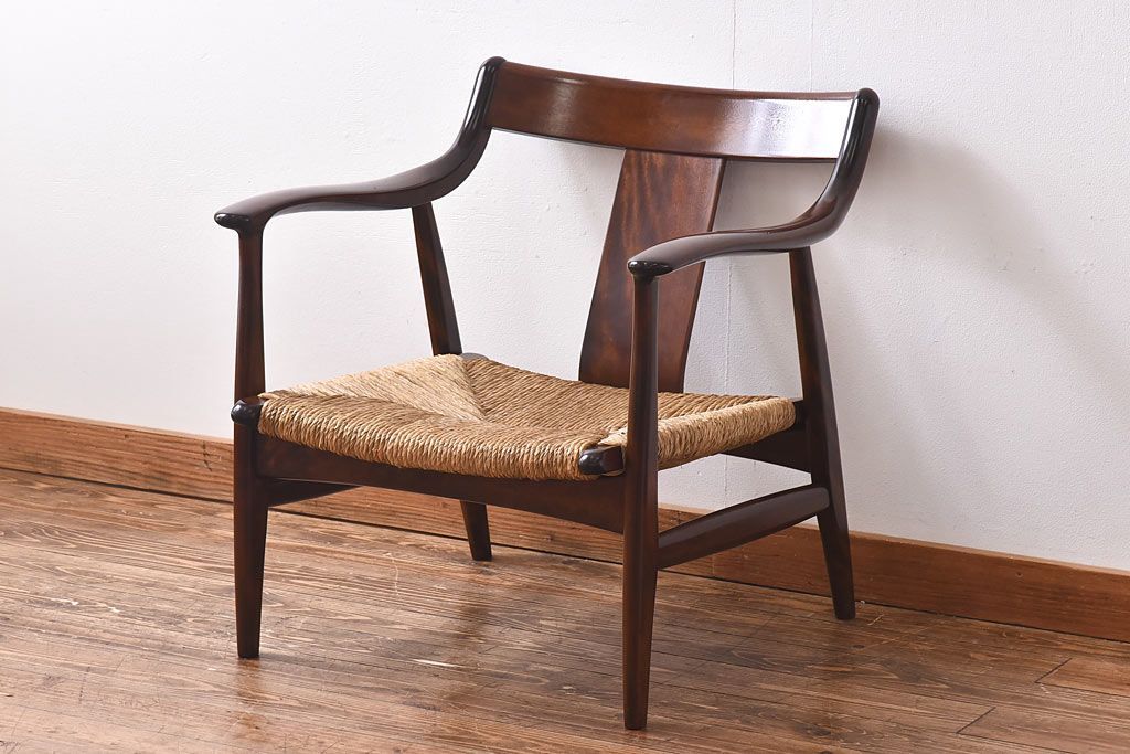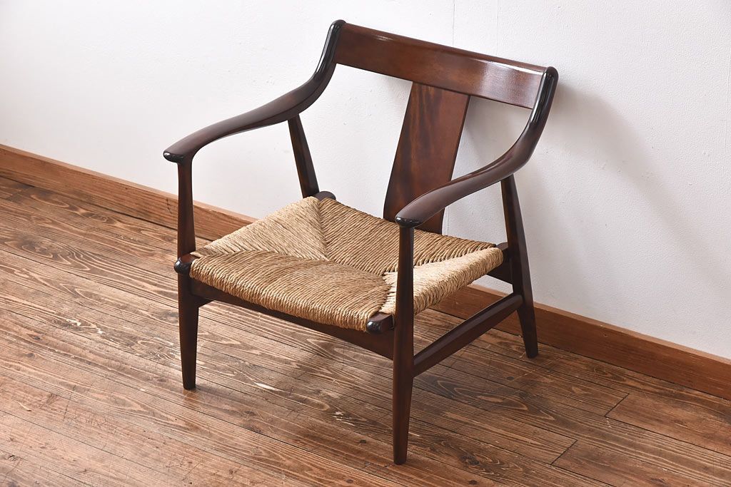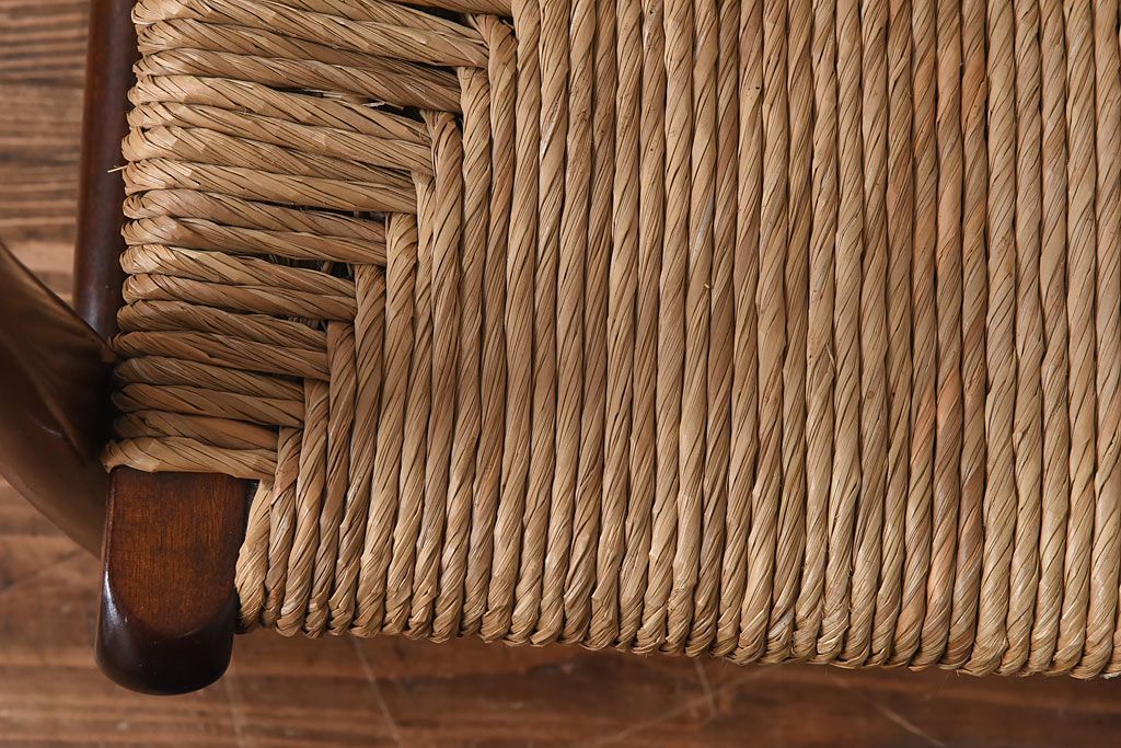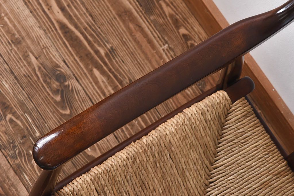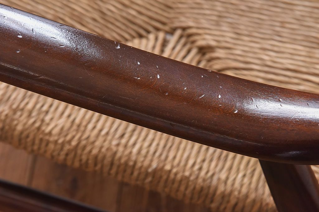 中古 松本民芸家具 77型 曲肘 体にフィットするラッシ座面アームチェア(定価約18万円)(1)