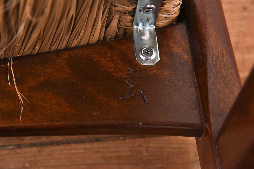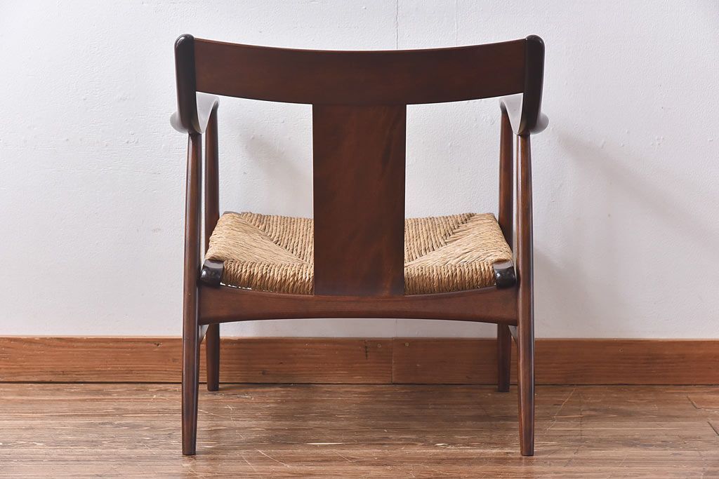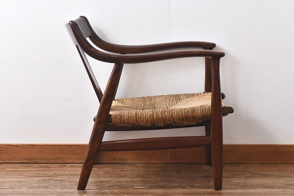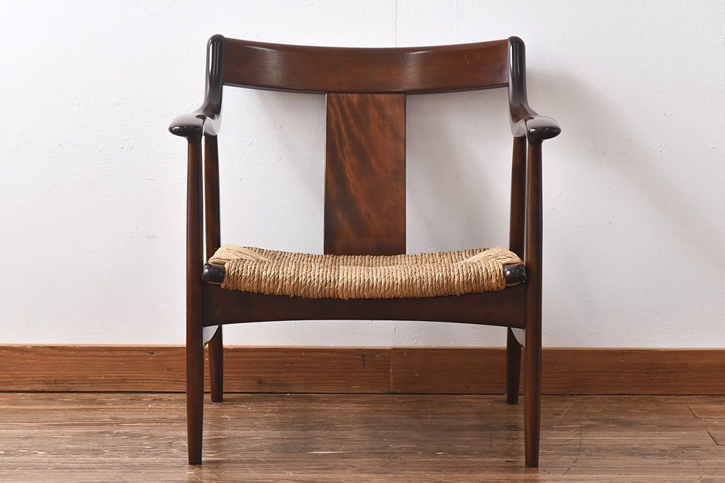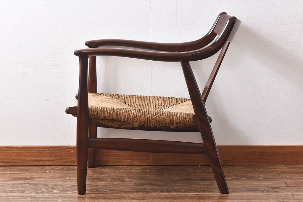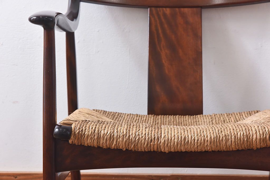 中古 松本民芸家具 77型 曲肘 体にフィットするラッシ座面アームチェア(定価約18万円)(1)