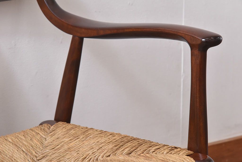 松本民芸家具の77型ラッシ座面アームチェアです。
