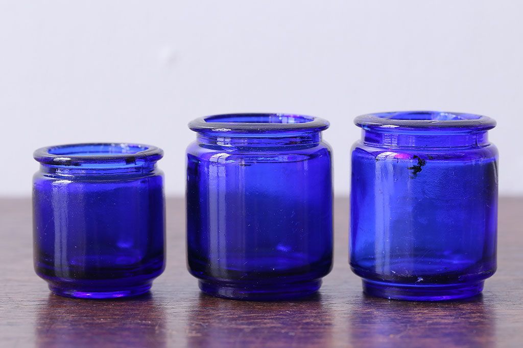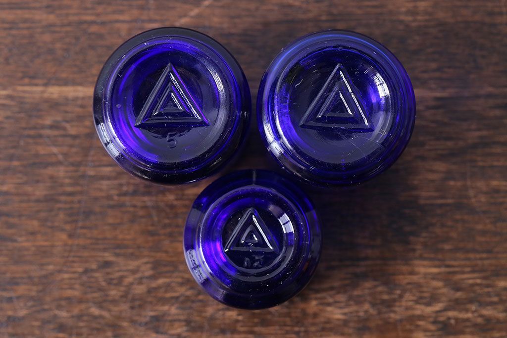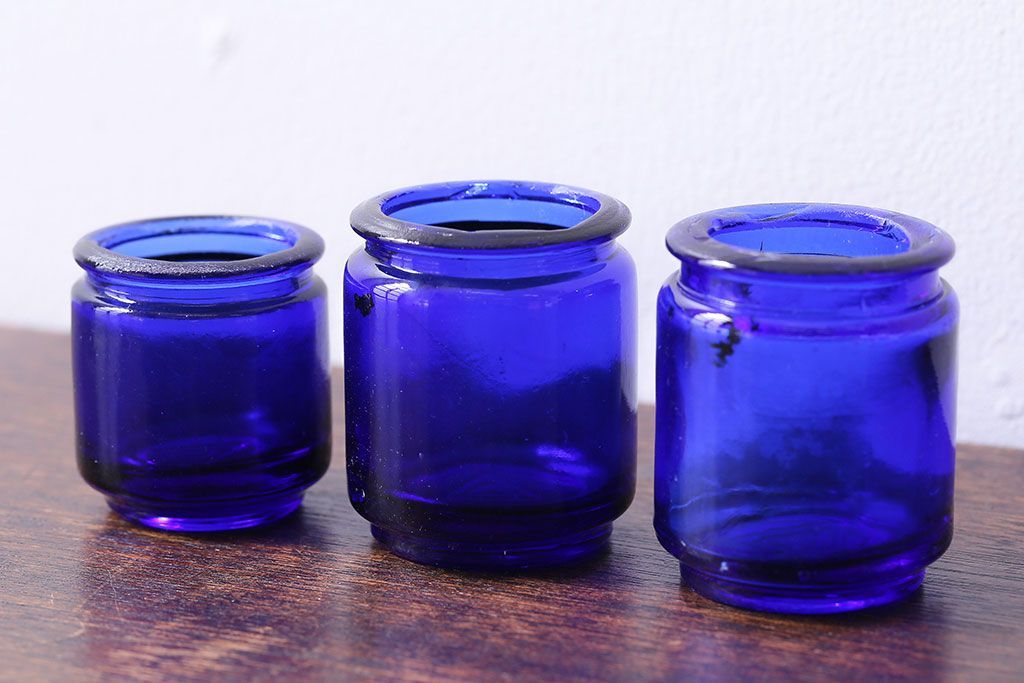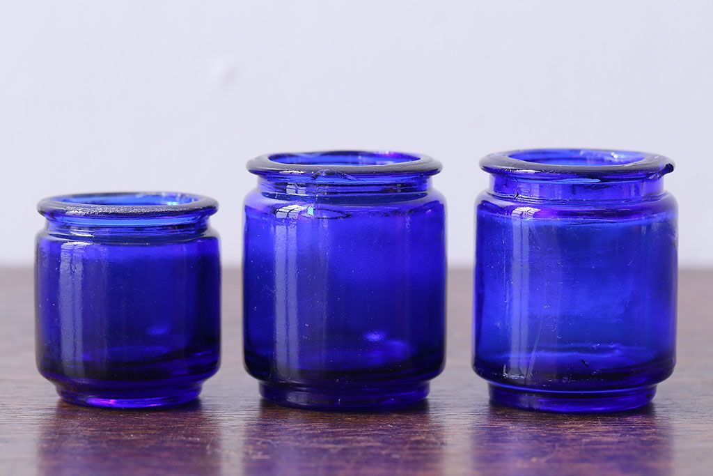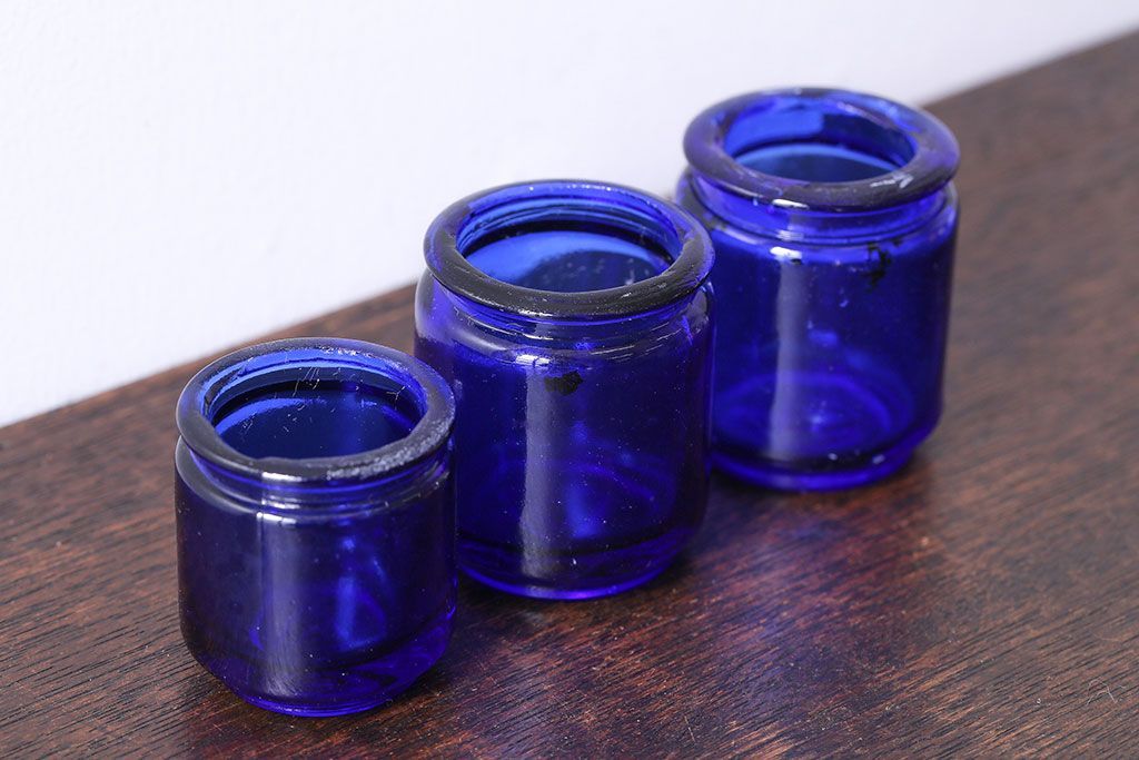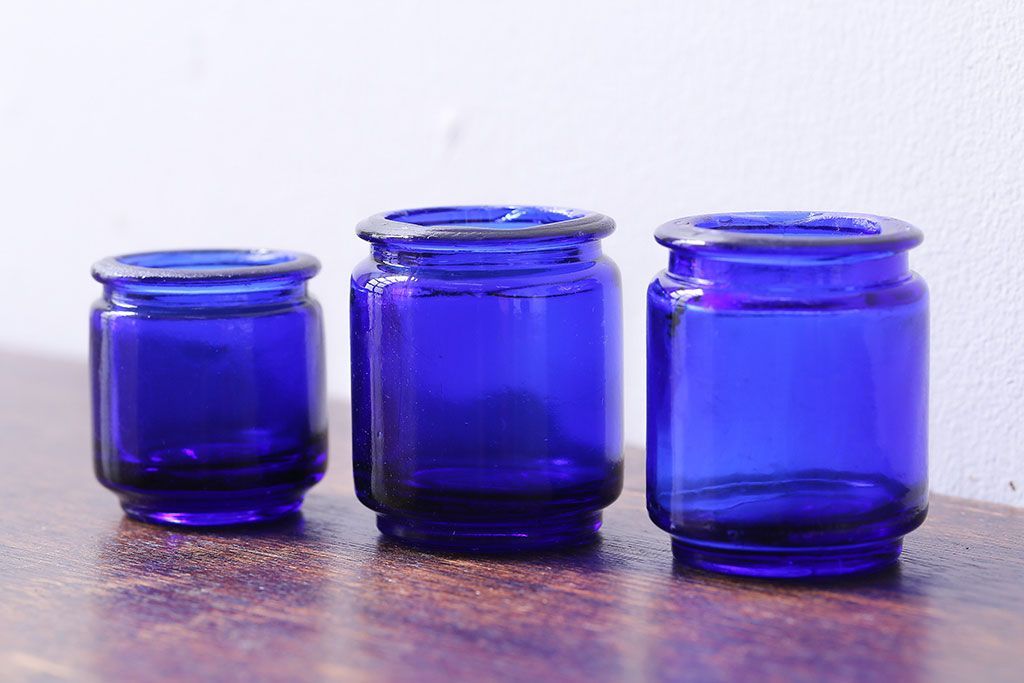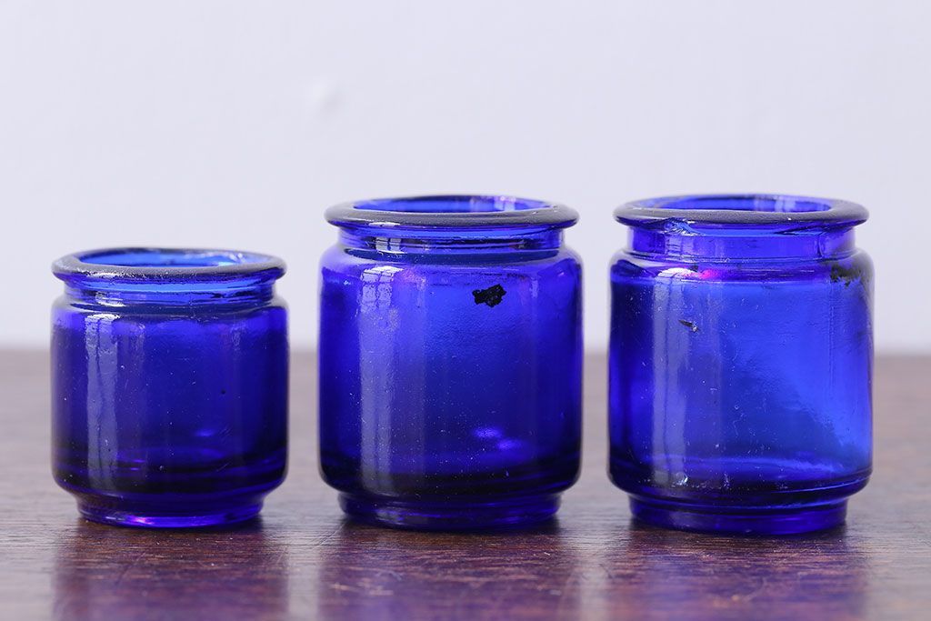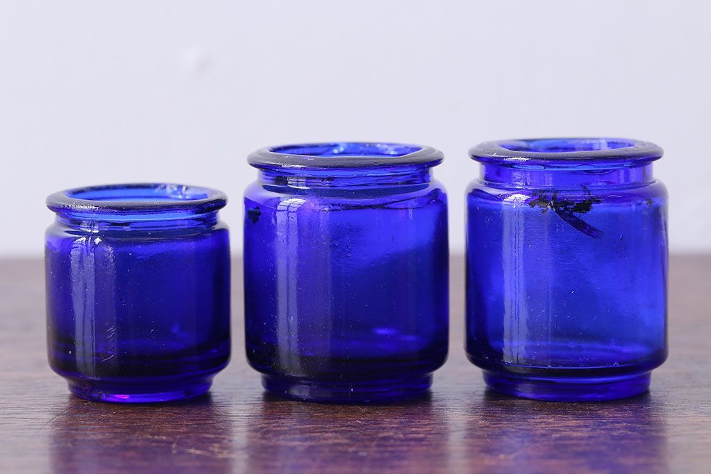 アンティーク雑貨 イギリス レトロで可愛らしい小さな青色ガラス瓶(ビン)3個セット(2)