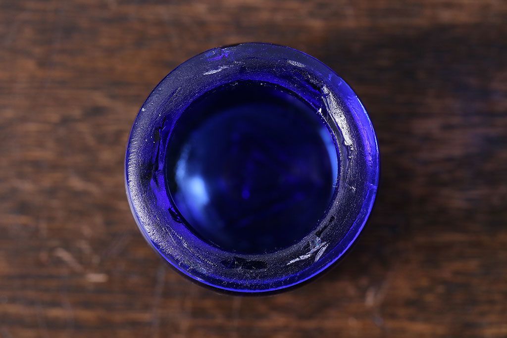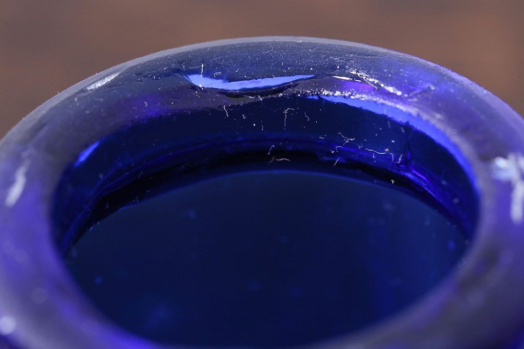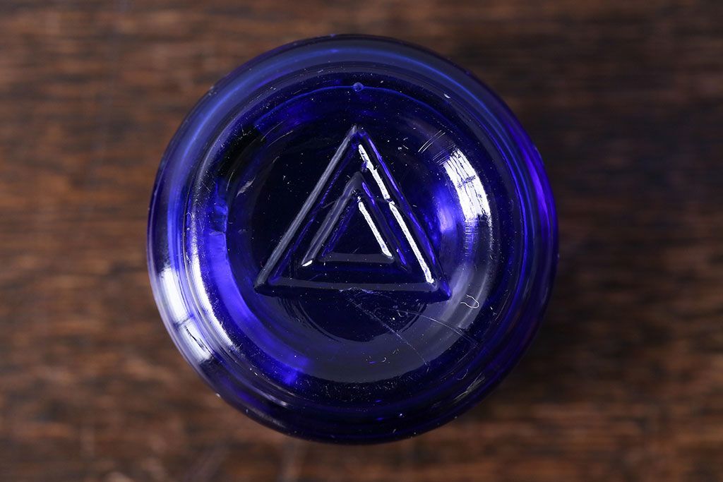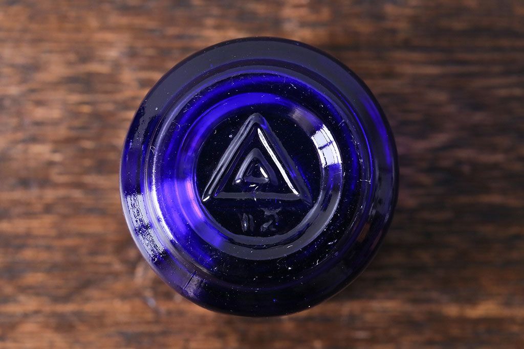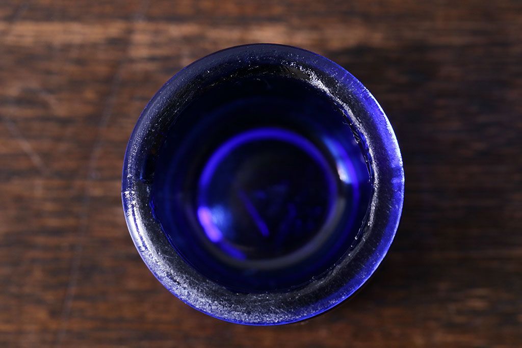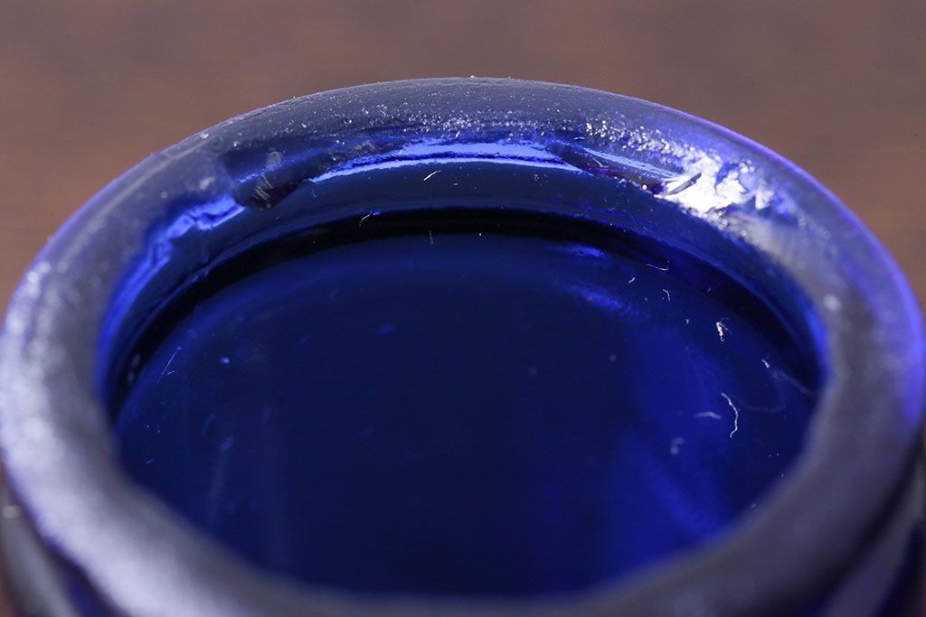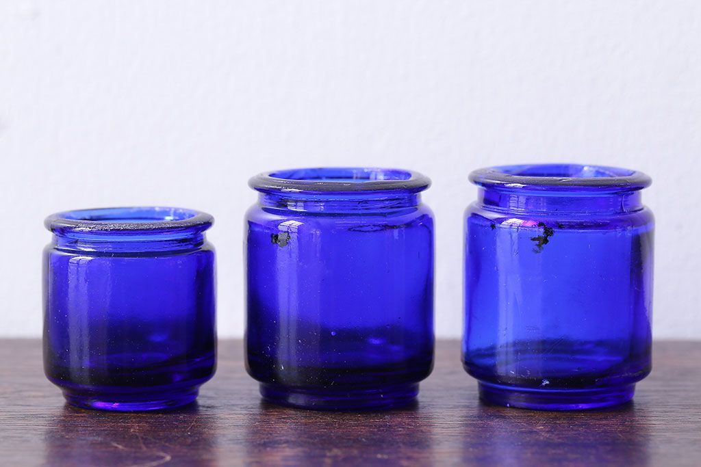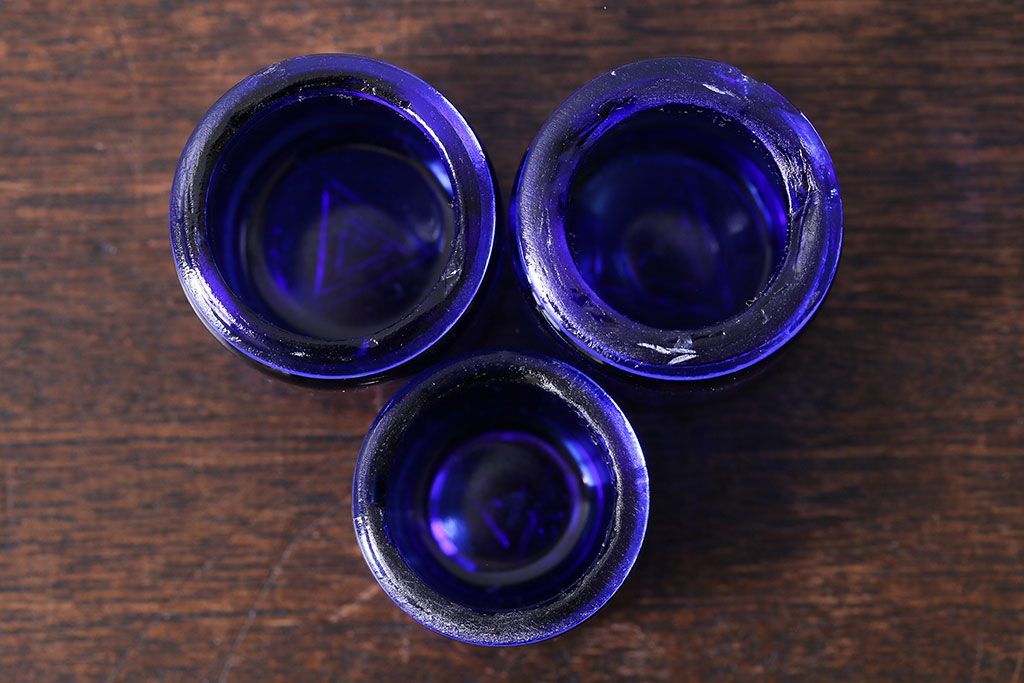 アンティーク雑貨 イギリス レトロで可愛らしい小さな青色ガラス瓶(ビン)3個セット(2)