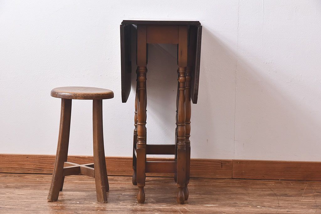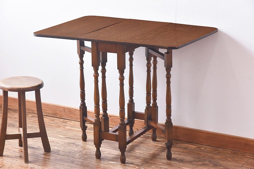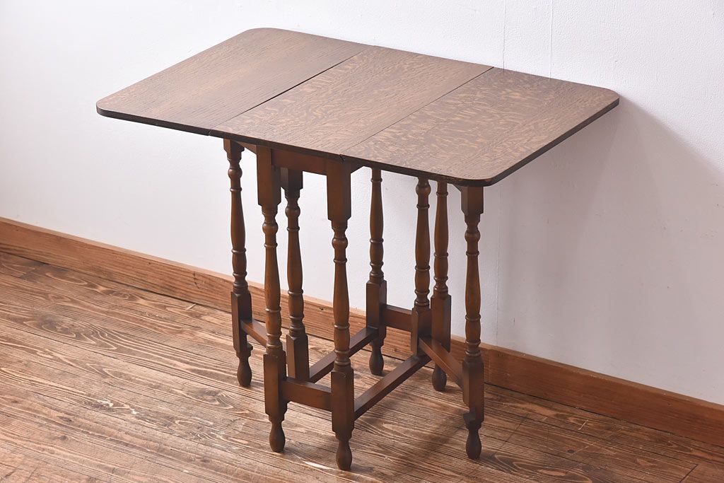 ヴィンテージ家具 イギリス ビンテージ オーク材 小振りのゲートレッグテーブル(バタフライテーブル、エクステンションテーブル、サイドテーブル)