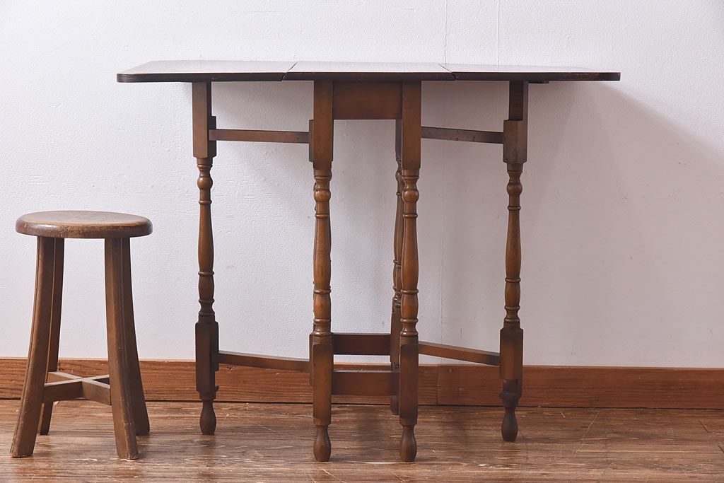 ラフジュ工房> テーブル> 2人用ダイニングテーブル > ヴィンテージ家具 イギリス ビンテージ オーク材 小振りのゲートレッグテーブル(バタフライテーブル、エクステンションテーブル、サイドテーブル)