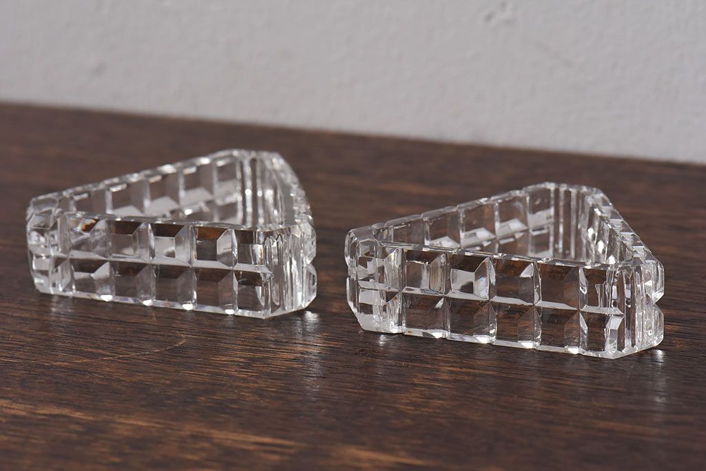 アンティーク雑貨 イギリスビンテージ キラキラと光るクリスタルカットのナプキンリング2個セット