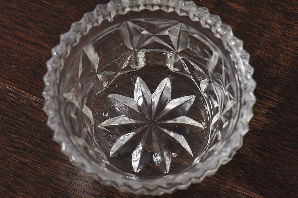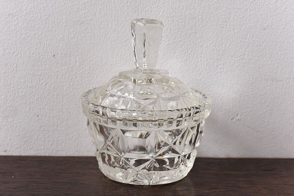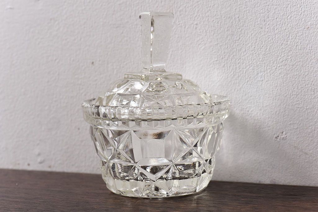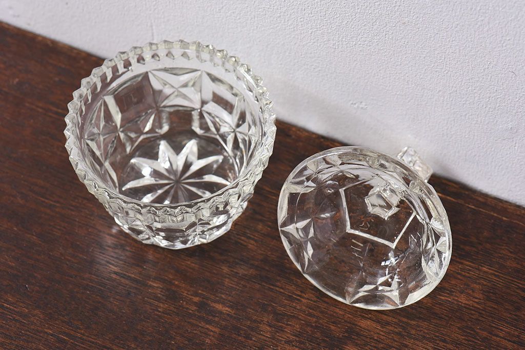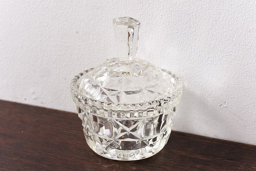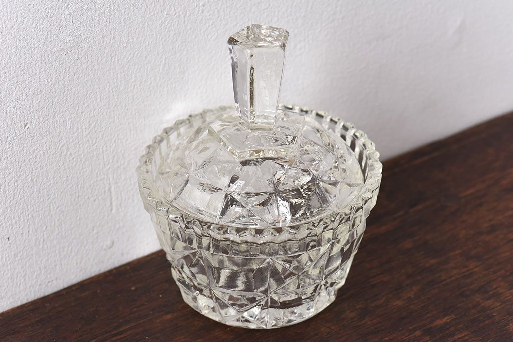 アンティーク雑貨 イギリスビンテージ ガラス製 厚みのあるしっかりとしたデザインが魅力の蓋付き小物入れ