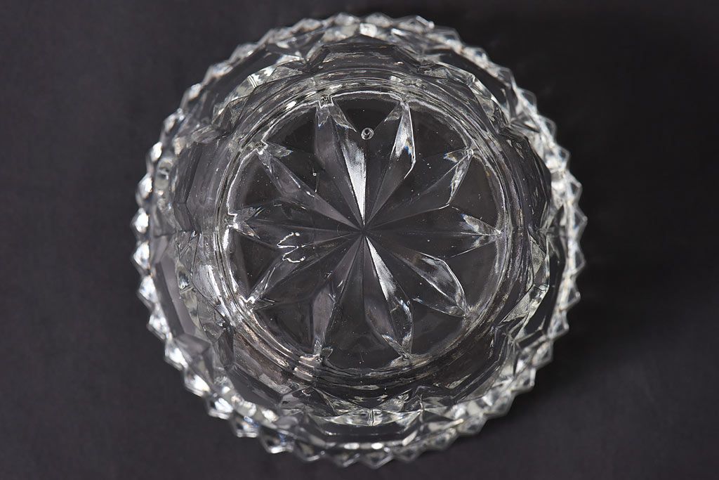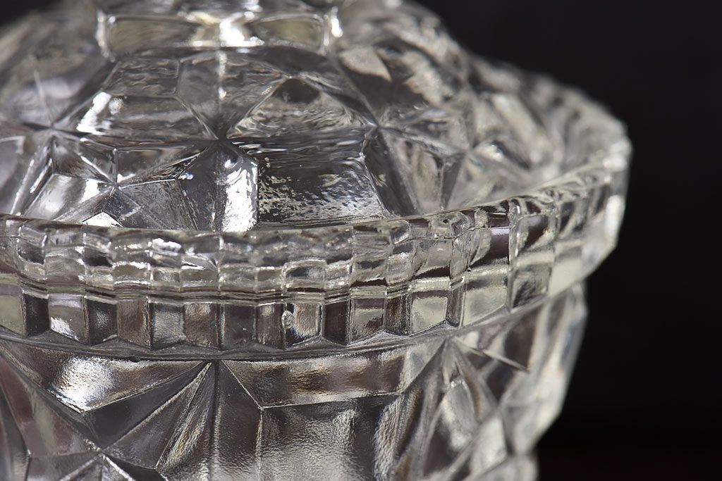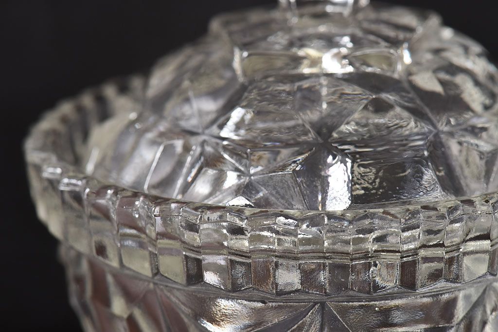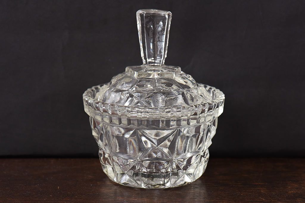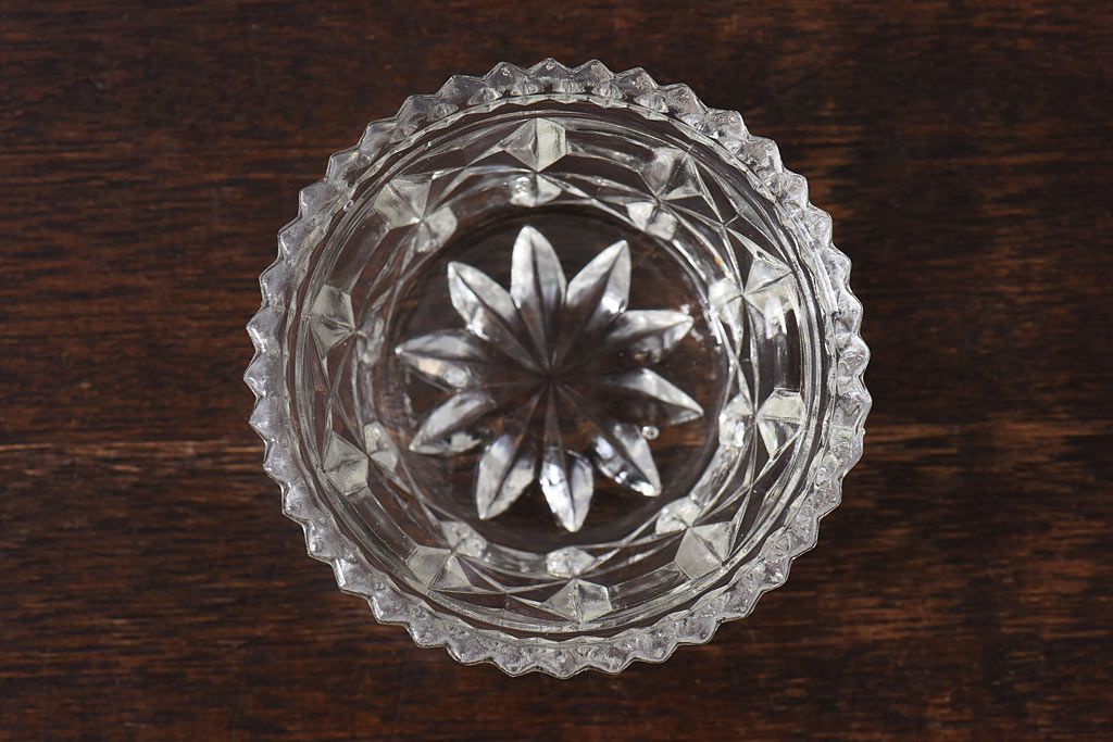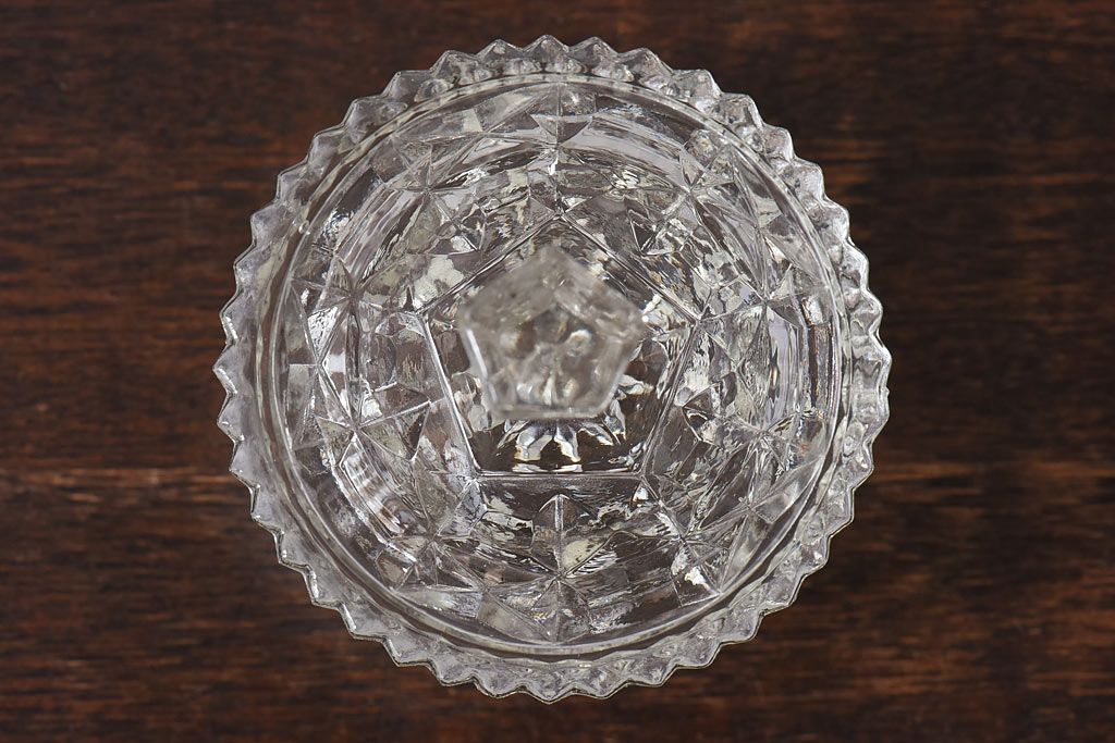 アンティーク雑貨 イギリスビンテージ ガラス製 厚みのあるしっかりとしたデザインが魅力の蓋付き小物入れ