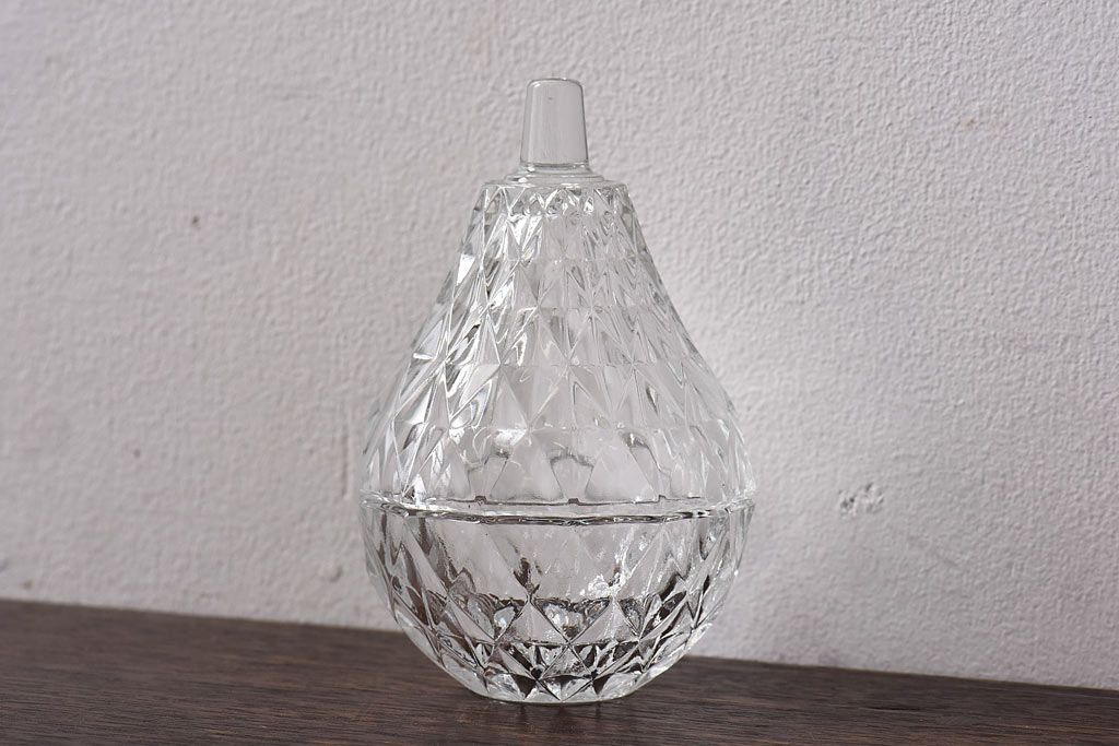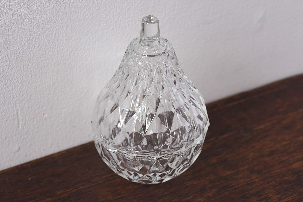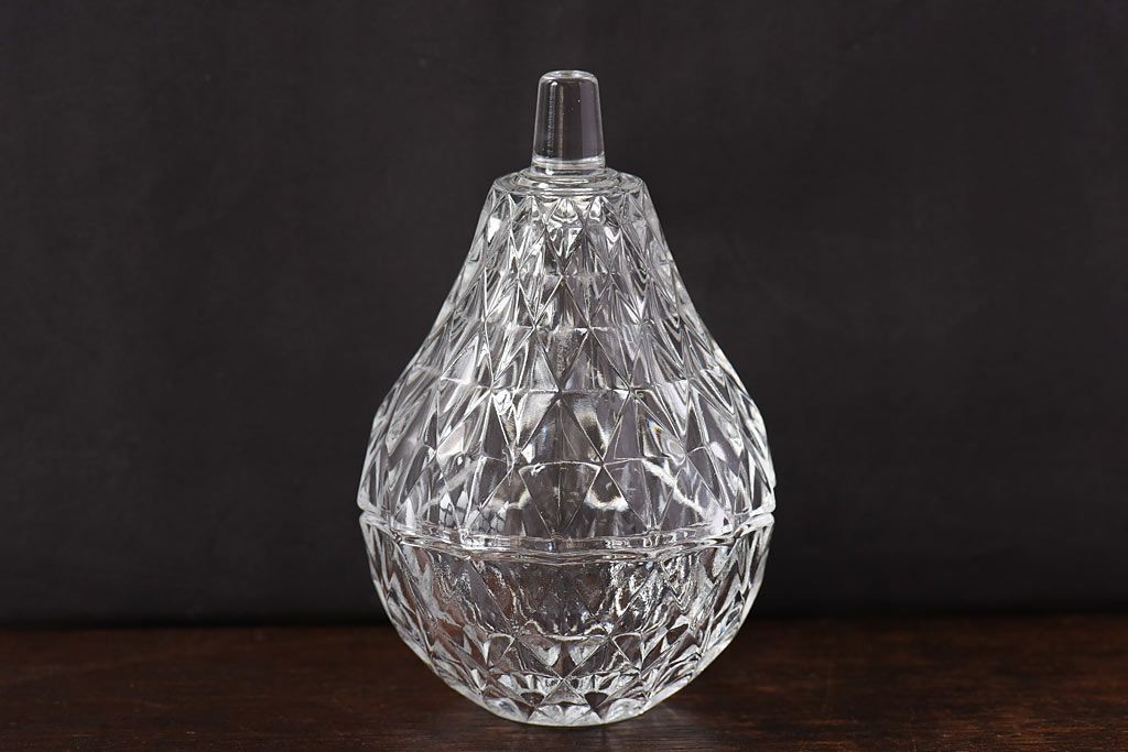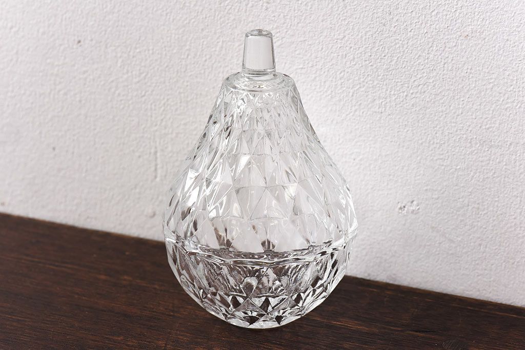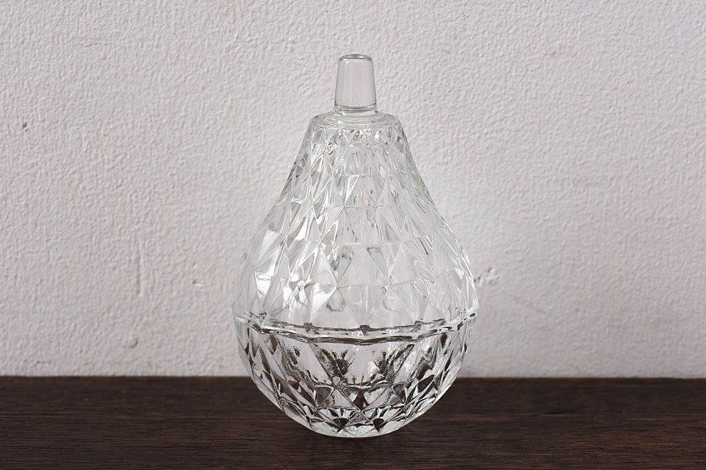 アンティーク雑貨 イギリスビンテージ 洋梨モチーフのデザインが可愛らしいガラスの小物入れ
