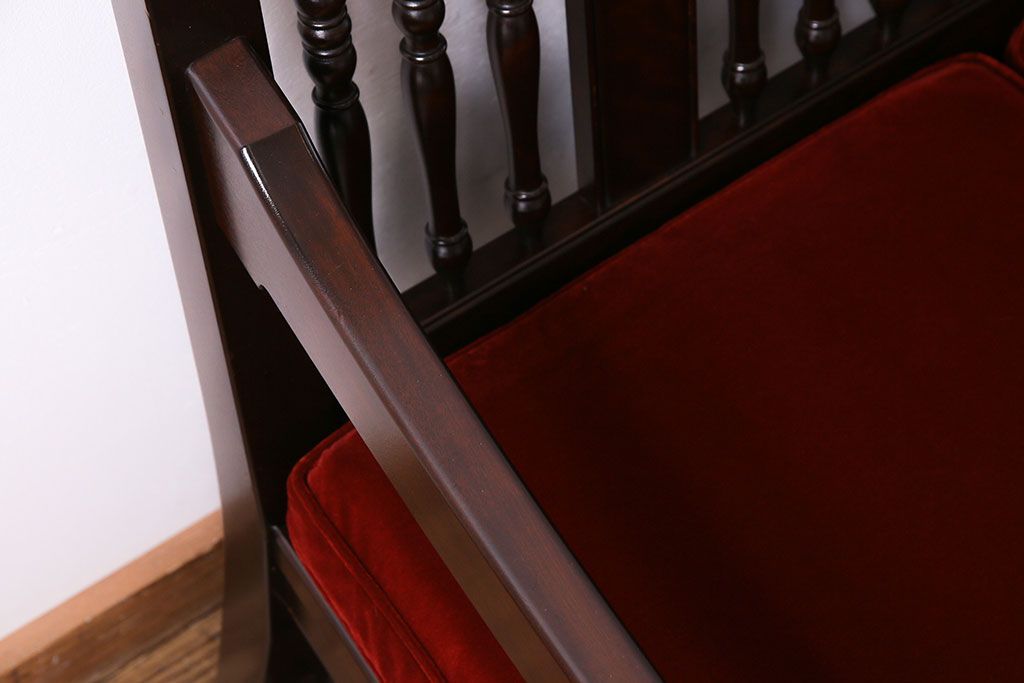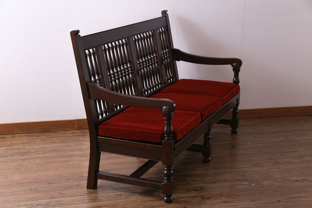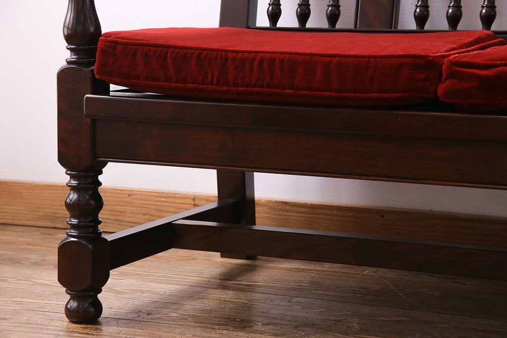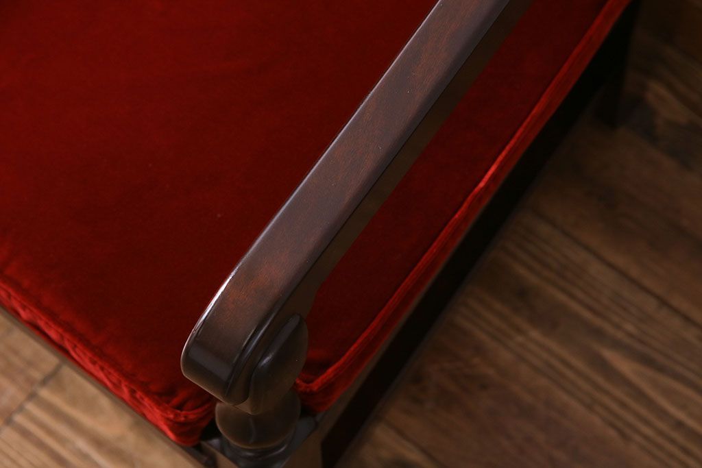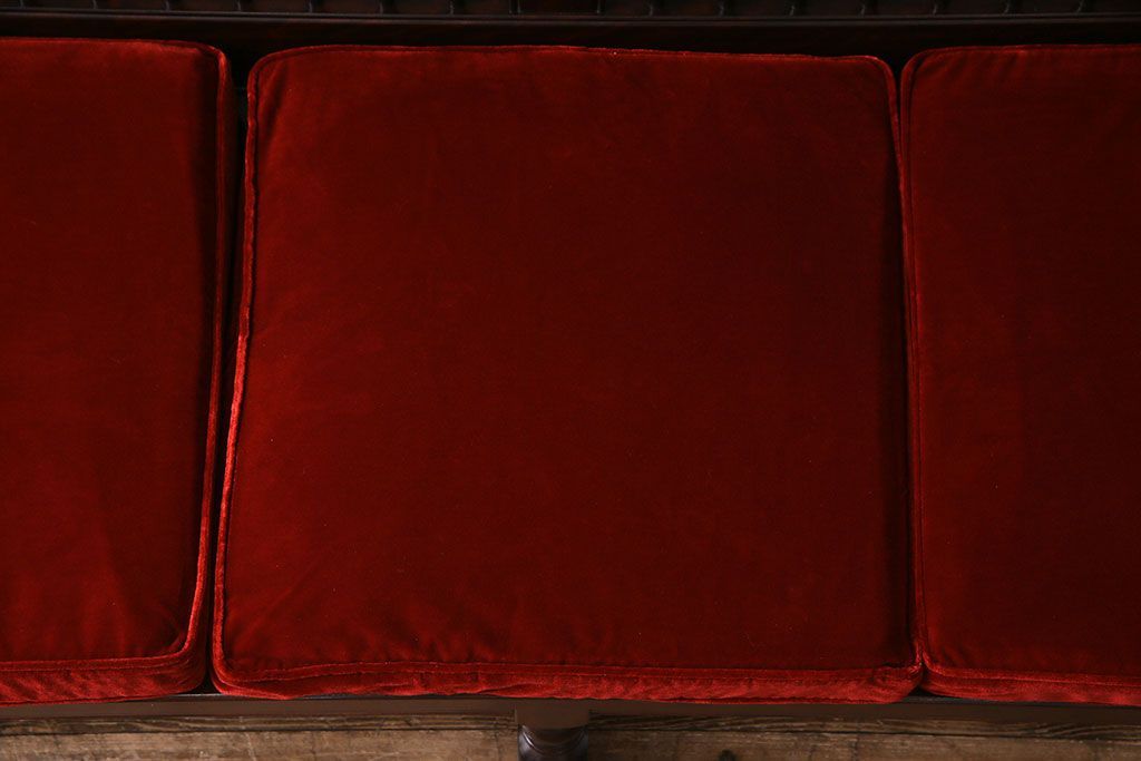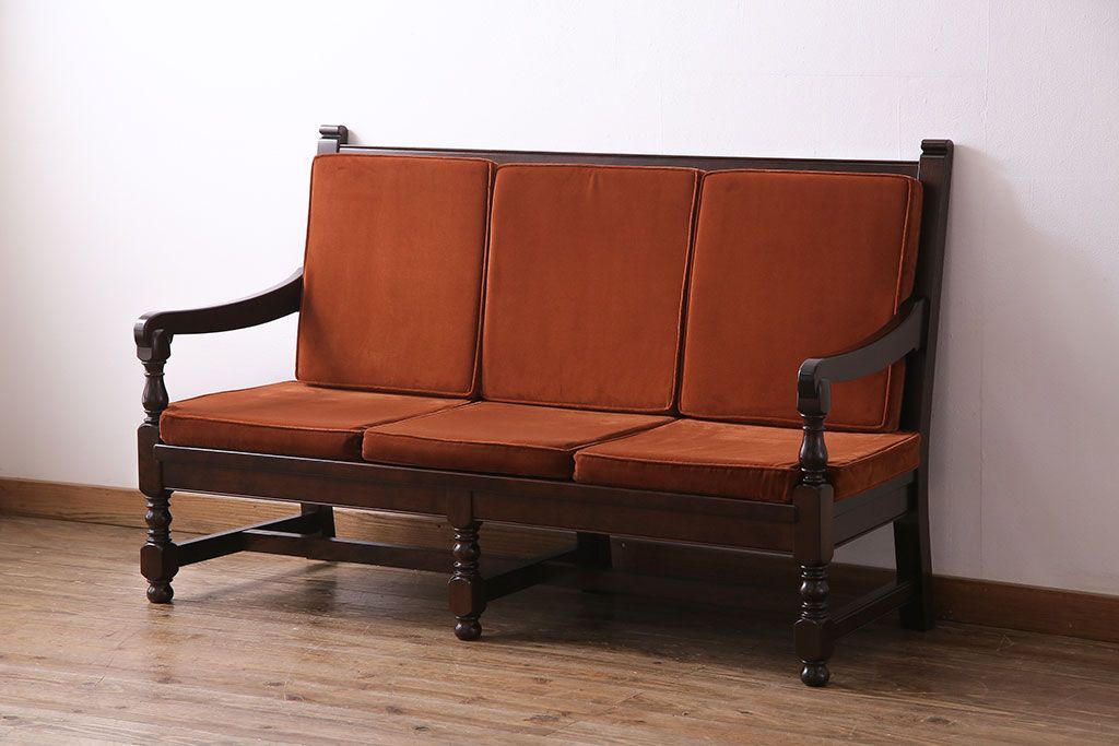 中古美品 松本民芸家具 D型布張り椅子(ベンチ、ソファ)(定価約55万円)