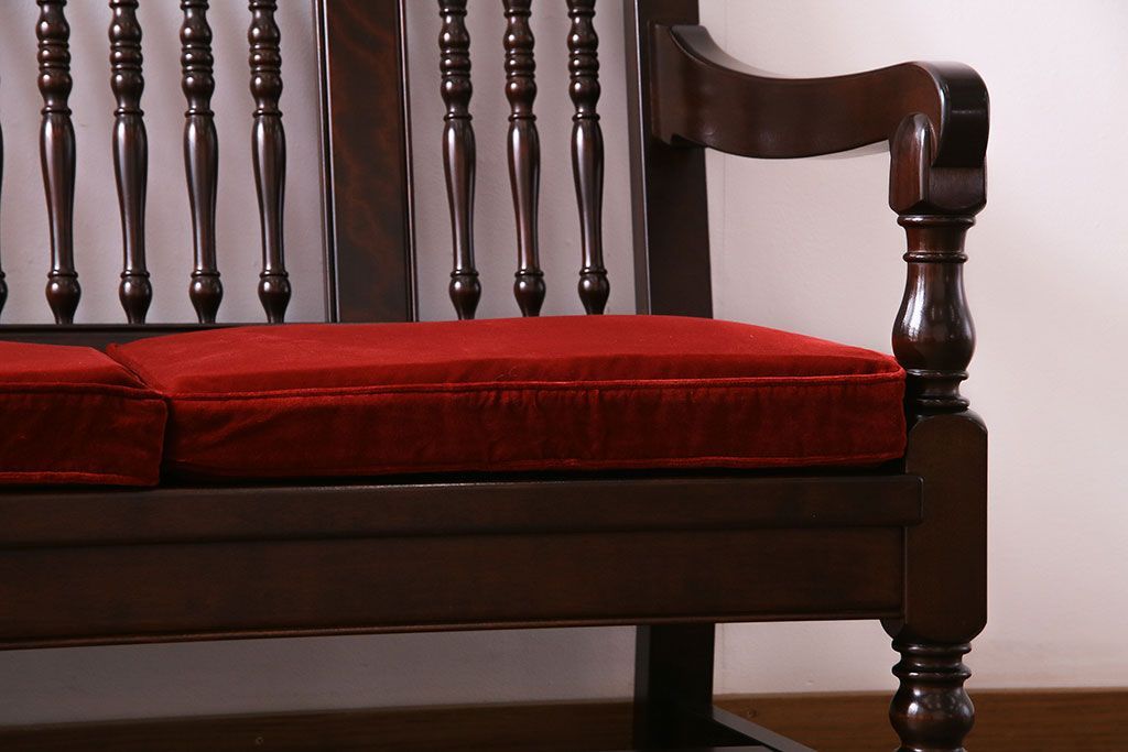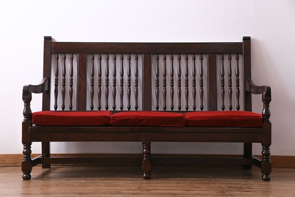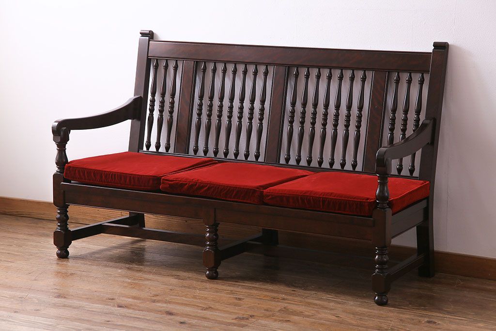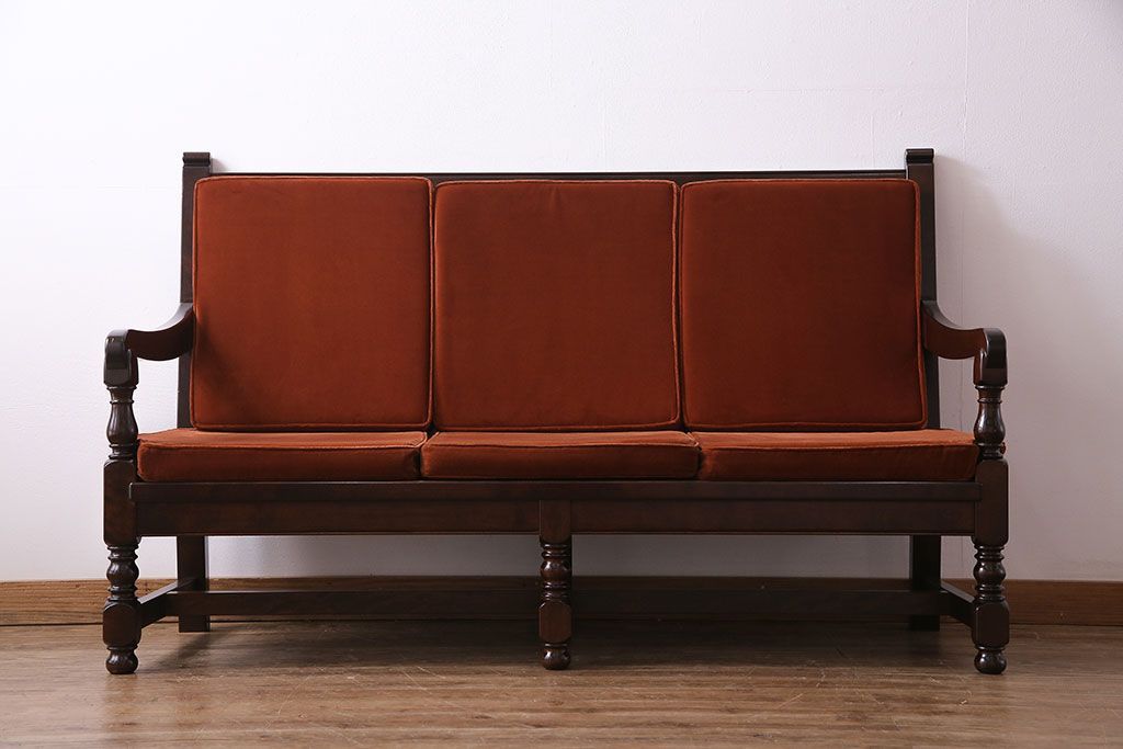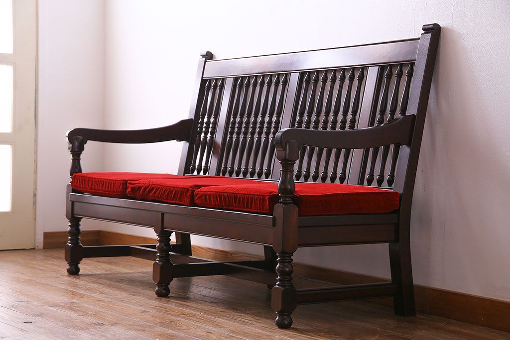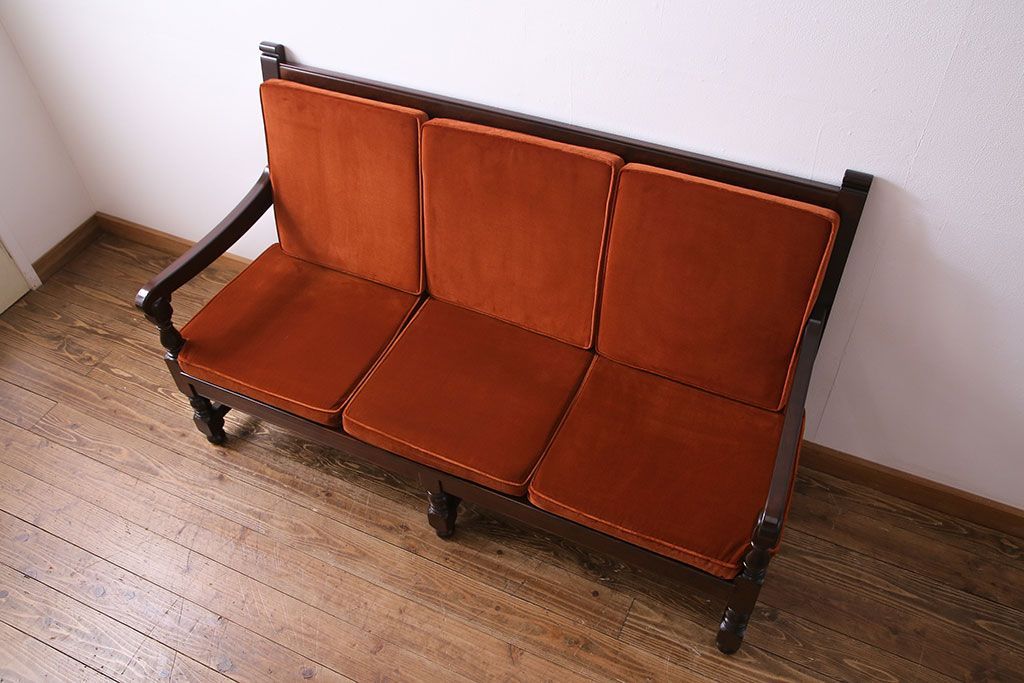 中古美品 松本民芸家具 D型布張り椅子(ベンチ、ソファ)(定価約55万円)