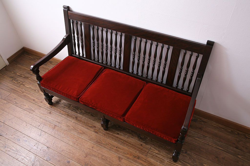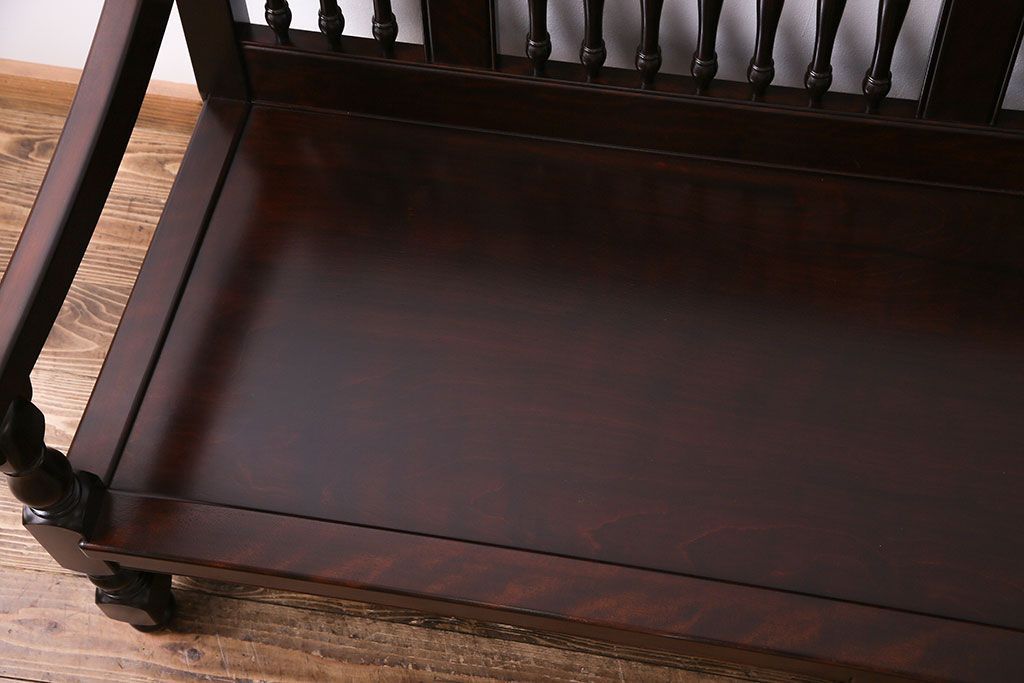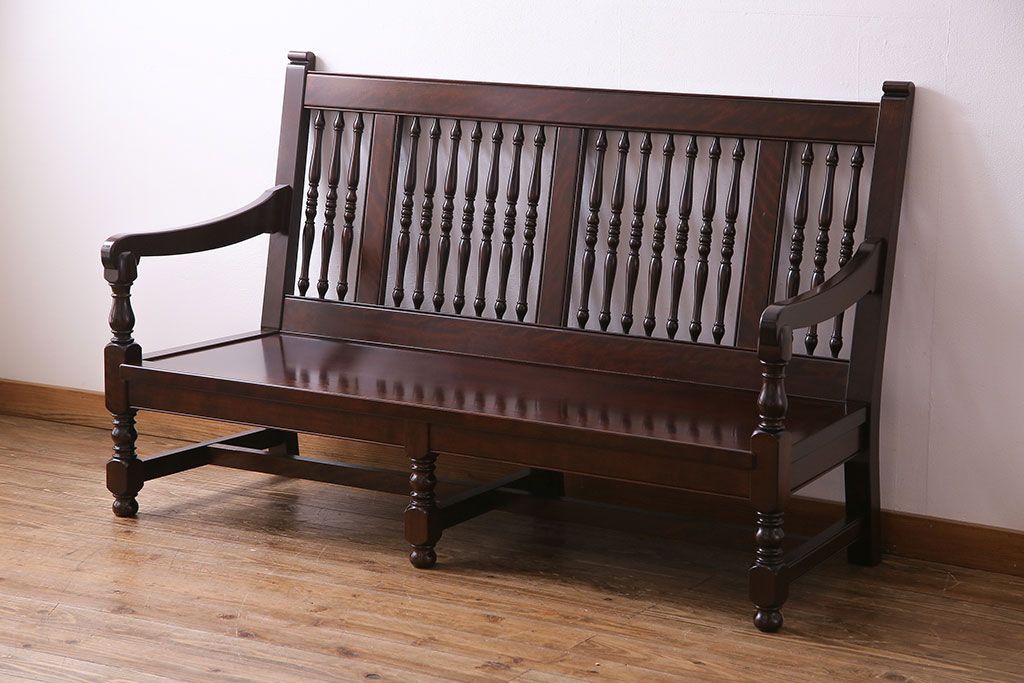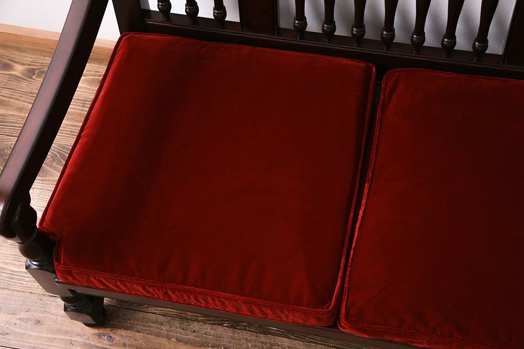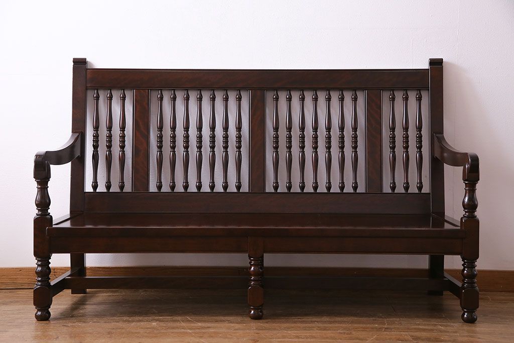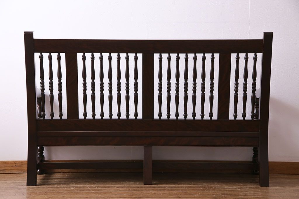 中古美品 松本民芸家具 D型布張り椅子(ベンチ、ソファ)(定価約55万円)