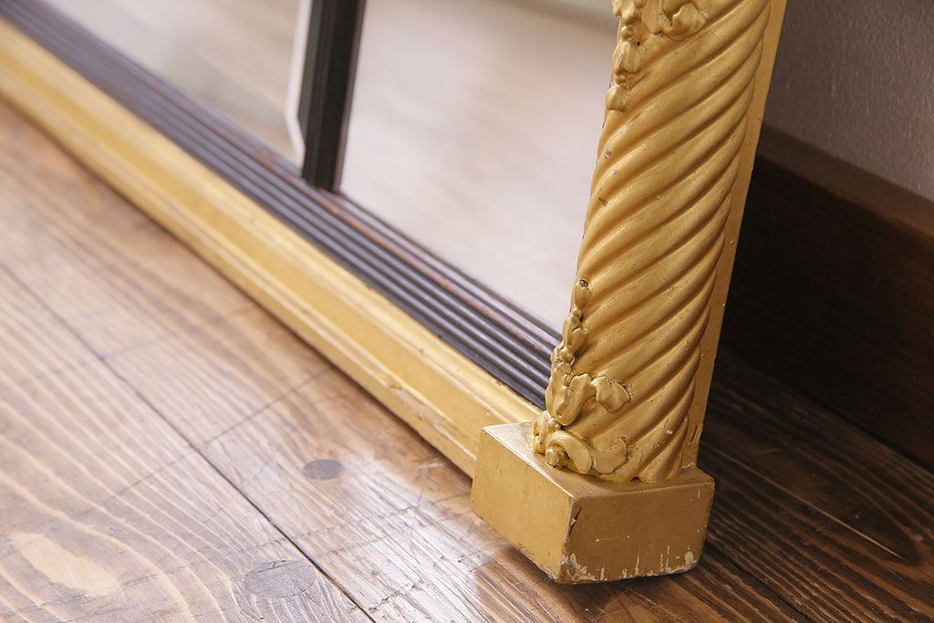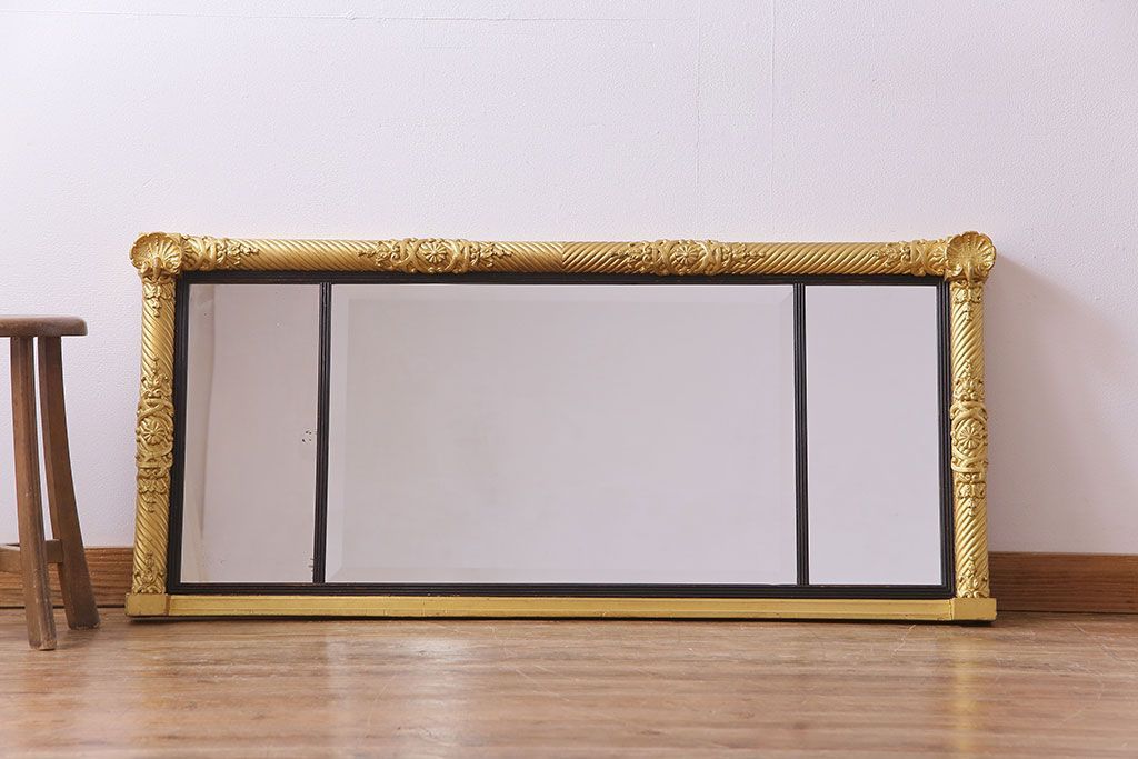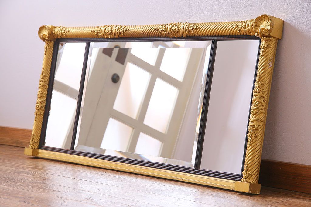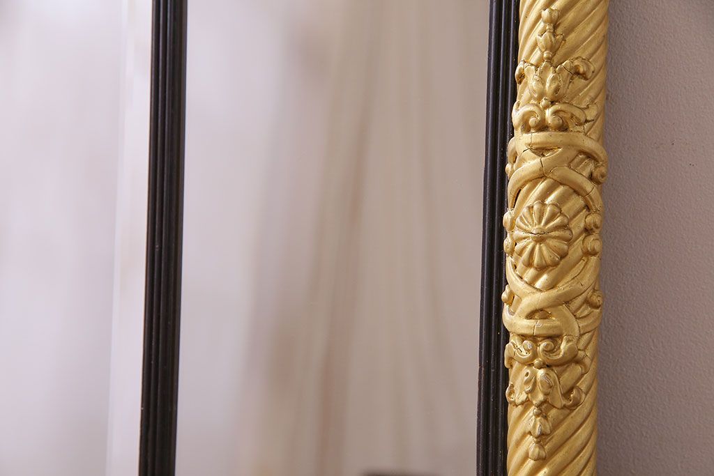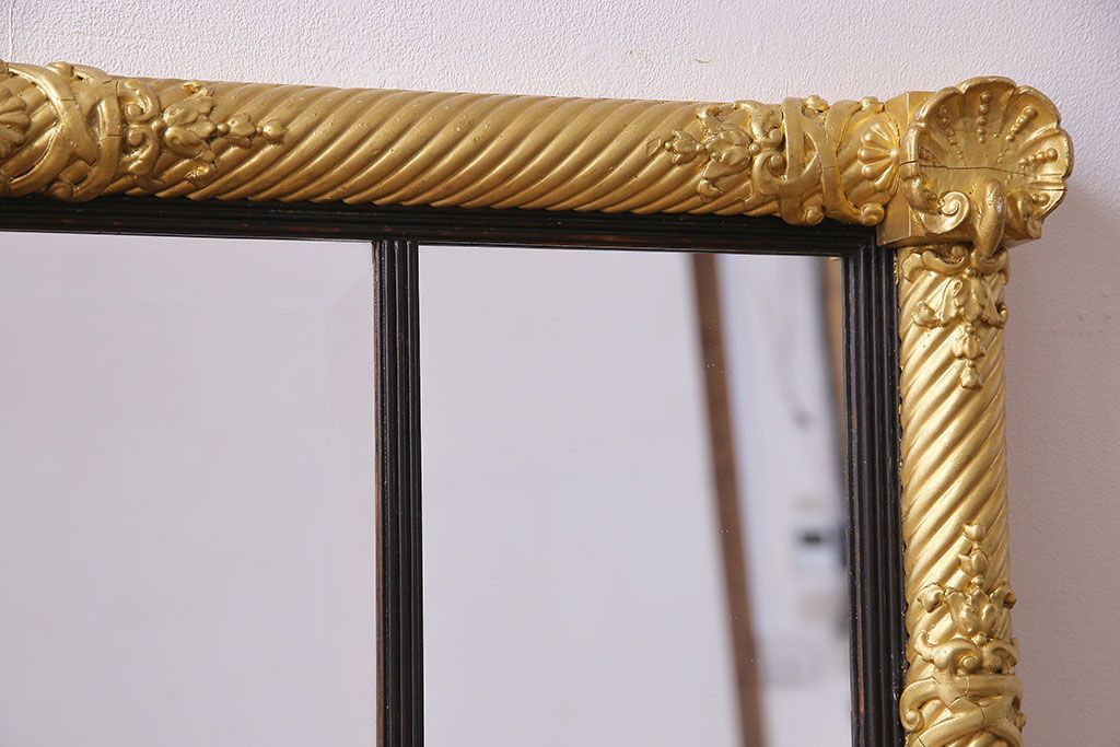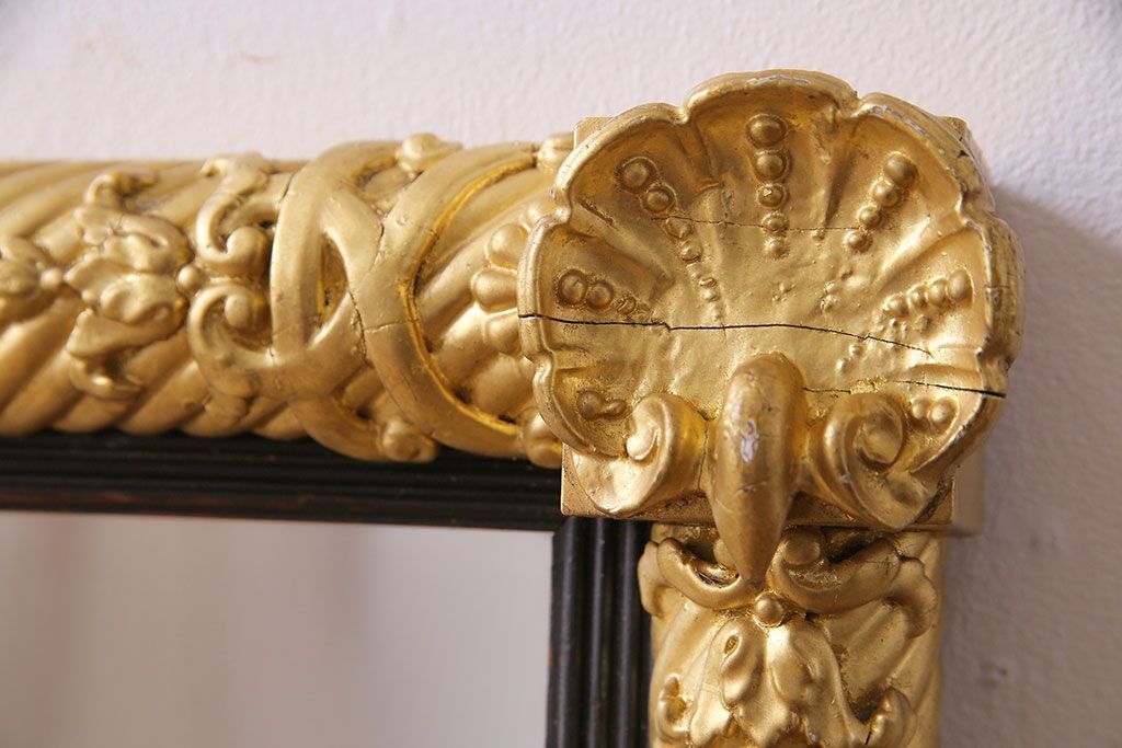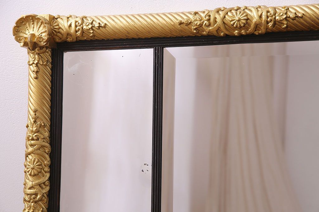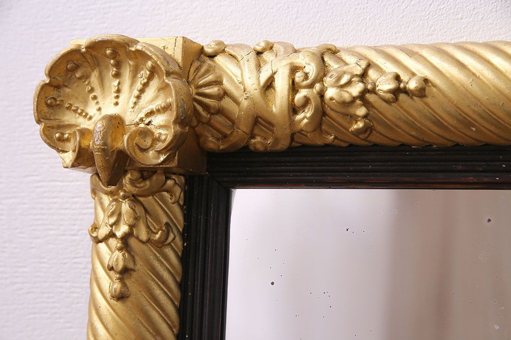 アンティーク雑貨 イタリア家具 豪華なフレームが魅惑的なアンティークミラー(鏡)