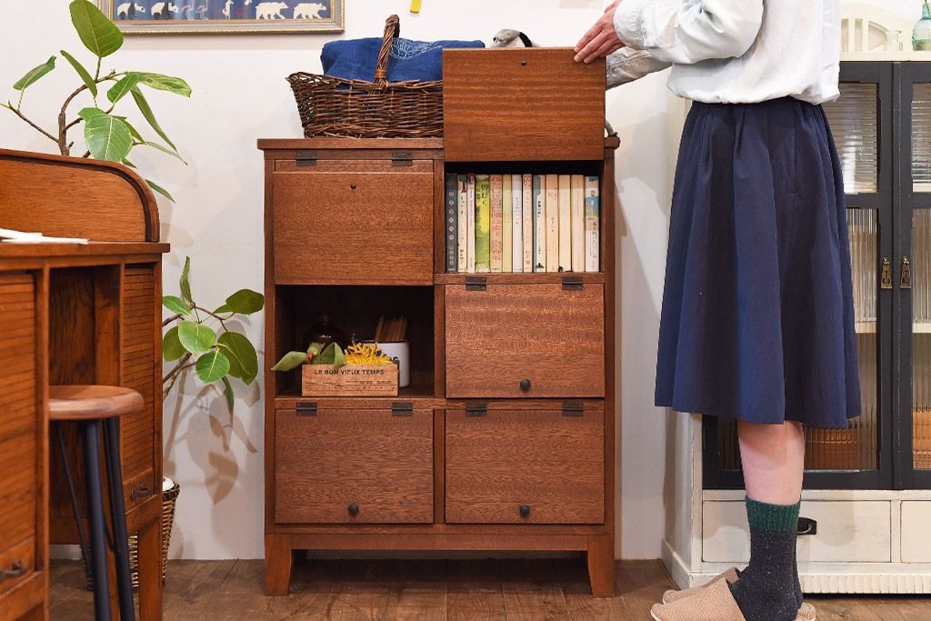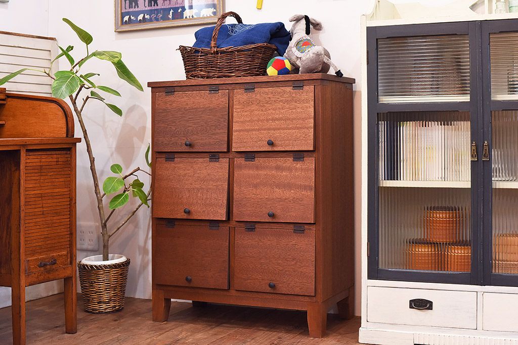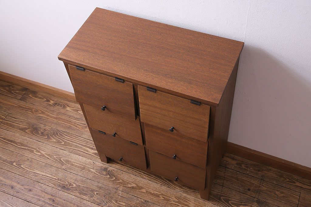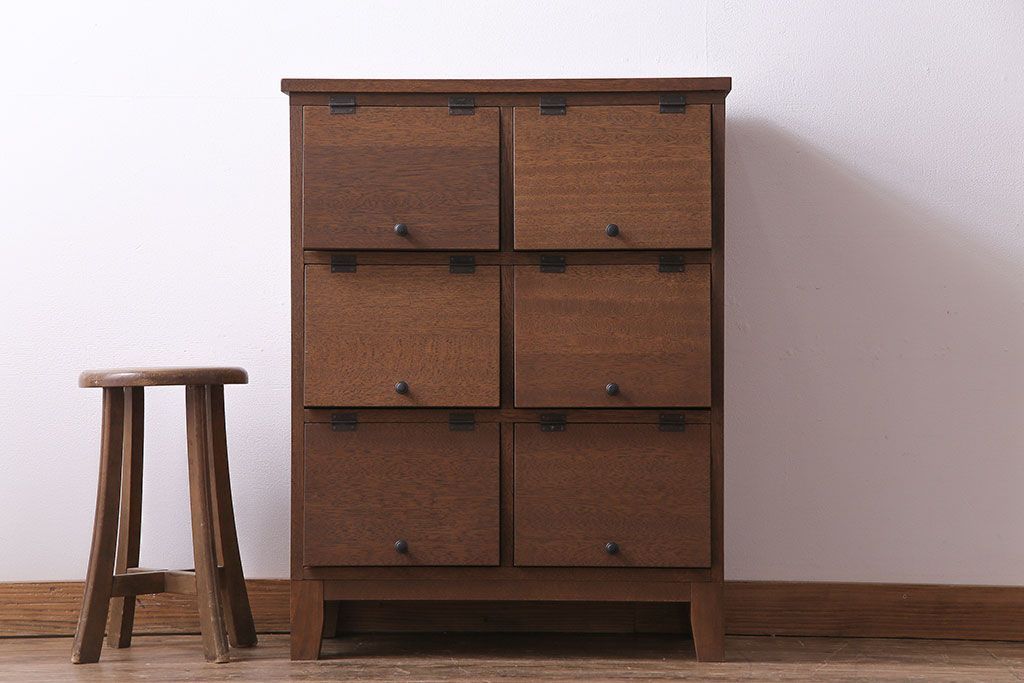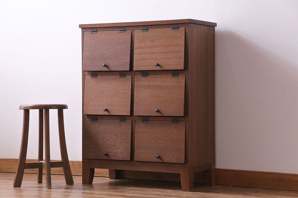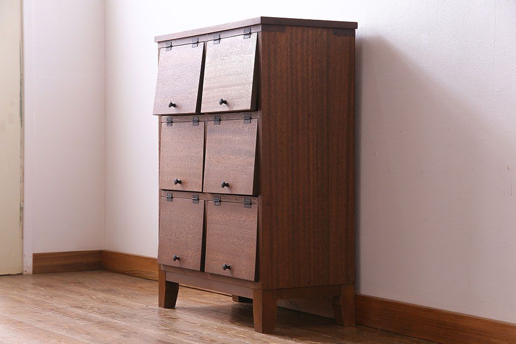 レトロ家具 昭和レトロ 古材使用 3×2マス パタパタ扉付きのおしゃれなキャビネット(下駄箱、収納棚)